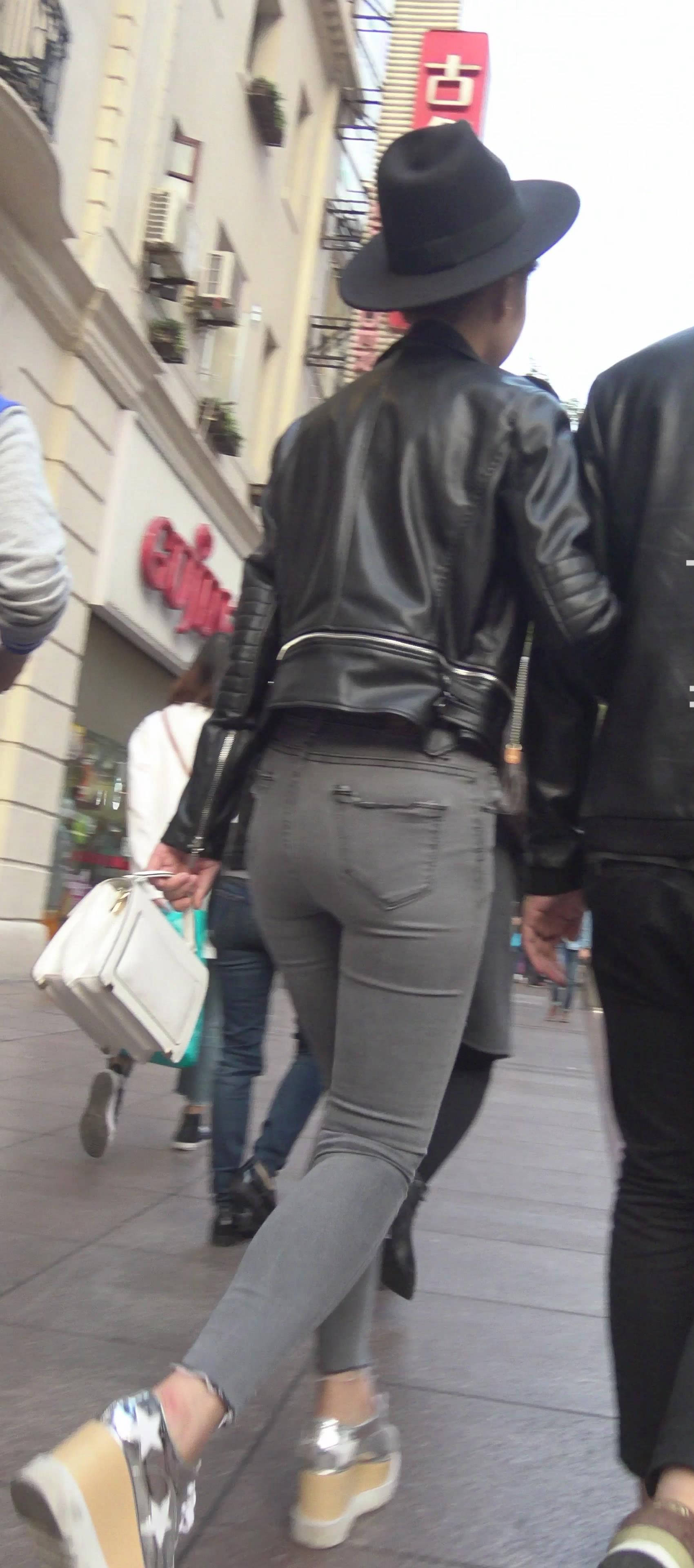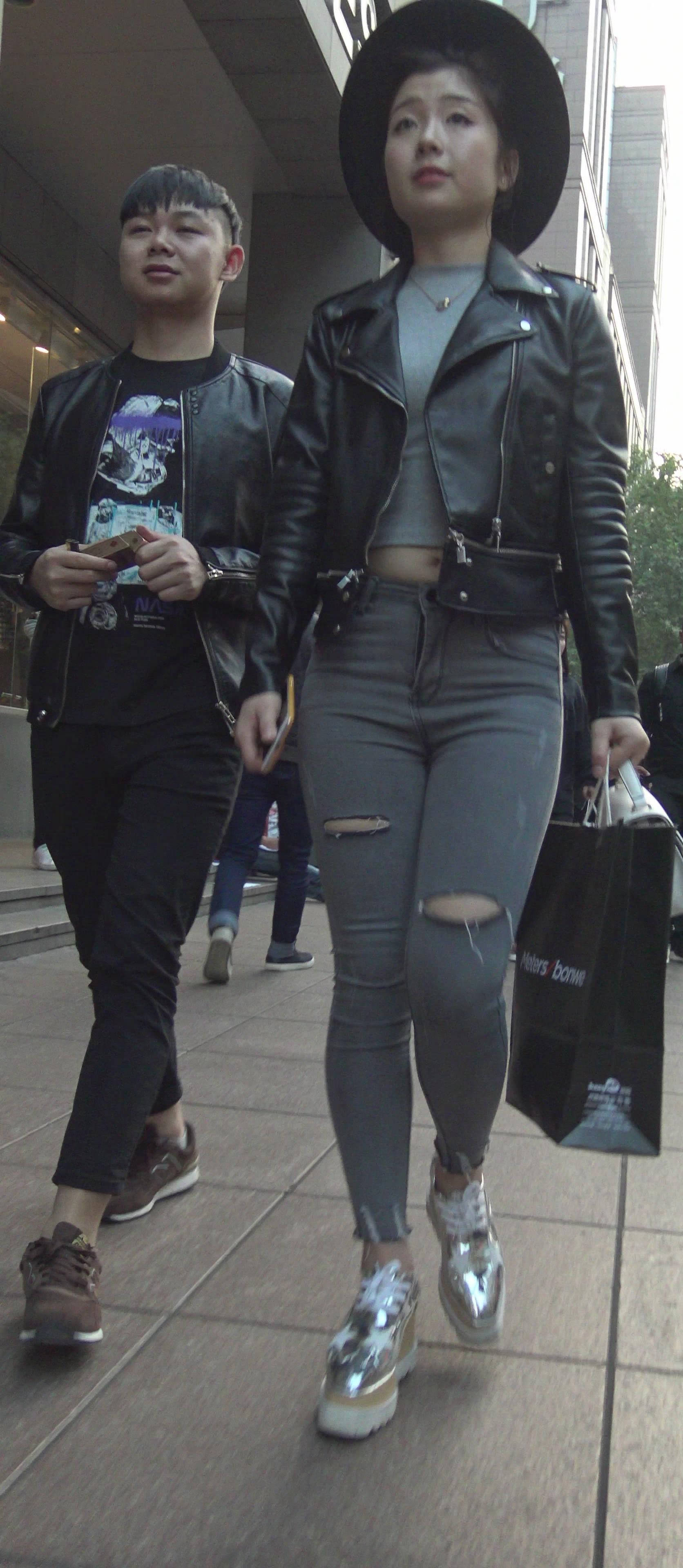 4k-街拍紧身灰牛清新小妹陪男友逛街 编号7426