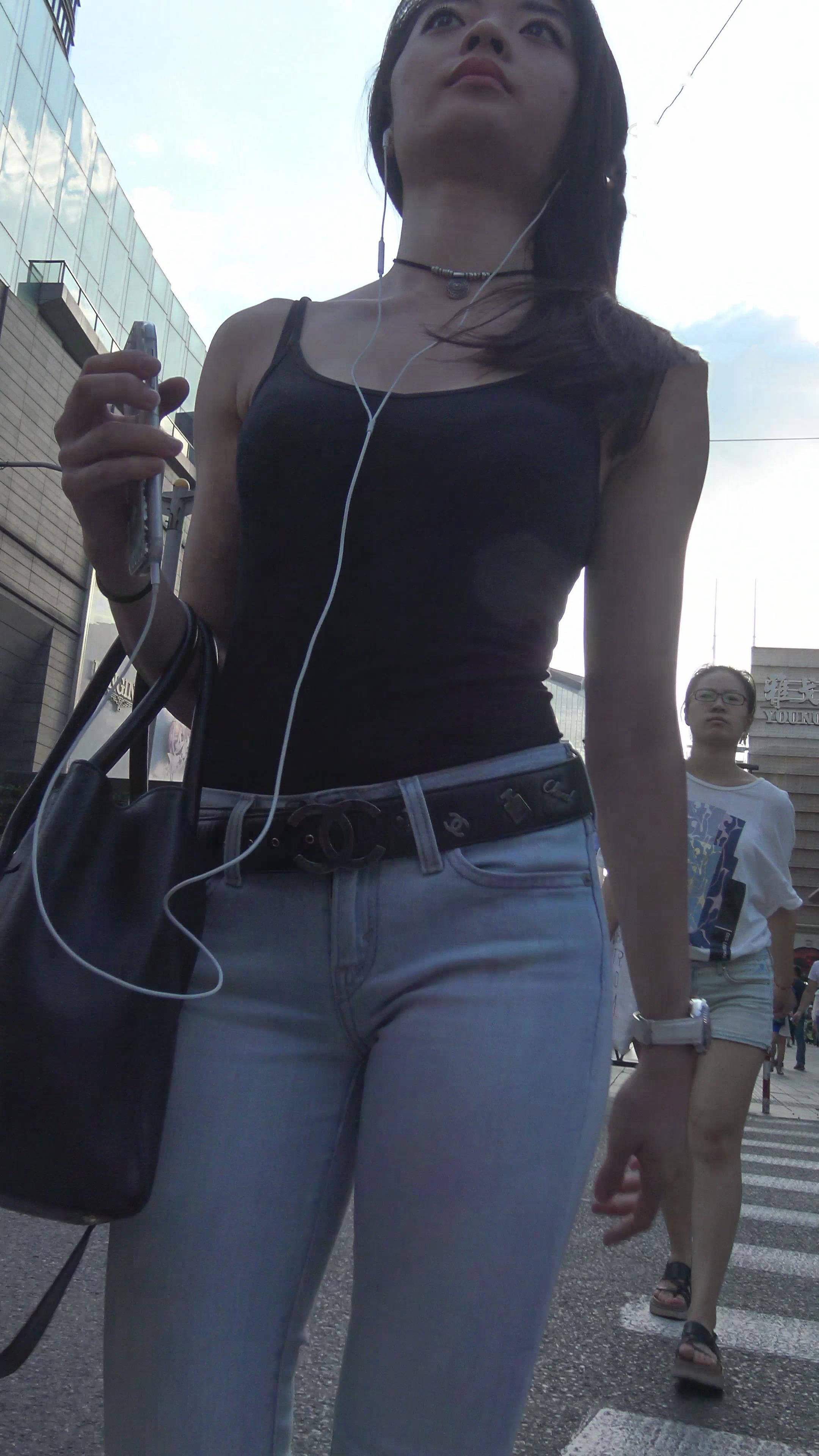4k-街拍吊带小背心紧身蓝牛小清新美女姐姐 编号7428
