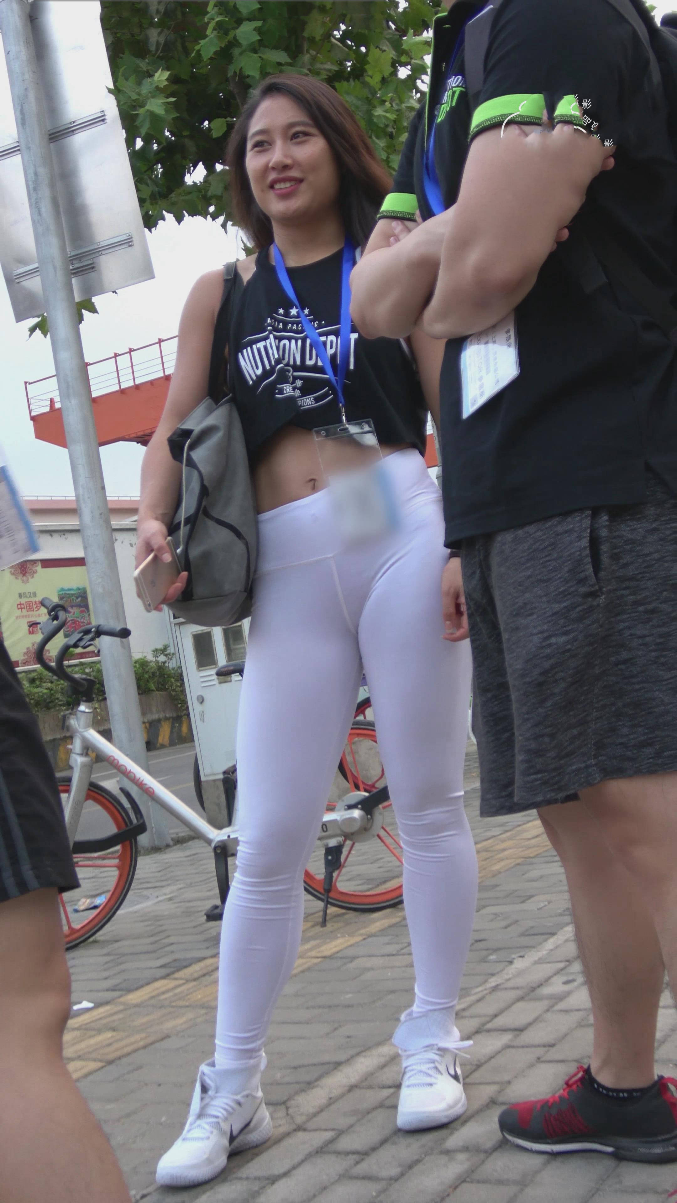 4k-紧身白裤性感露脐女神美女 编号7449