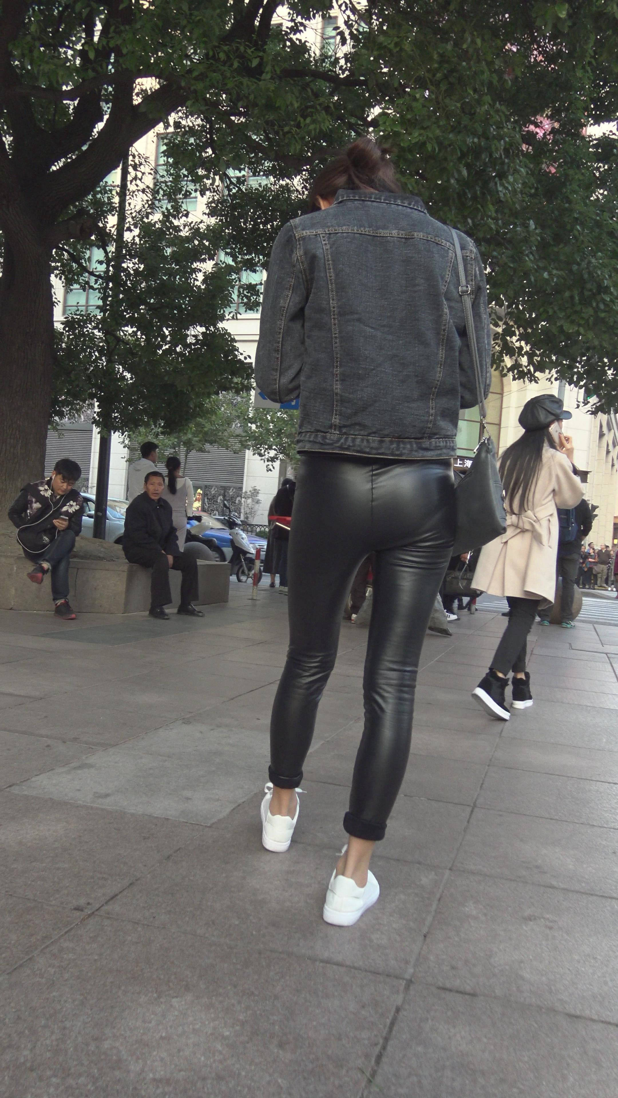 4K - 街拍皮裤美女 2 编号7483