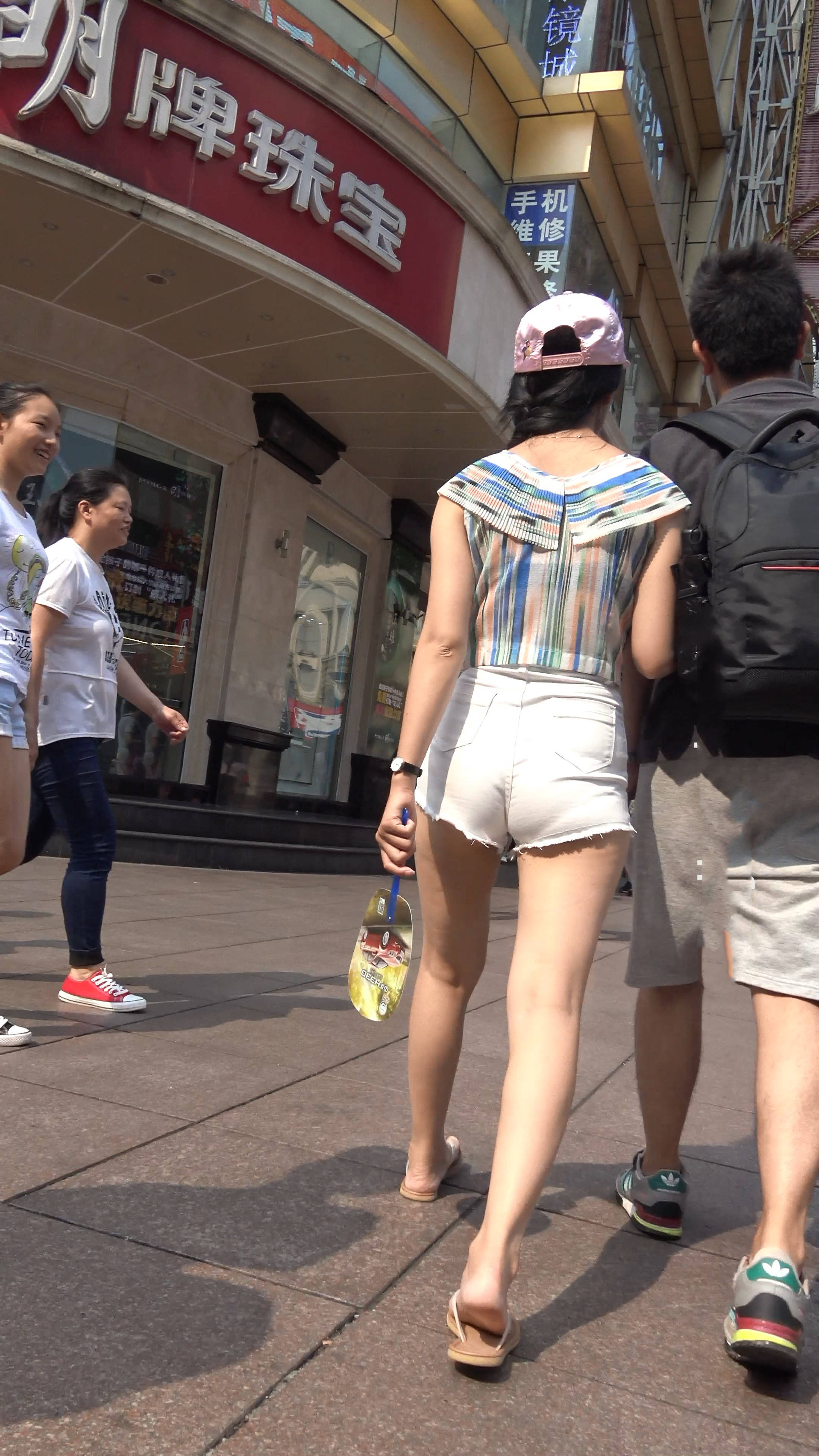 4k-圆润美臀白短热裤美女逛街遭遇男友咸猪手 编号7523