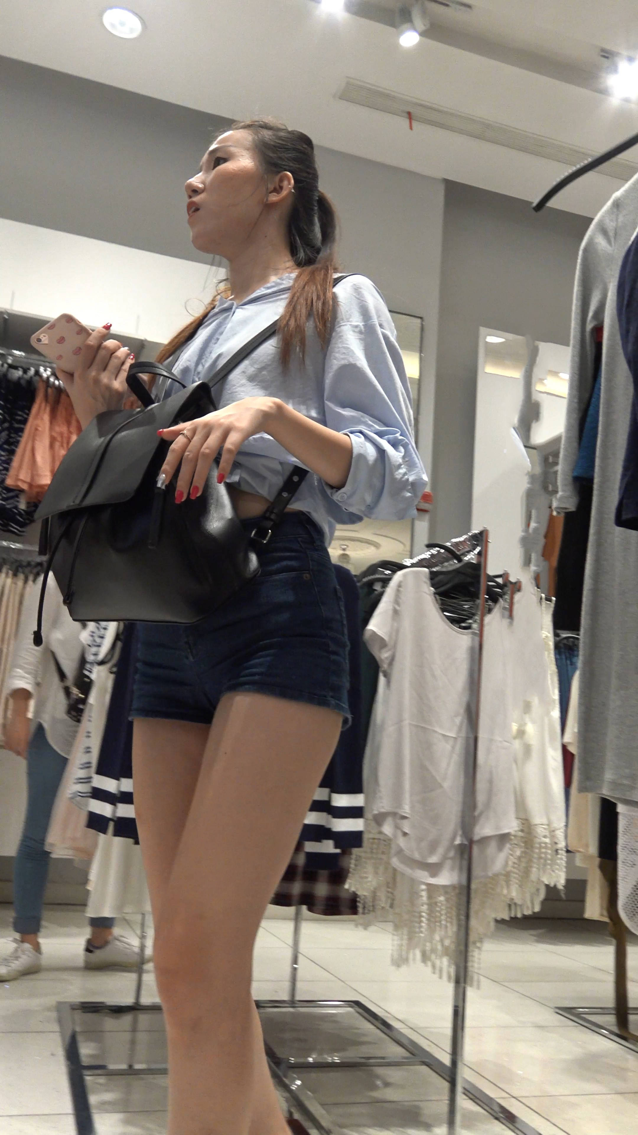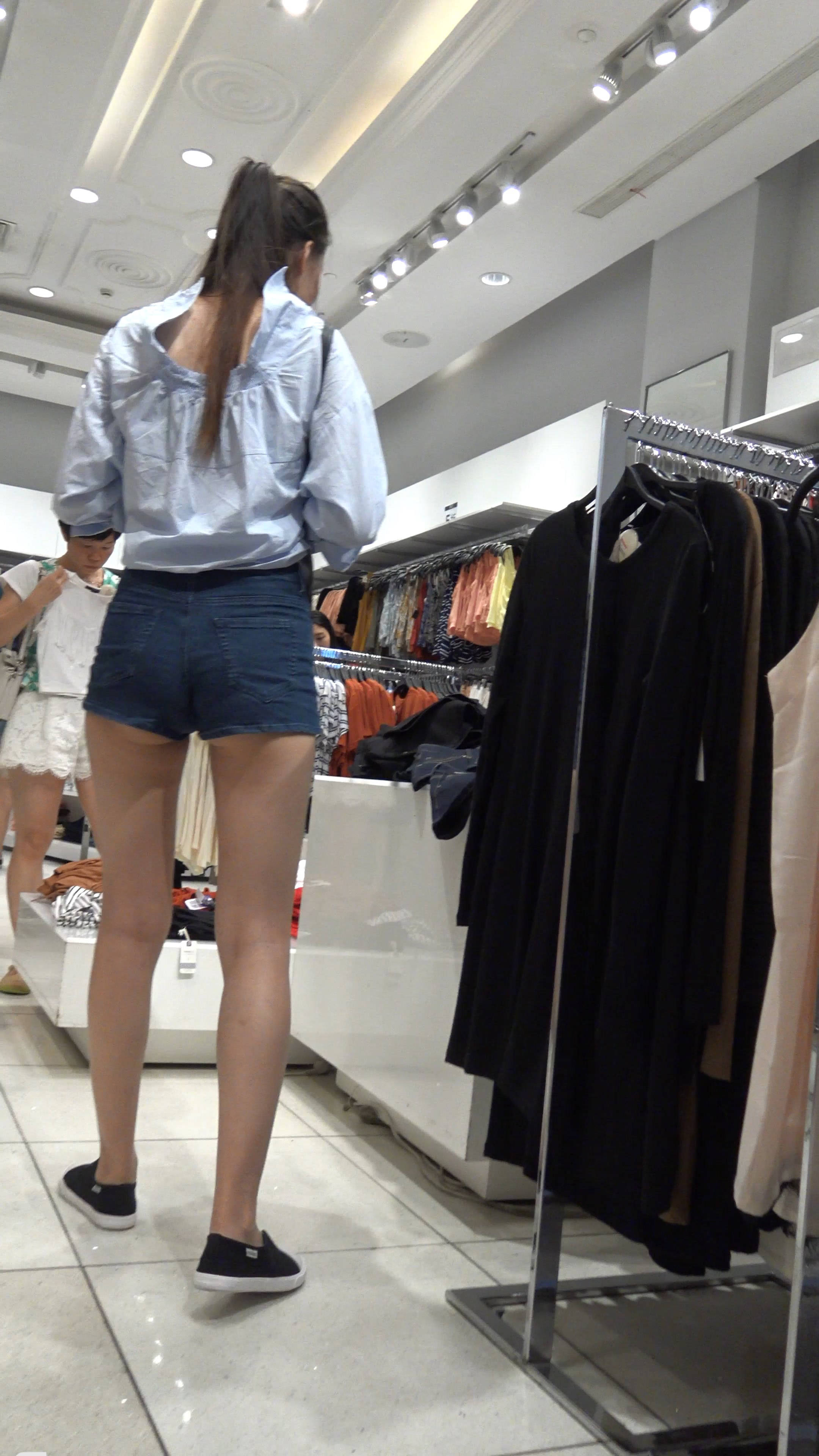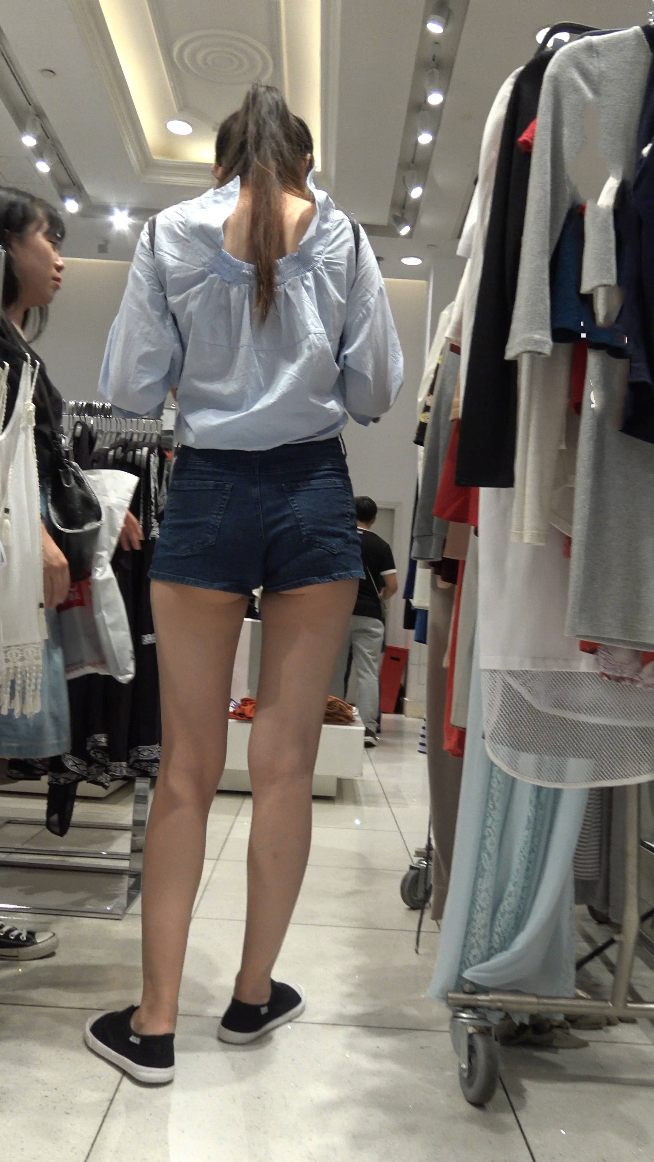 4k-服装店内的清纯热裤长腿马尾辫女神 编号7558