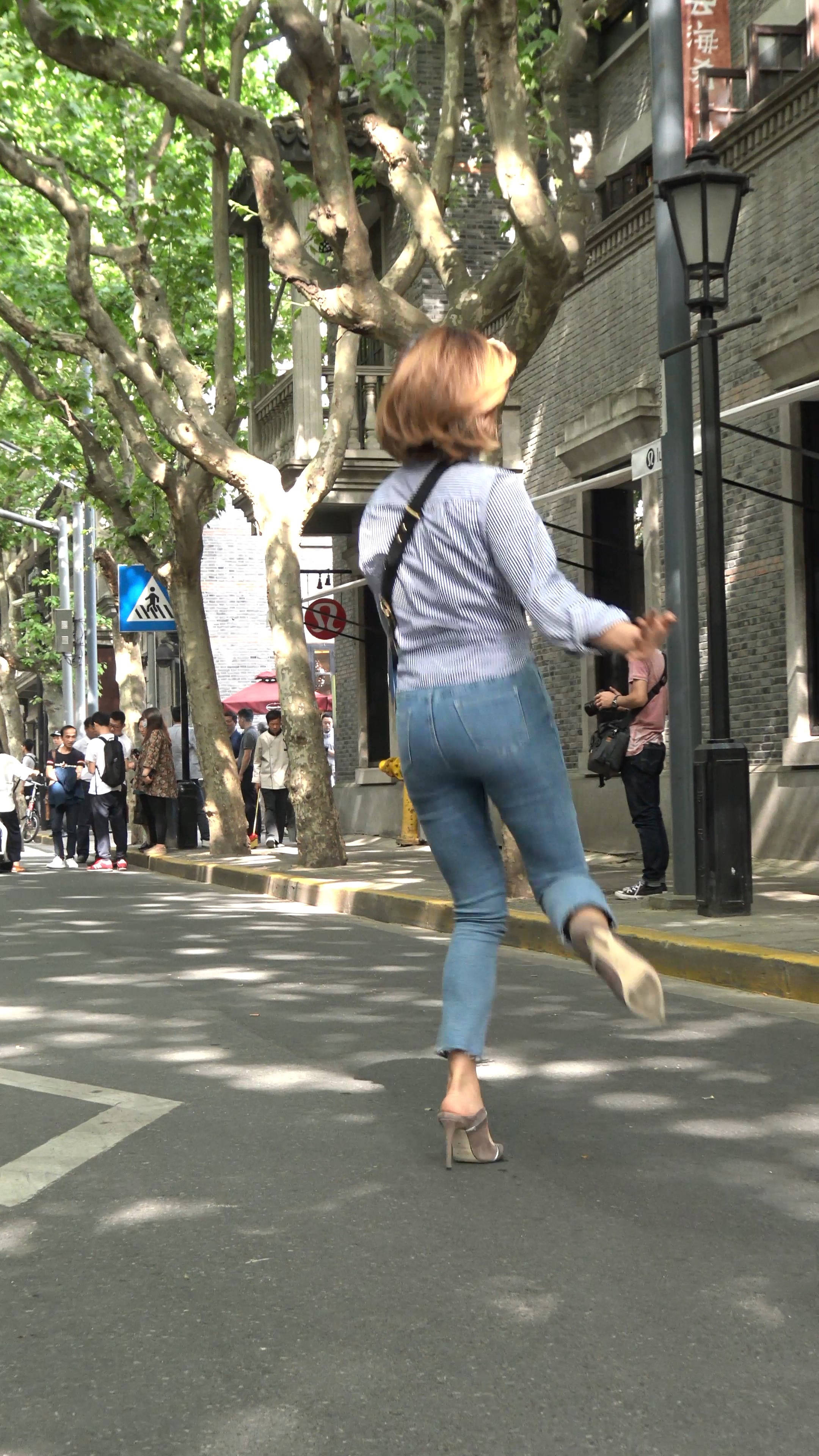 4k-边走边拍的极品紧身蓝牛俩姐妹,身材好到爆 编号7588