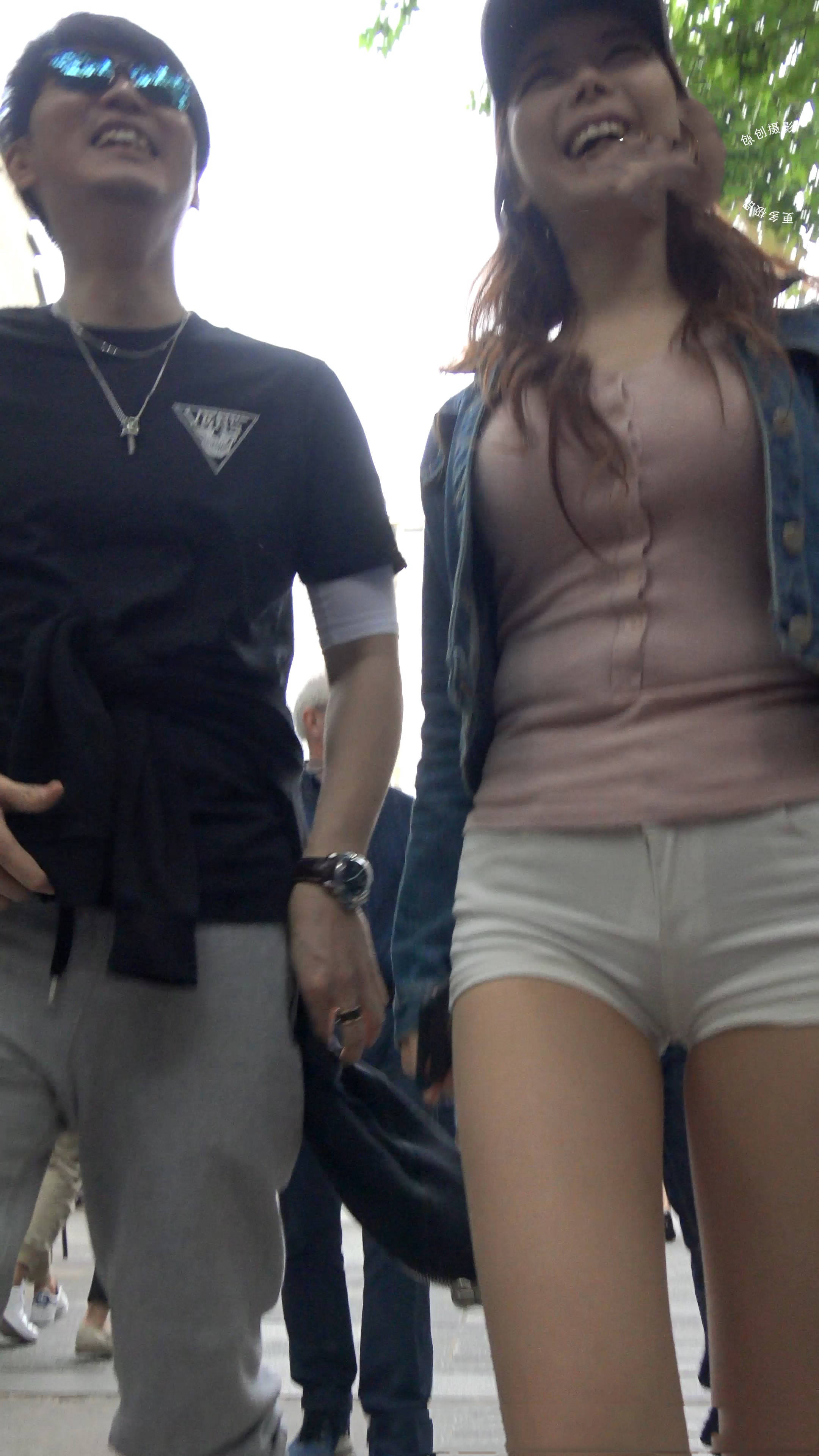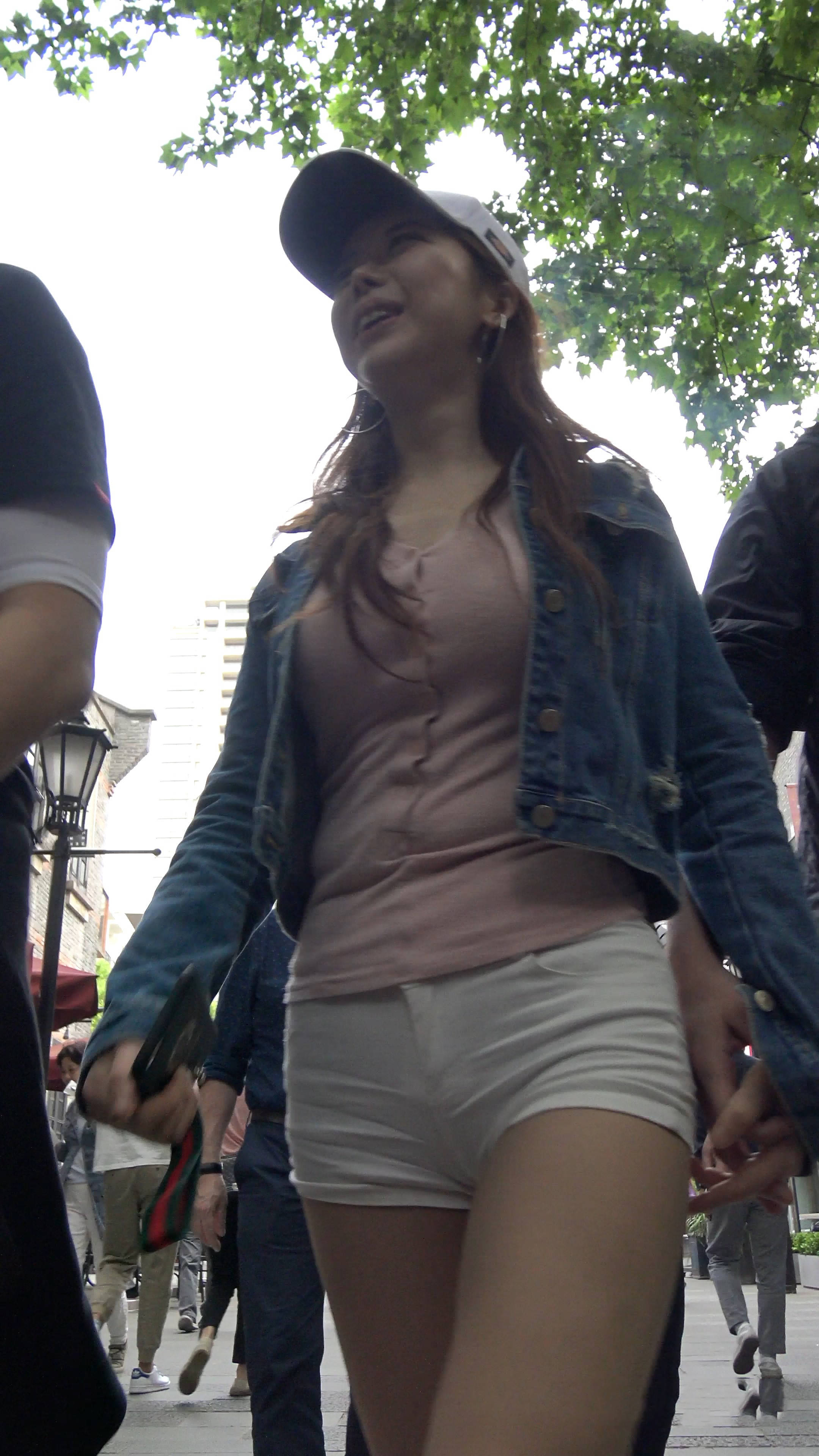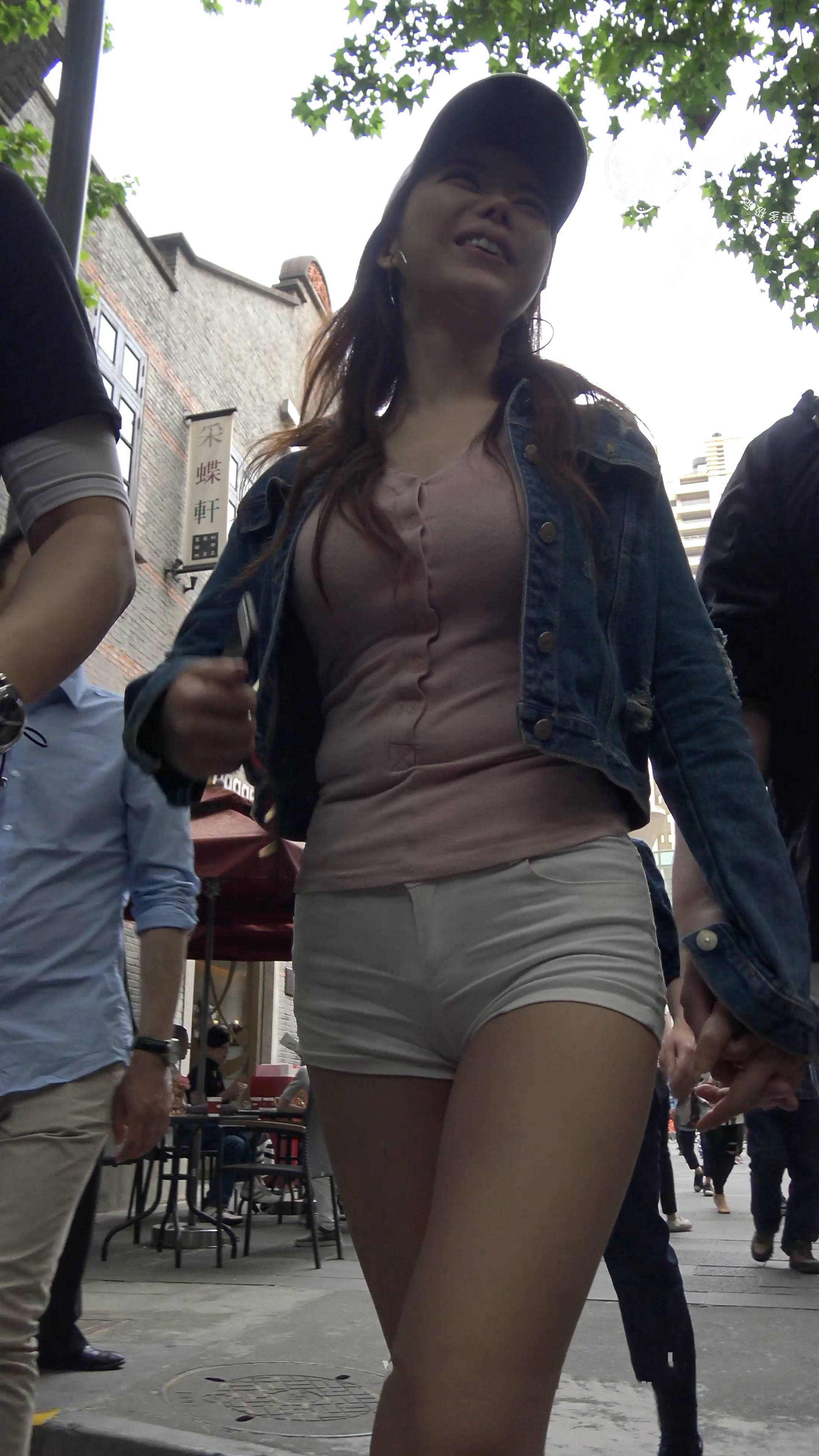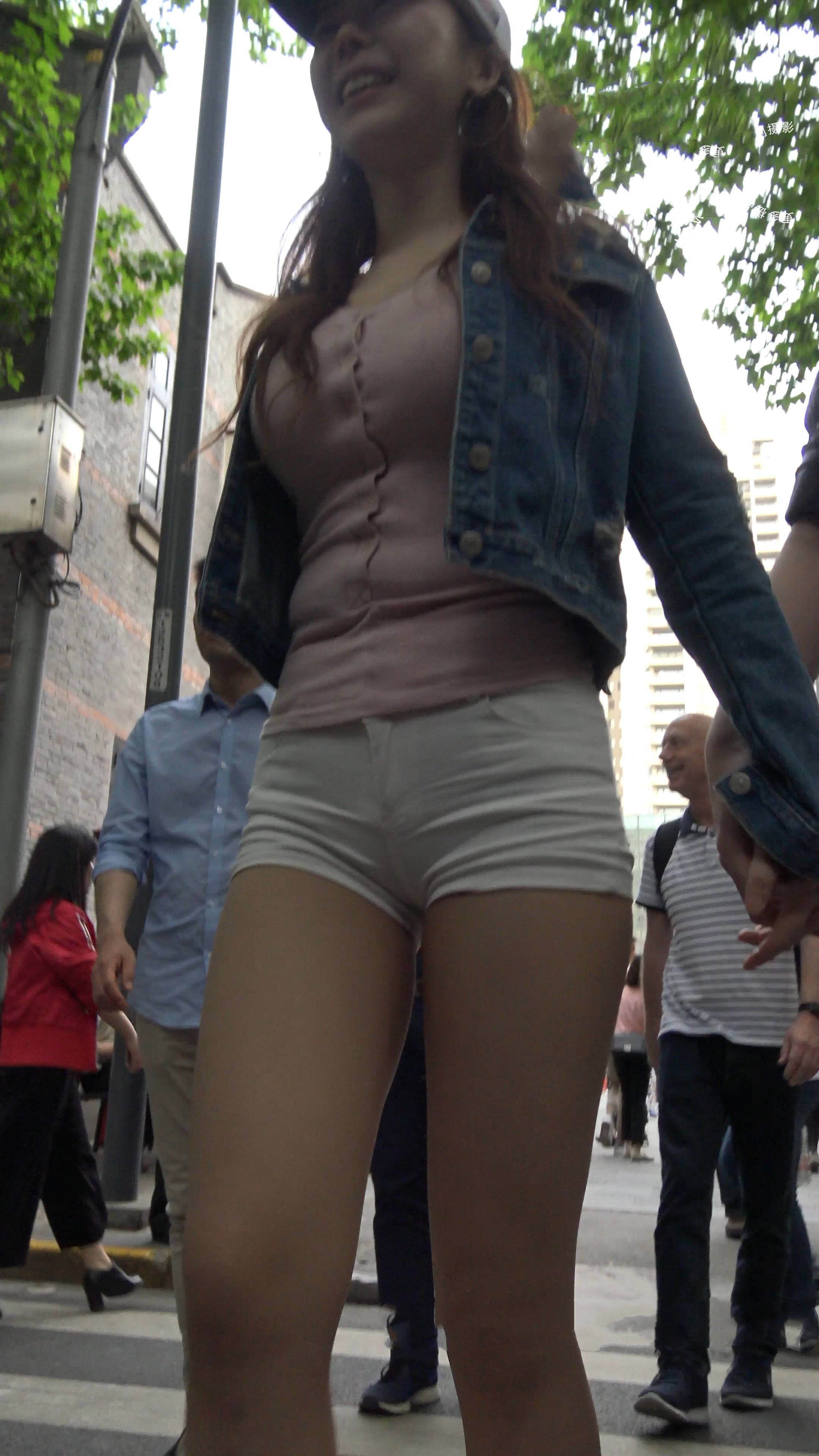 4k-街拍牛仔小外套粉色打底美女姐姐 编号7590