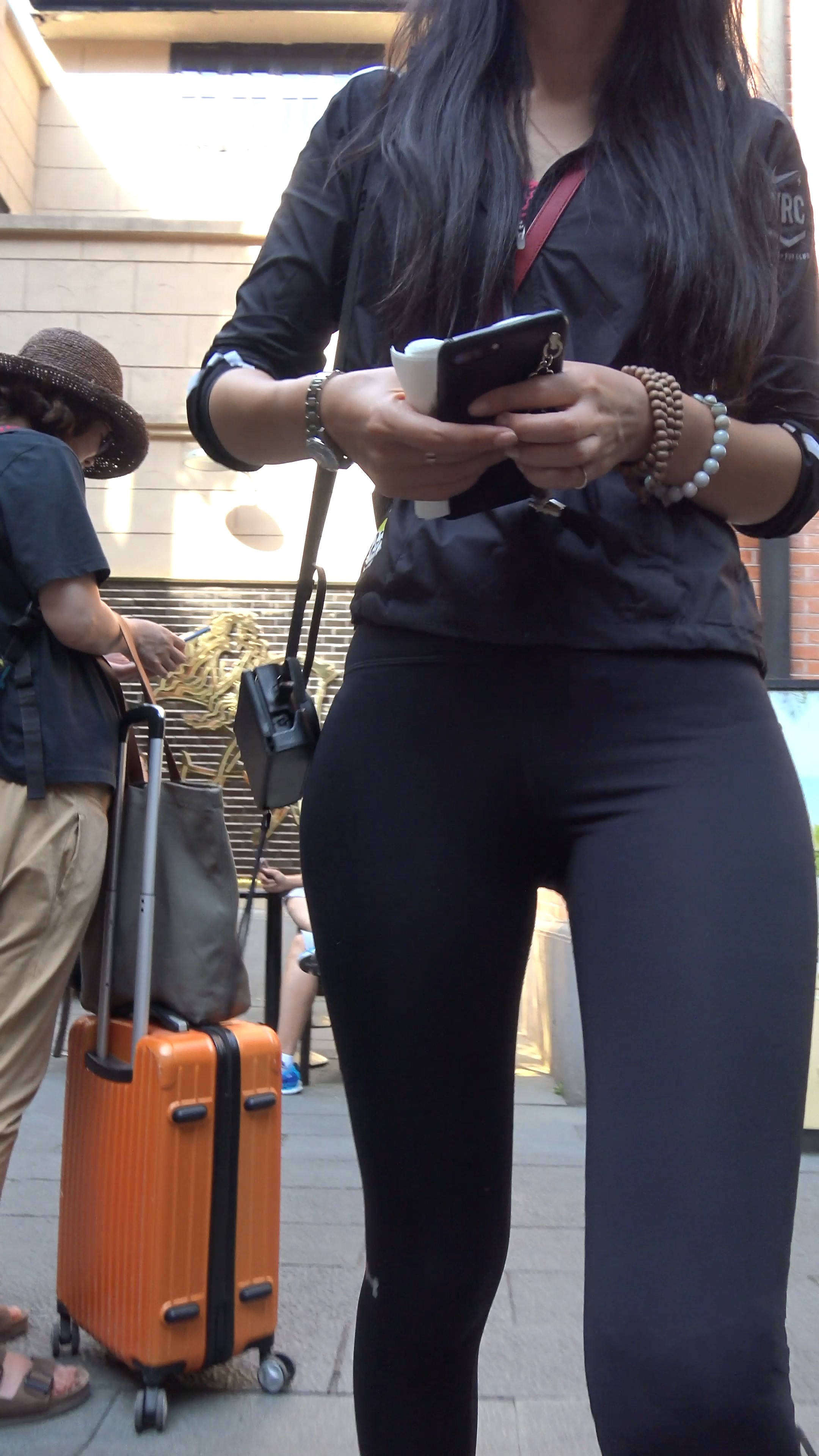 4k-甜美漂亮黑色紧身弹力裤美女 编号7636