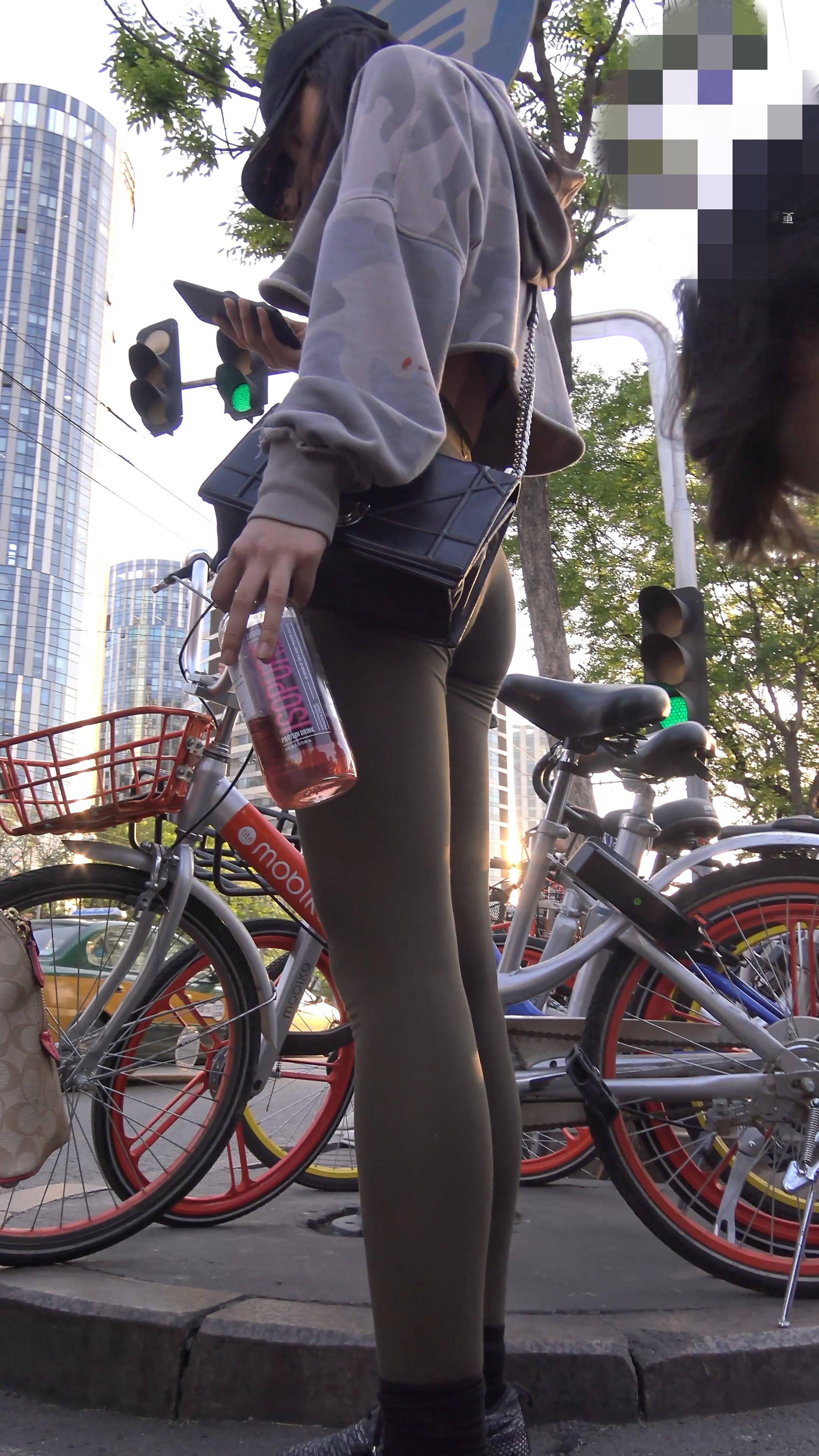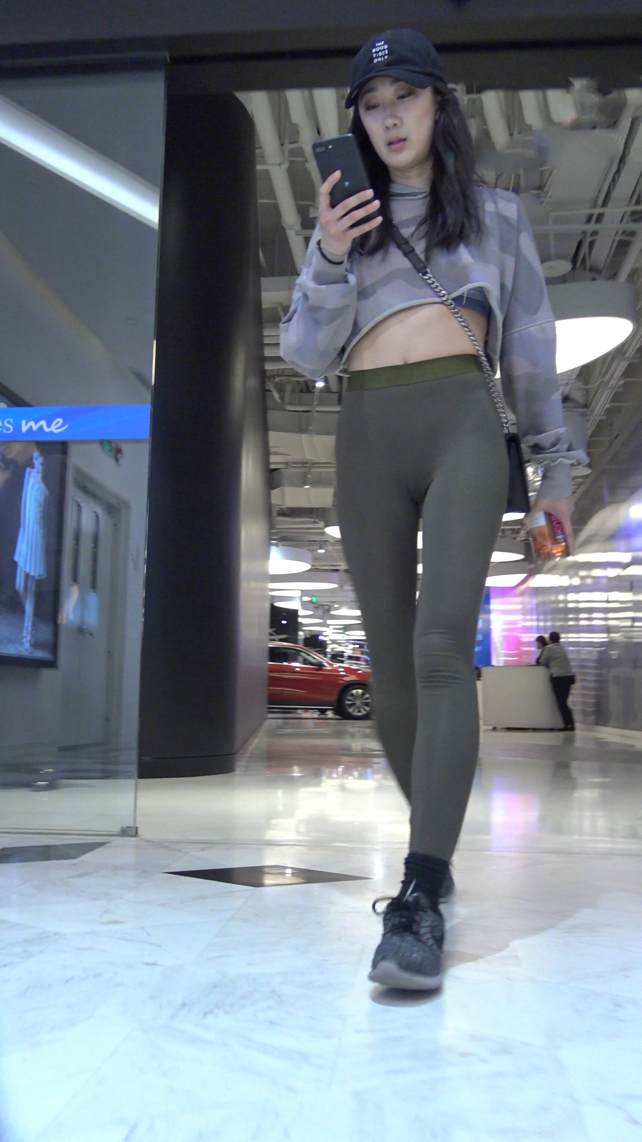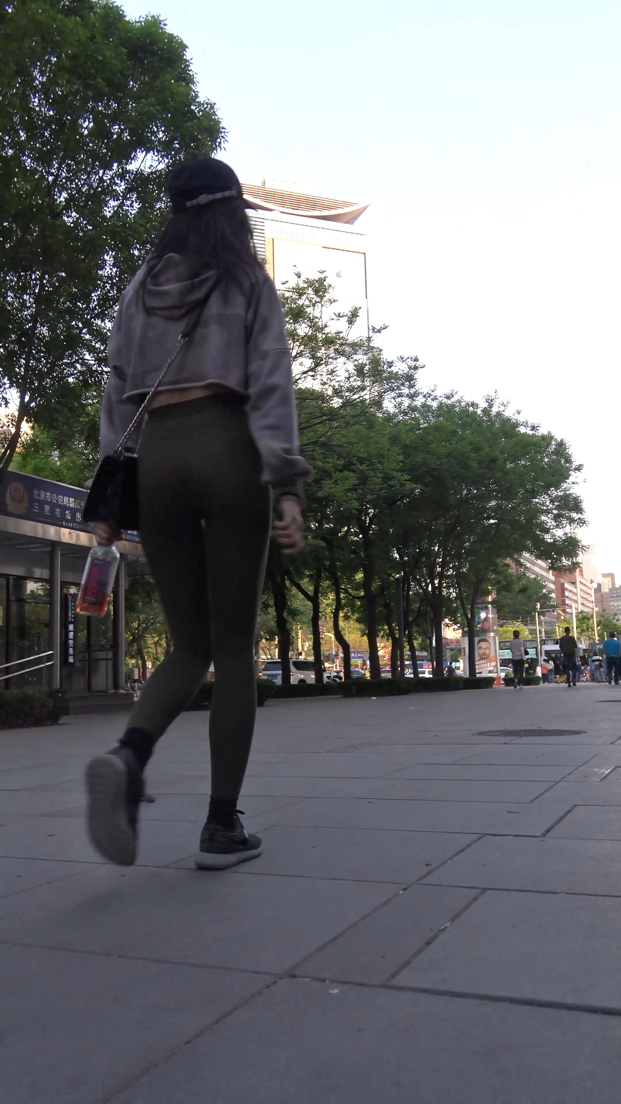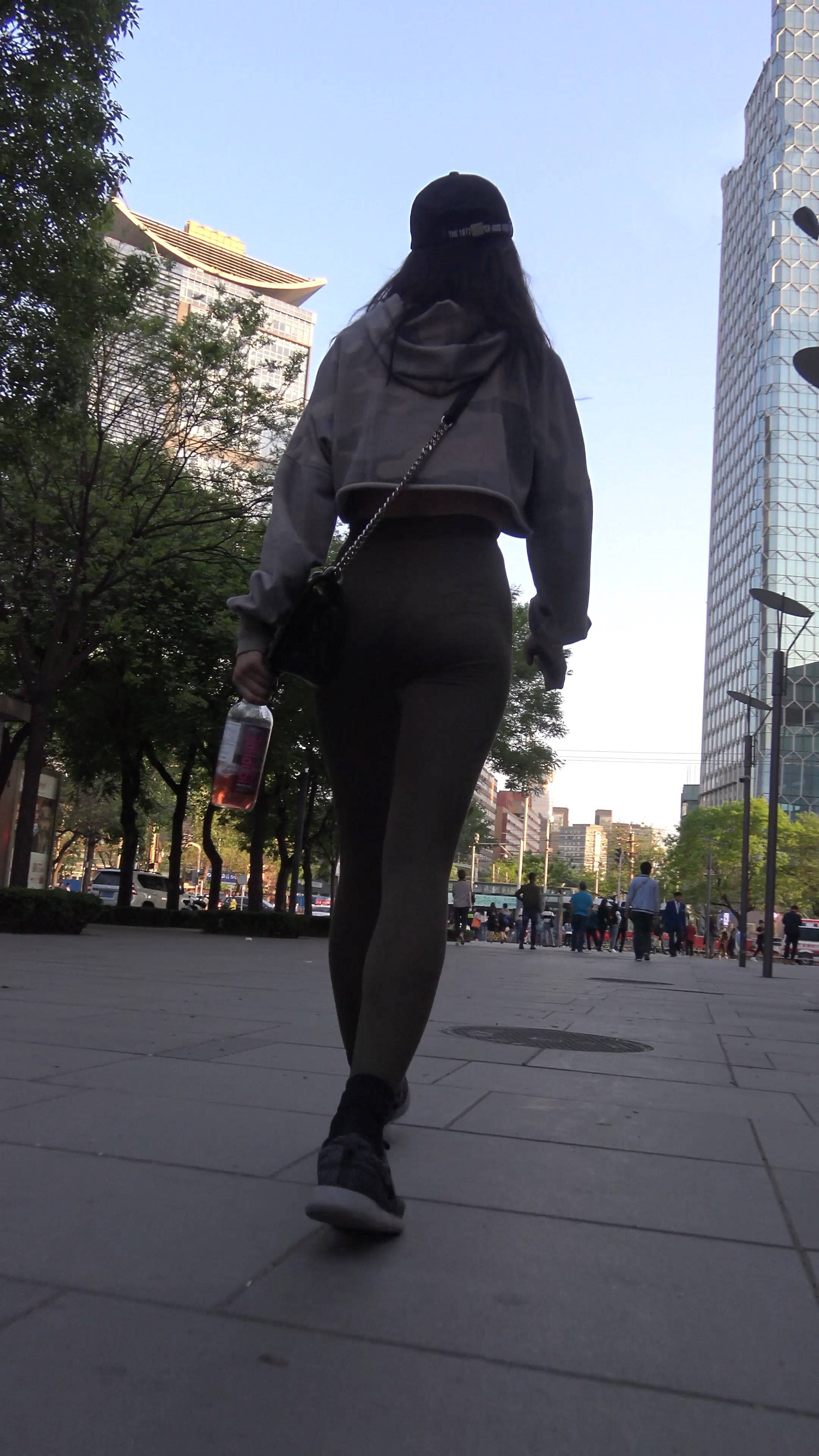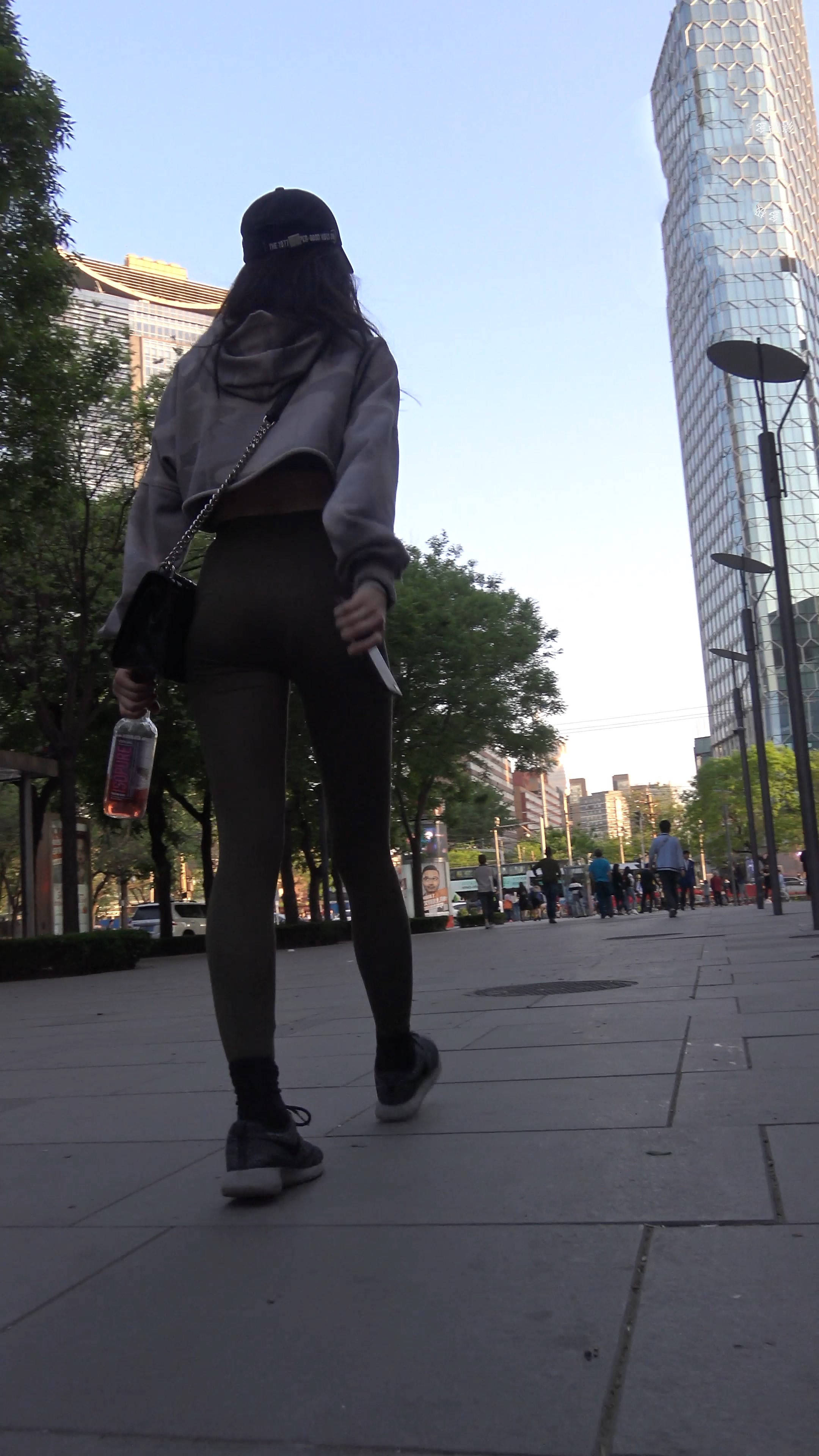 4k-街拍鸭舌帽瑜伽弹力裤美女 编号7660