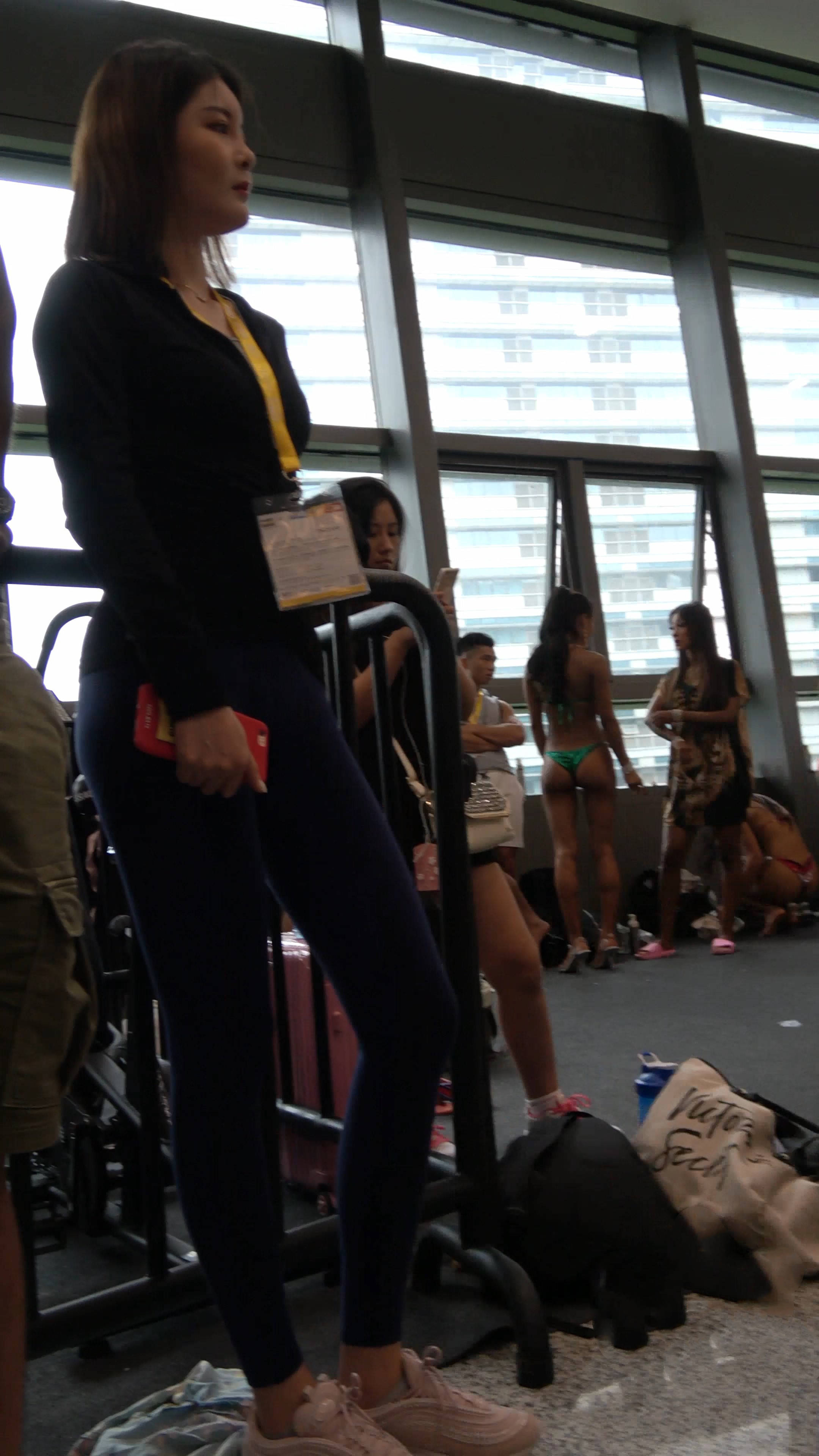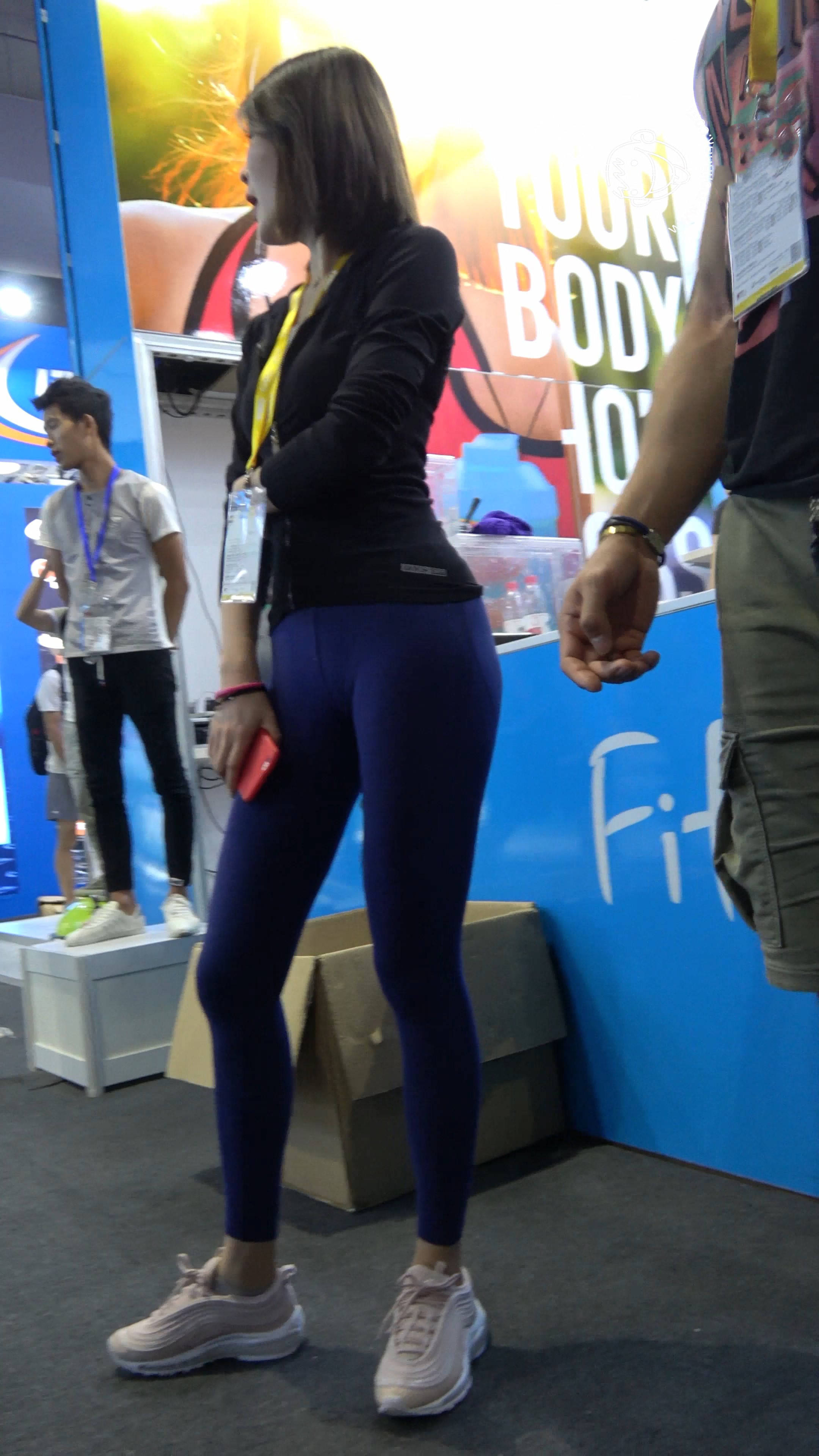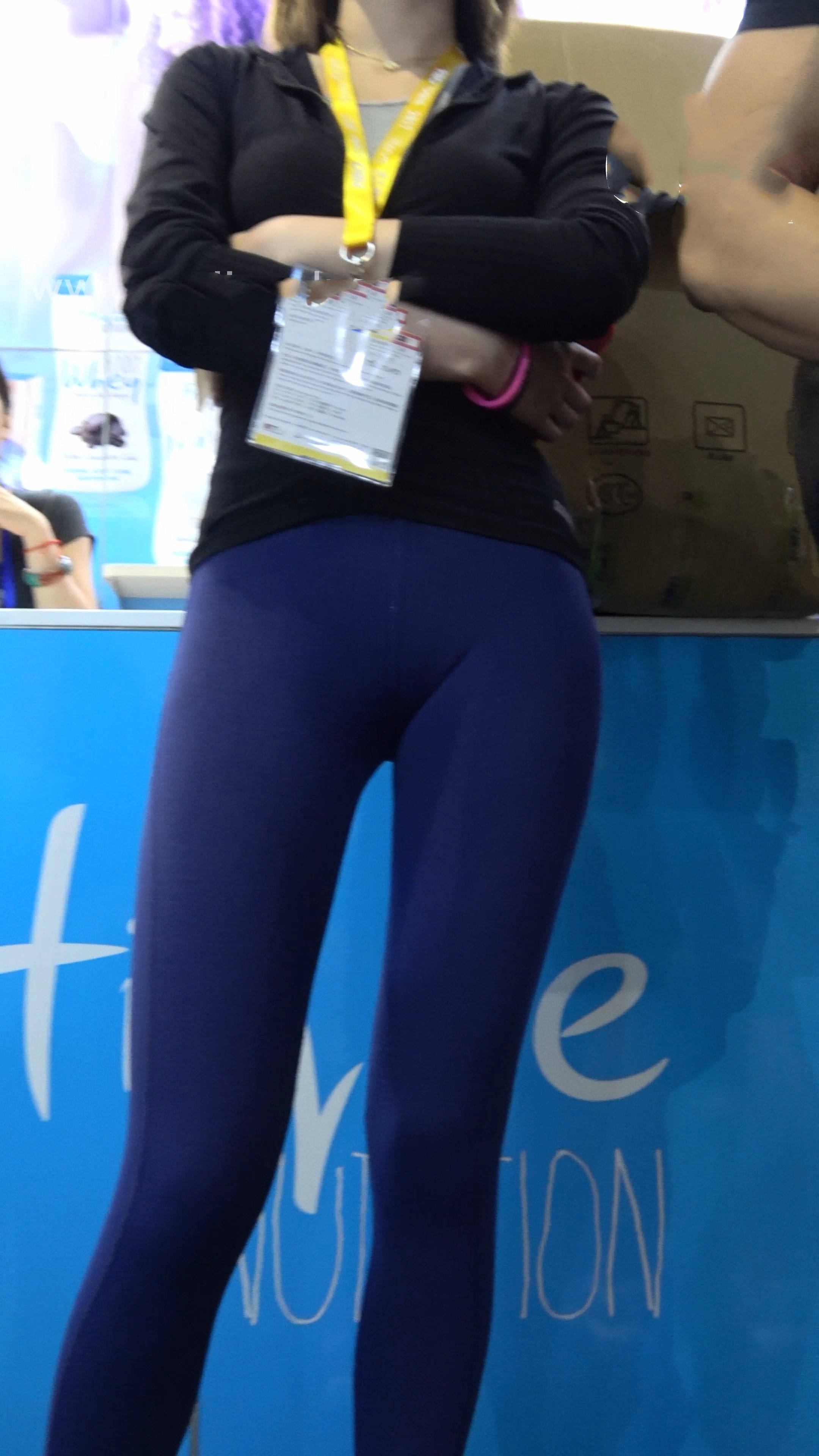 4k-蓝色紧身弹力裤饱满月牙性感美女 编号7672
