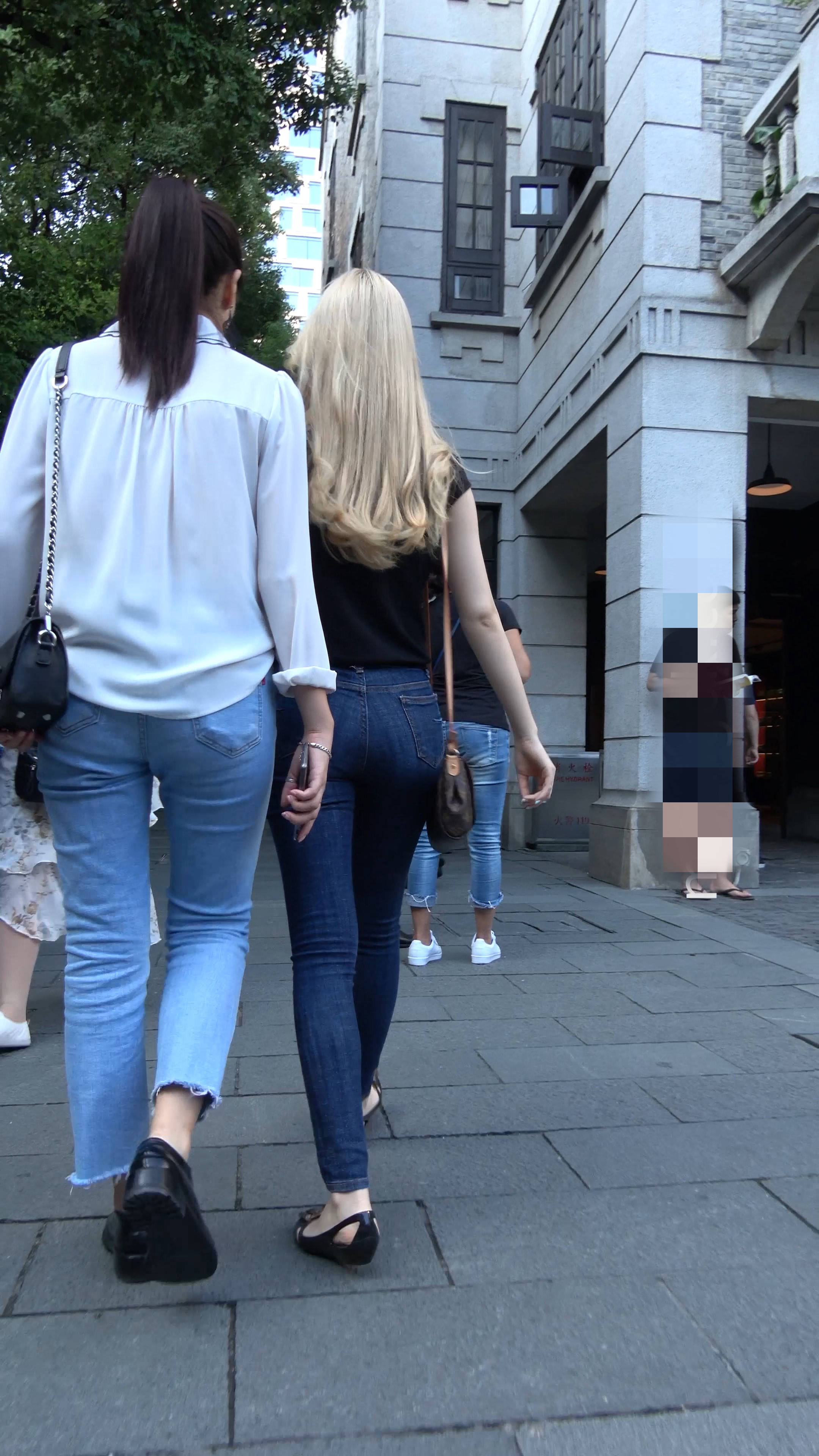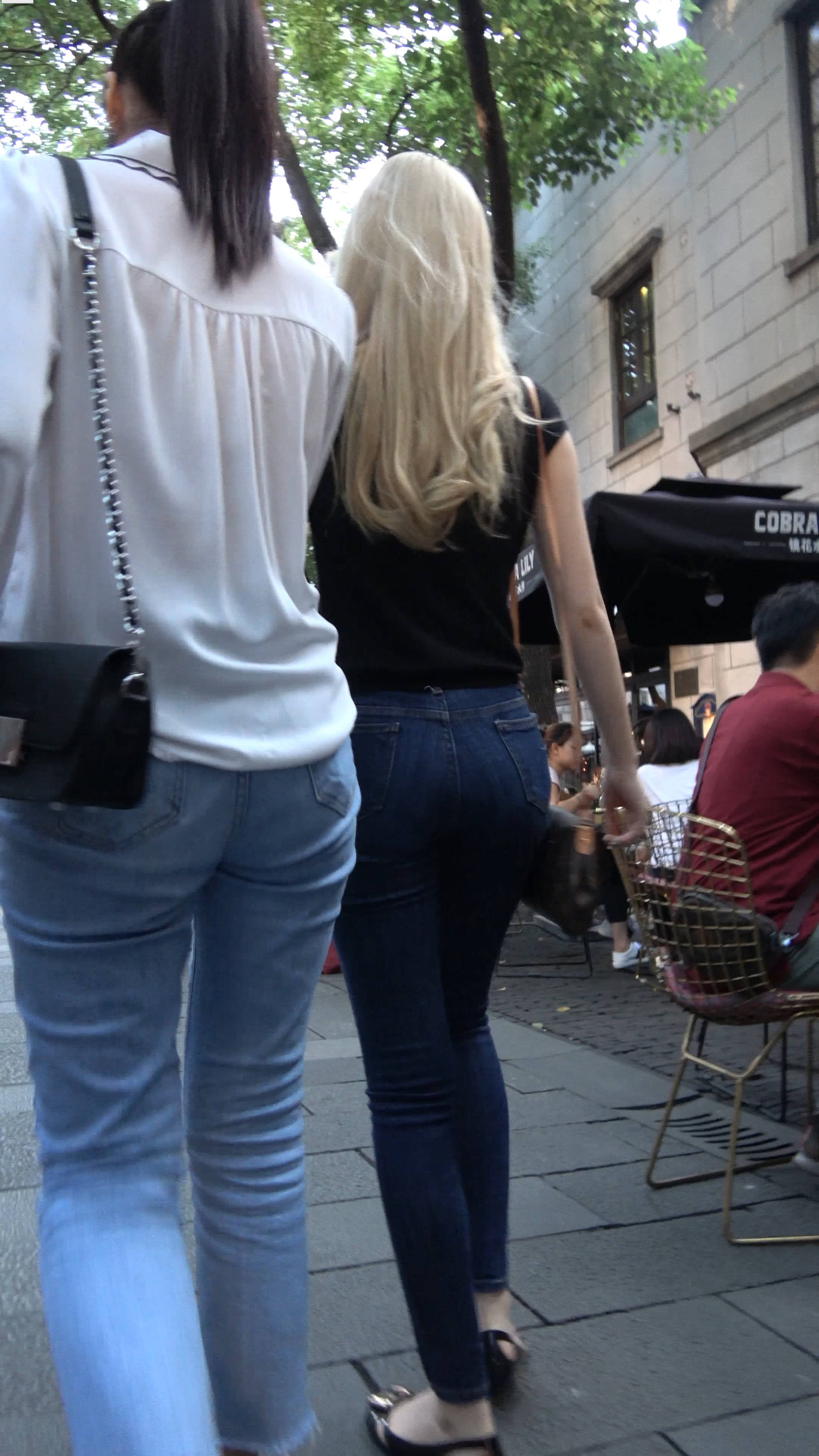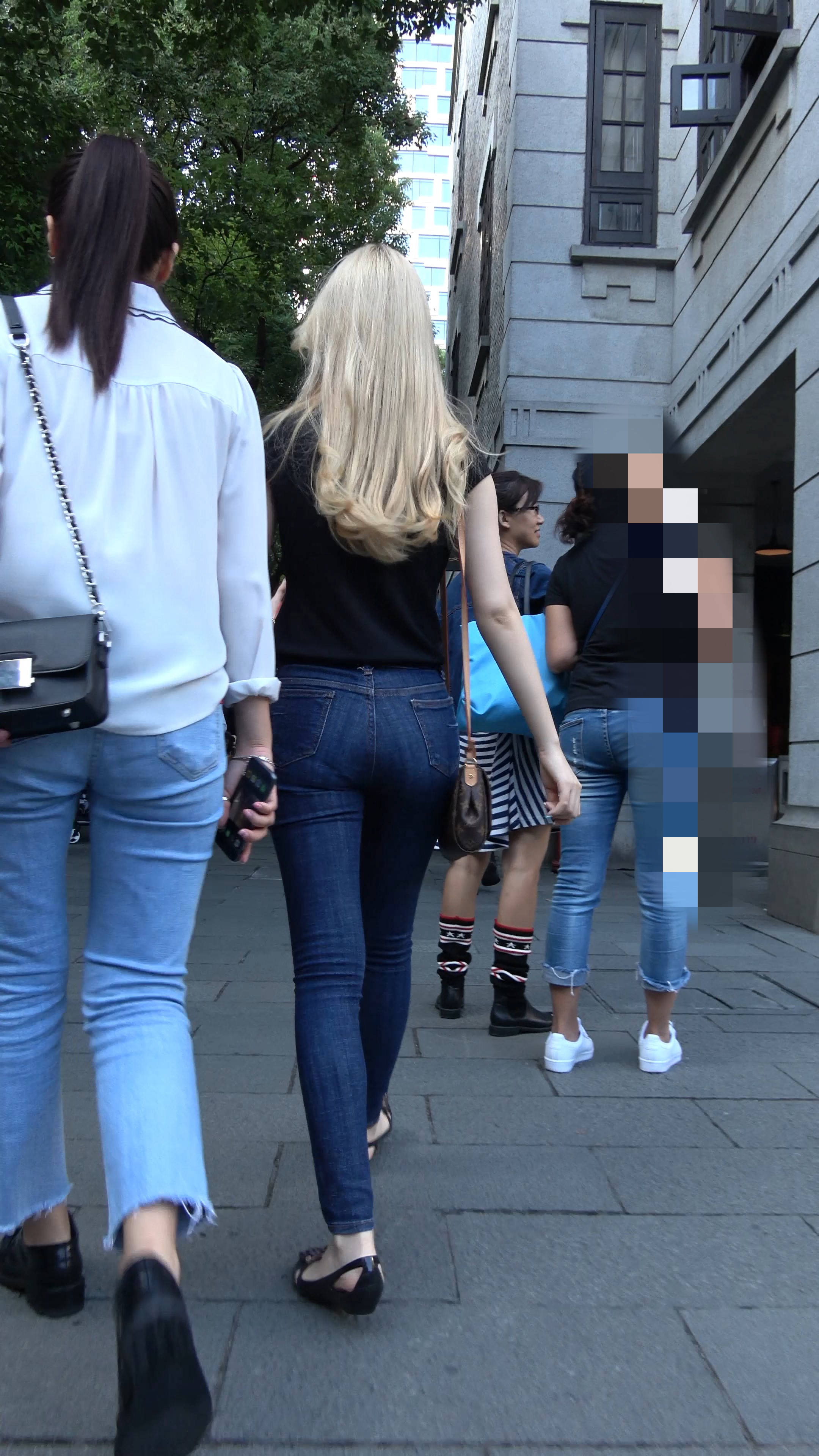 4k超清,街拍金发紧身蓝牛漂亮小姐姐 编号7688