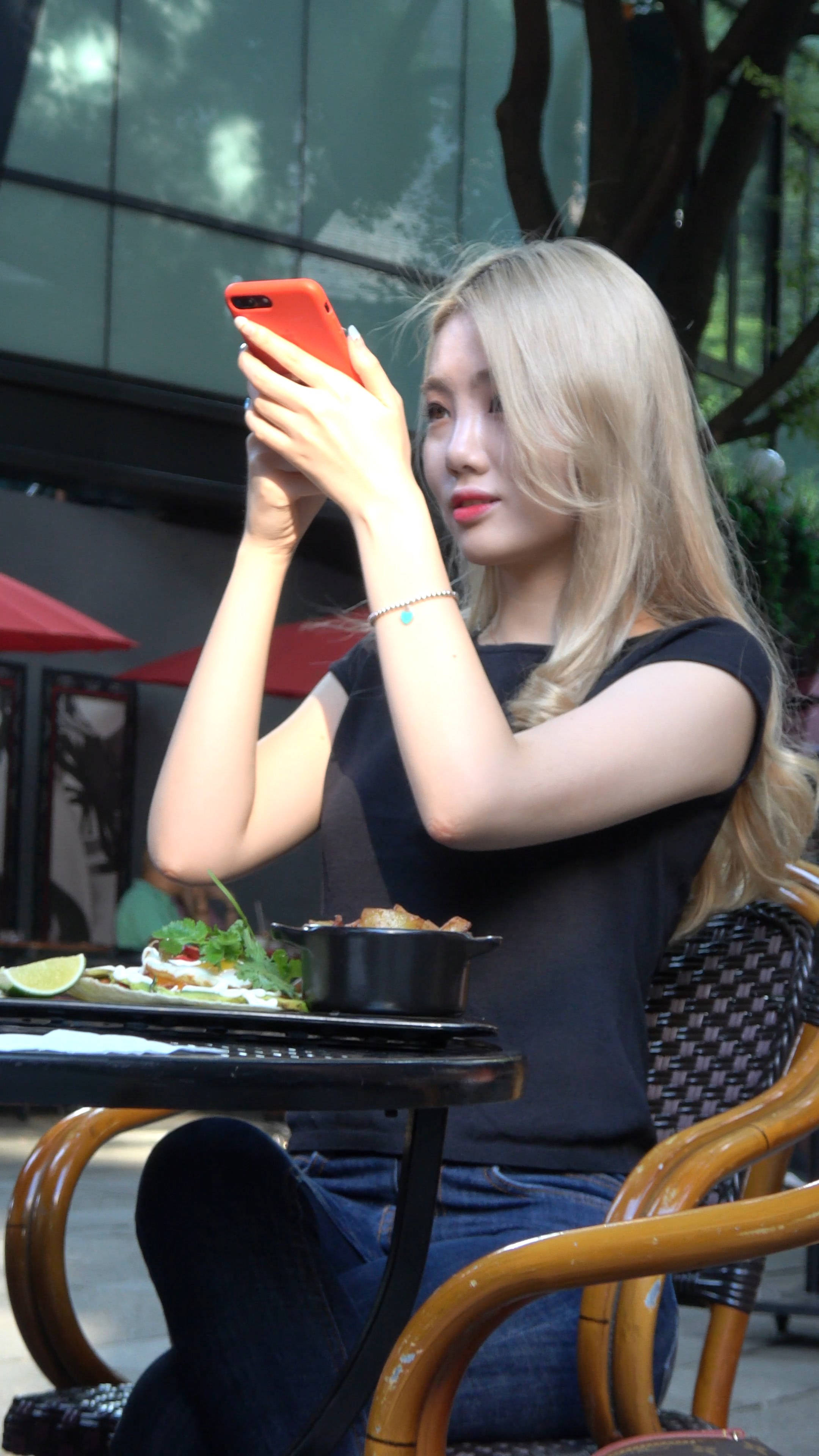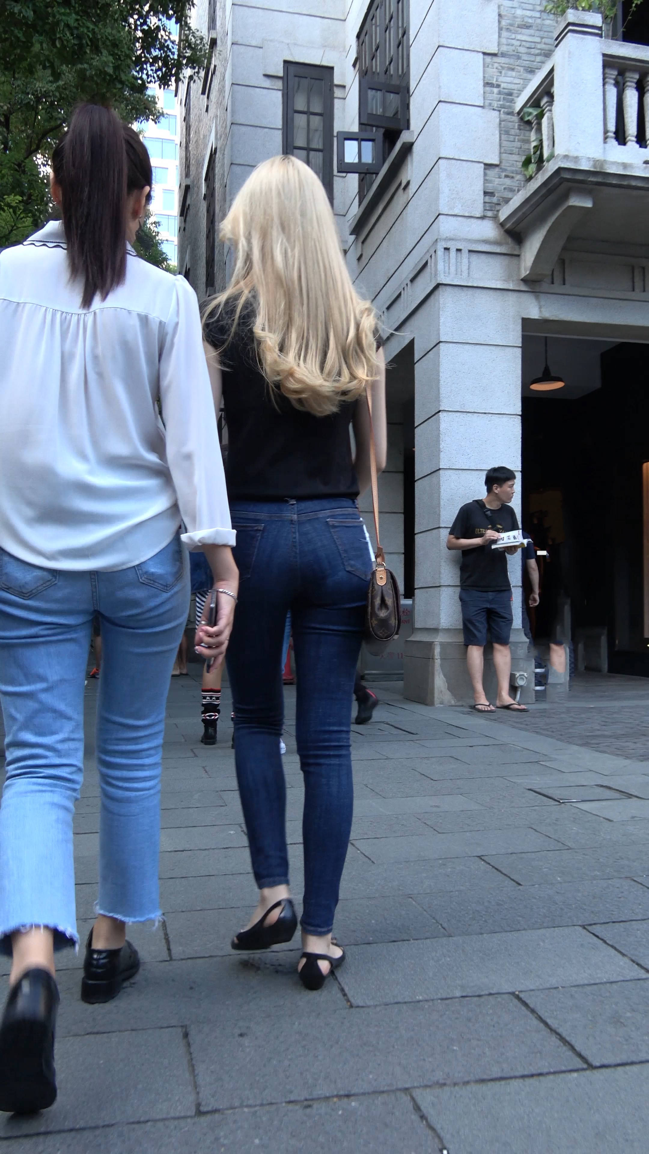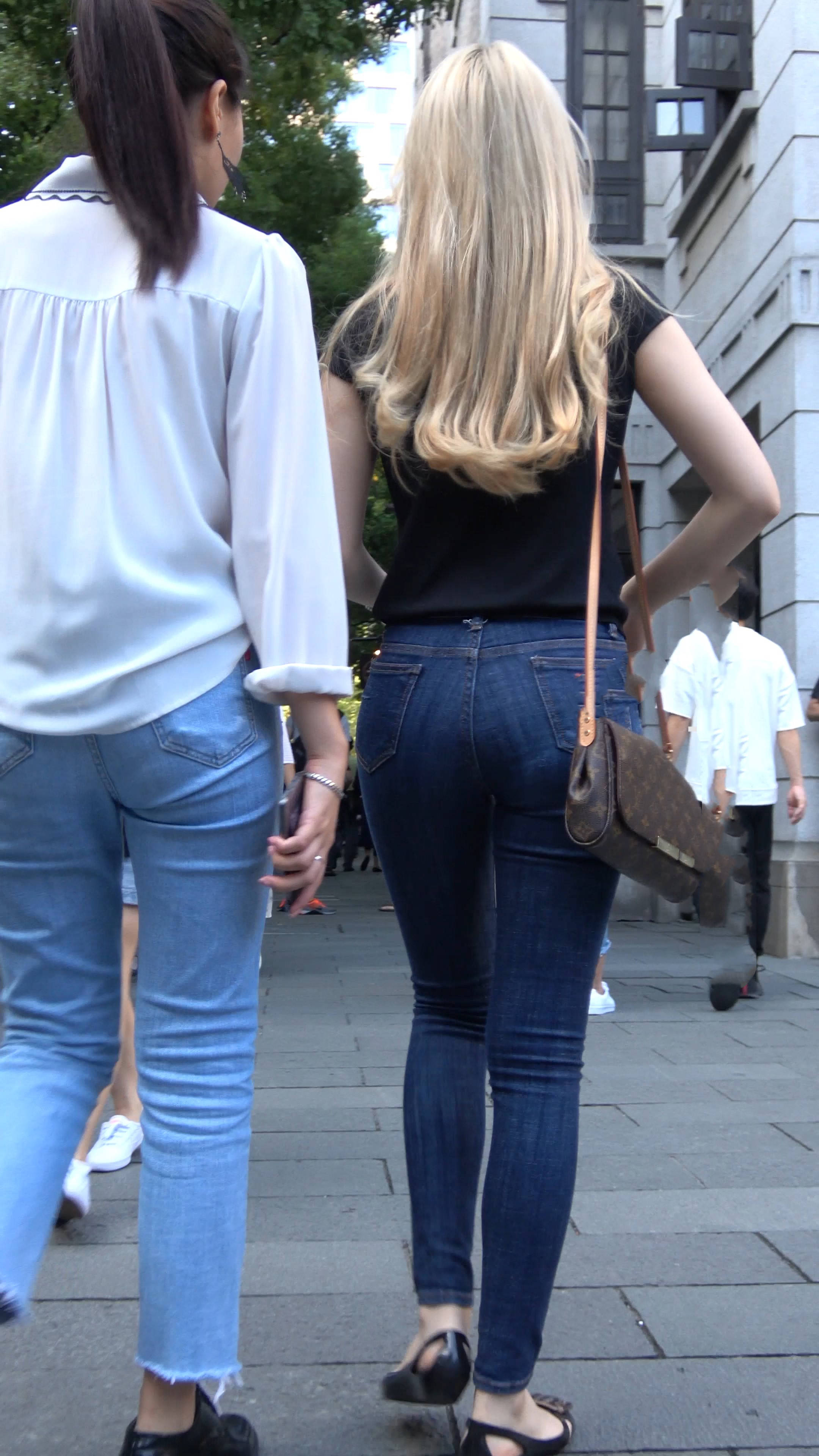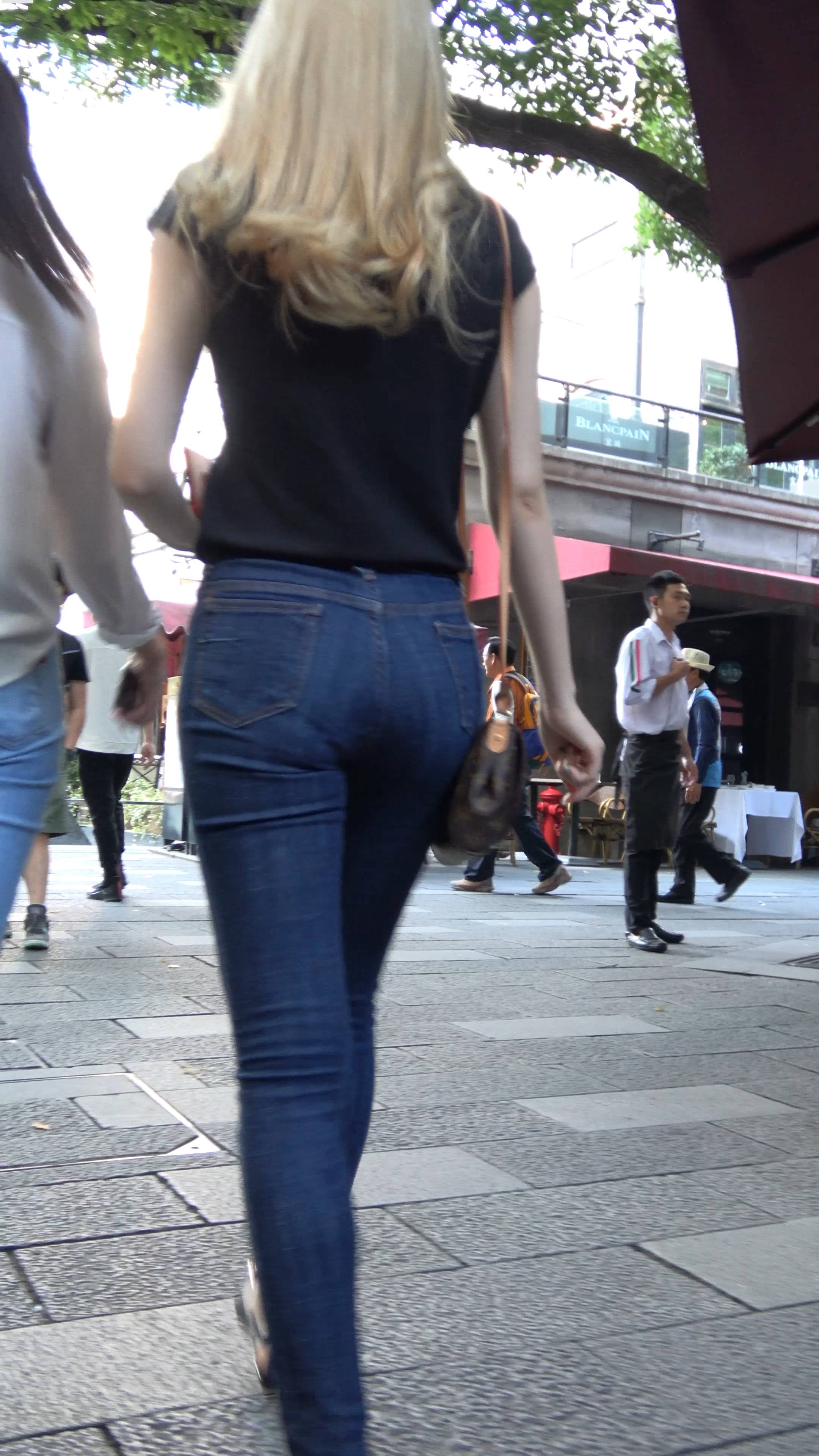 4k超清,街拍金发紧身蓝牛漂亮小姐姐 编号7688