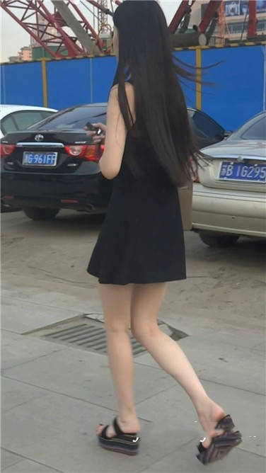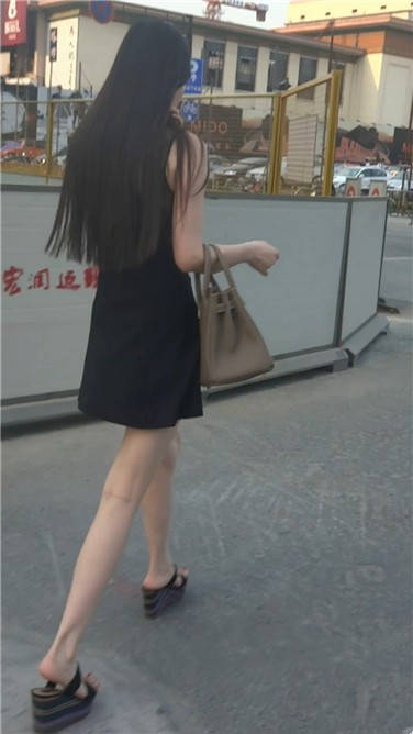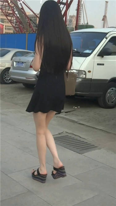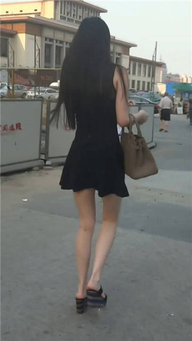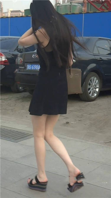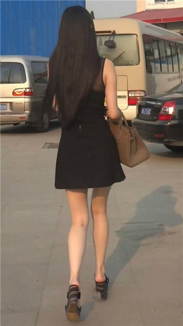 街拍黑色连衣裙细腿苗条美眉 编号3622