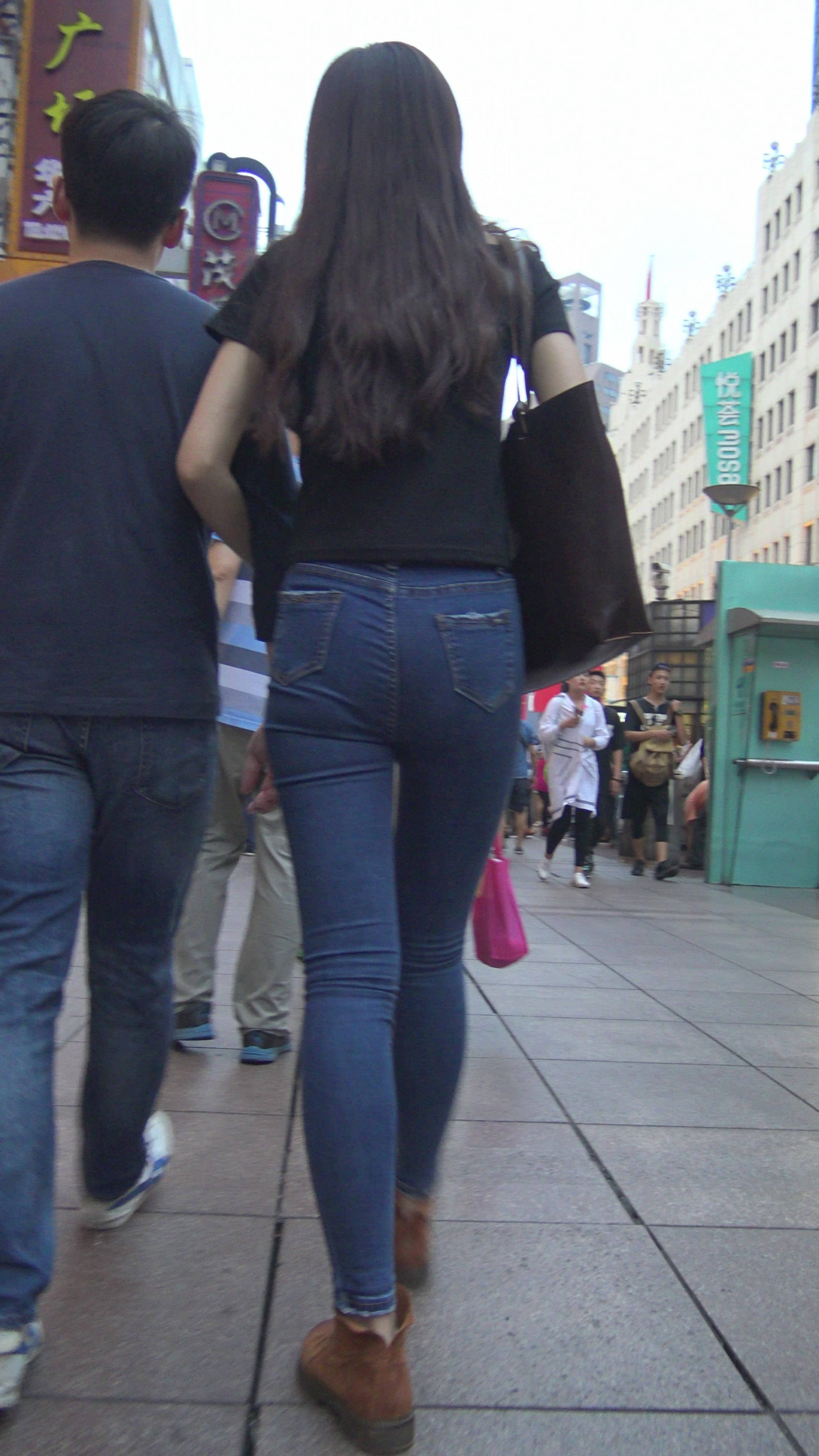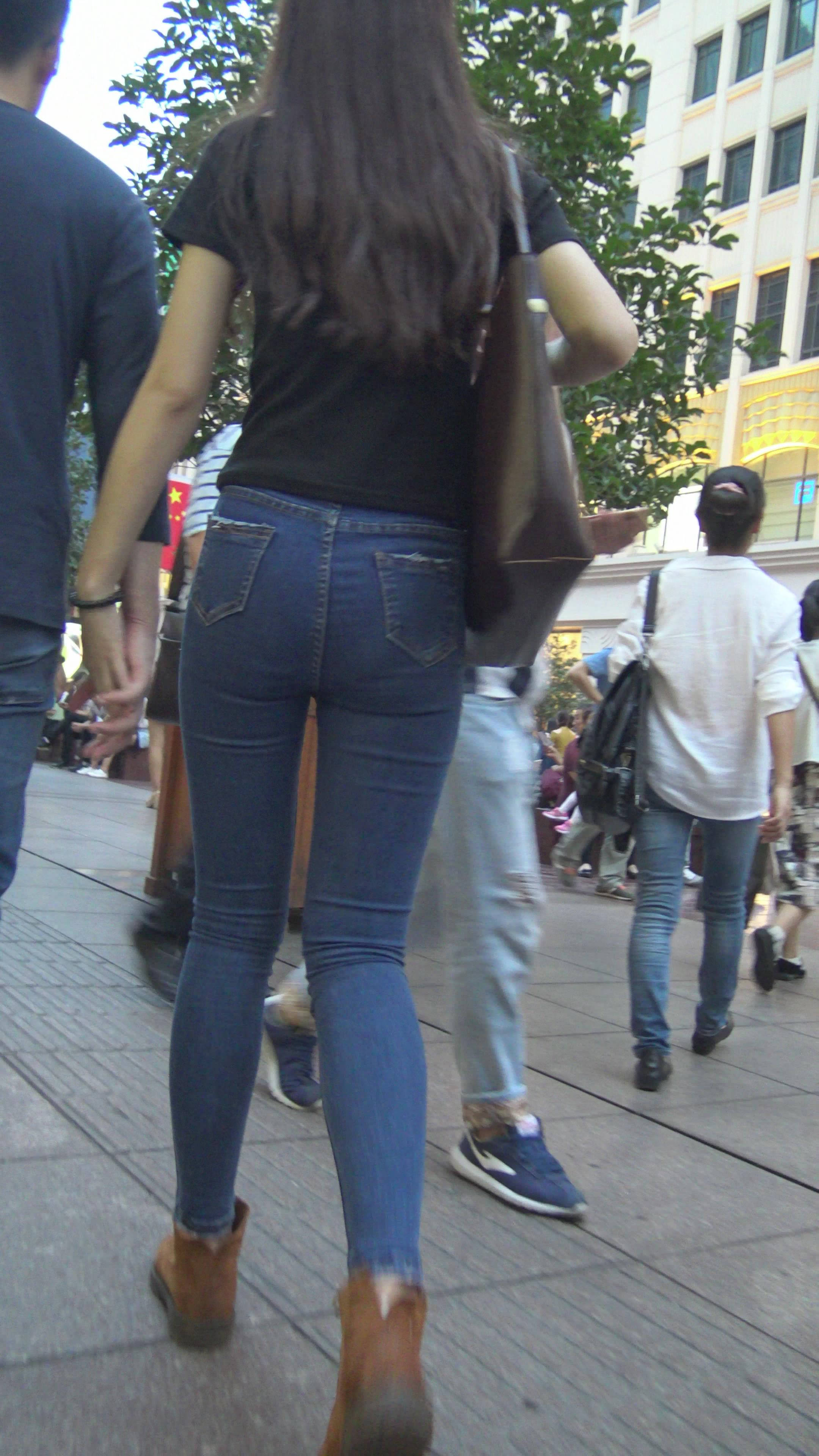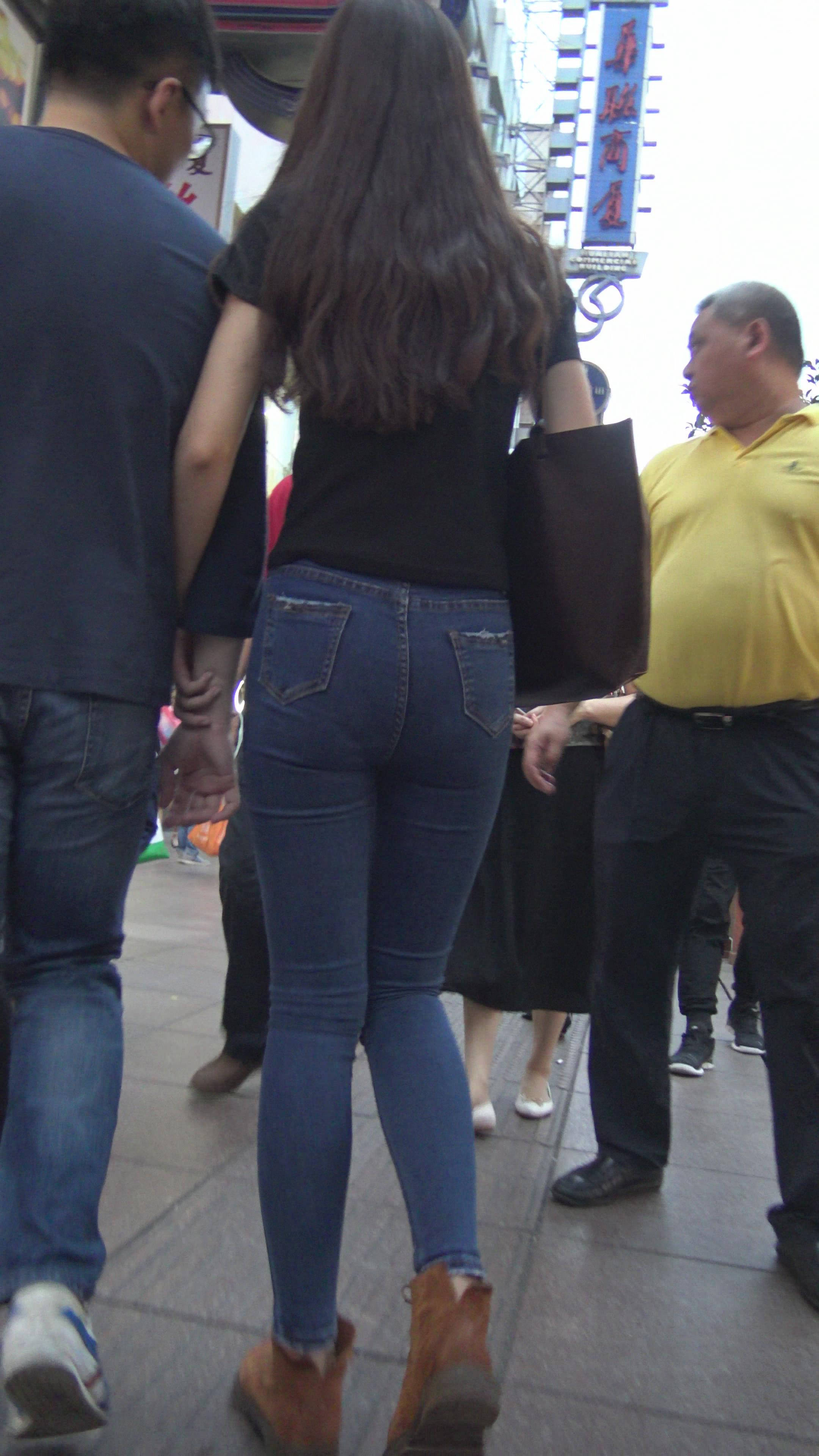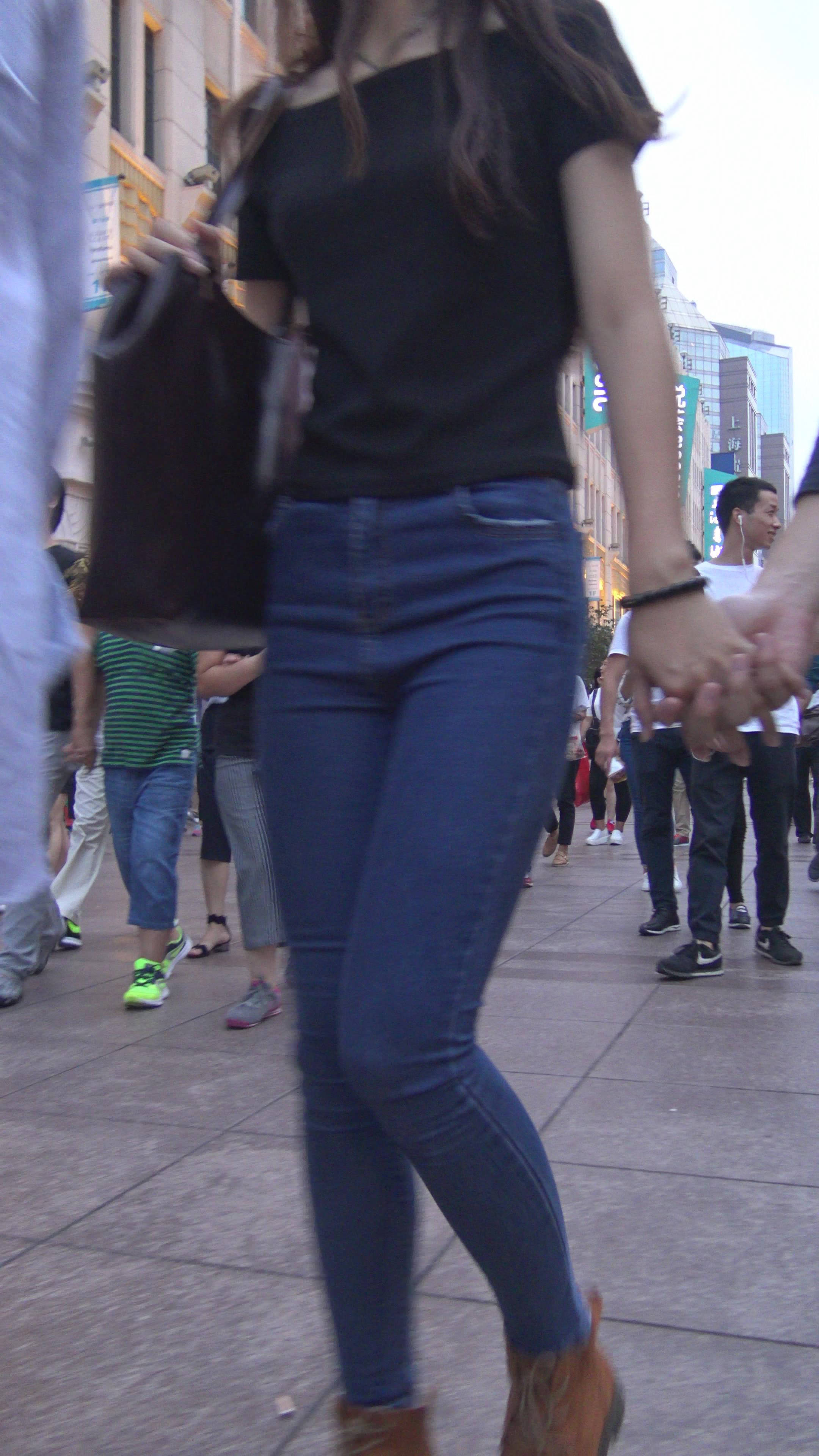 4K黑T恤紧身牛仔裤小美女的极品美臀 编号7744