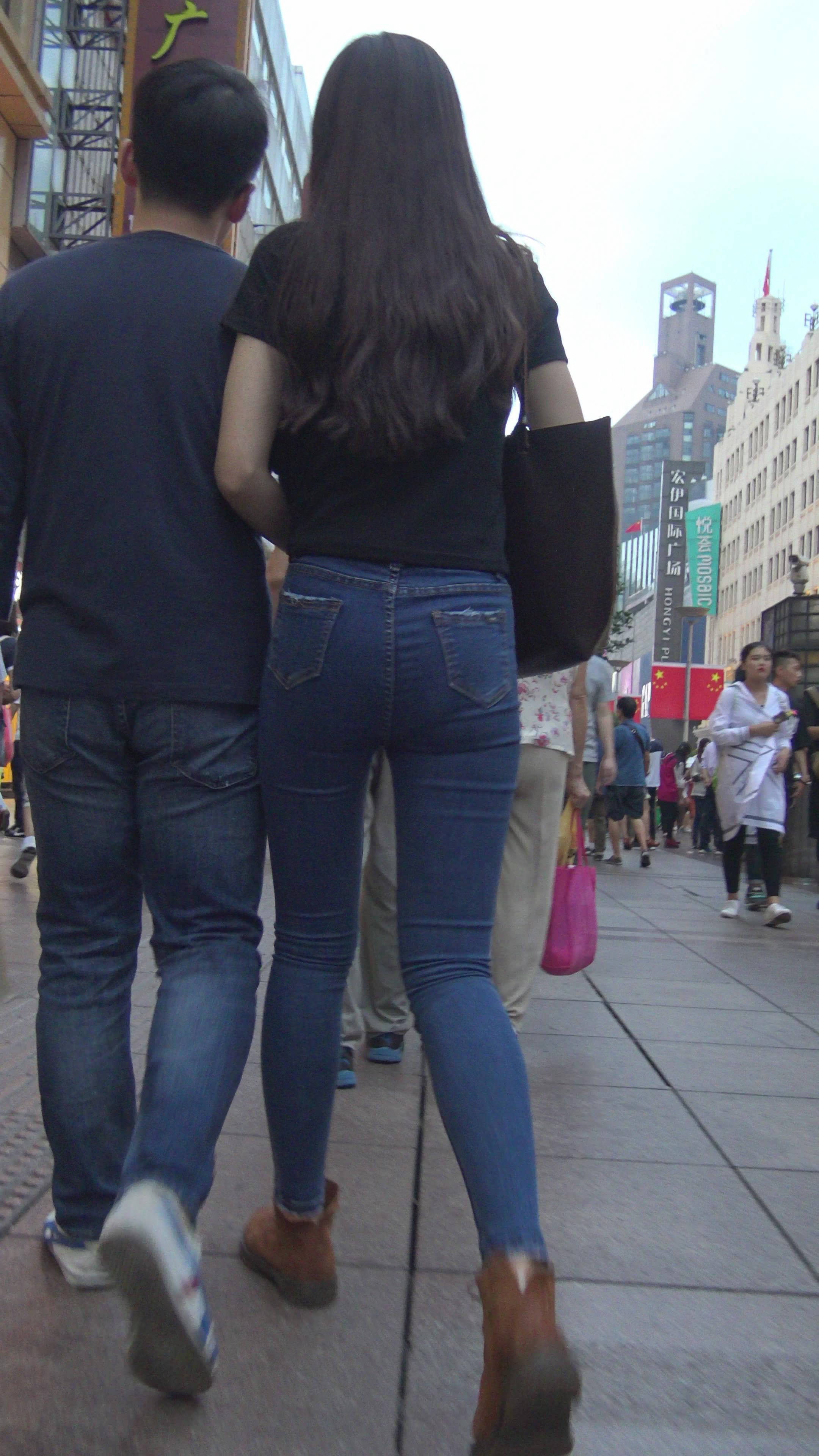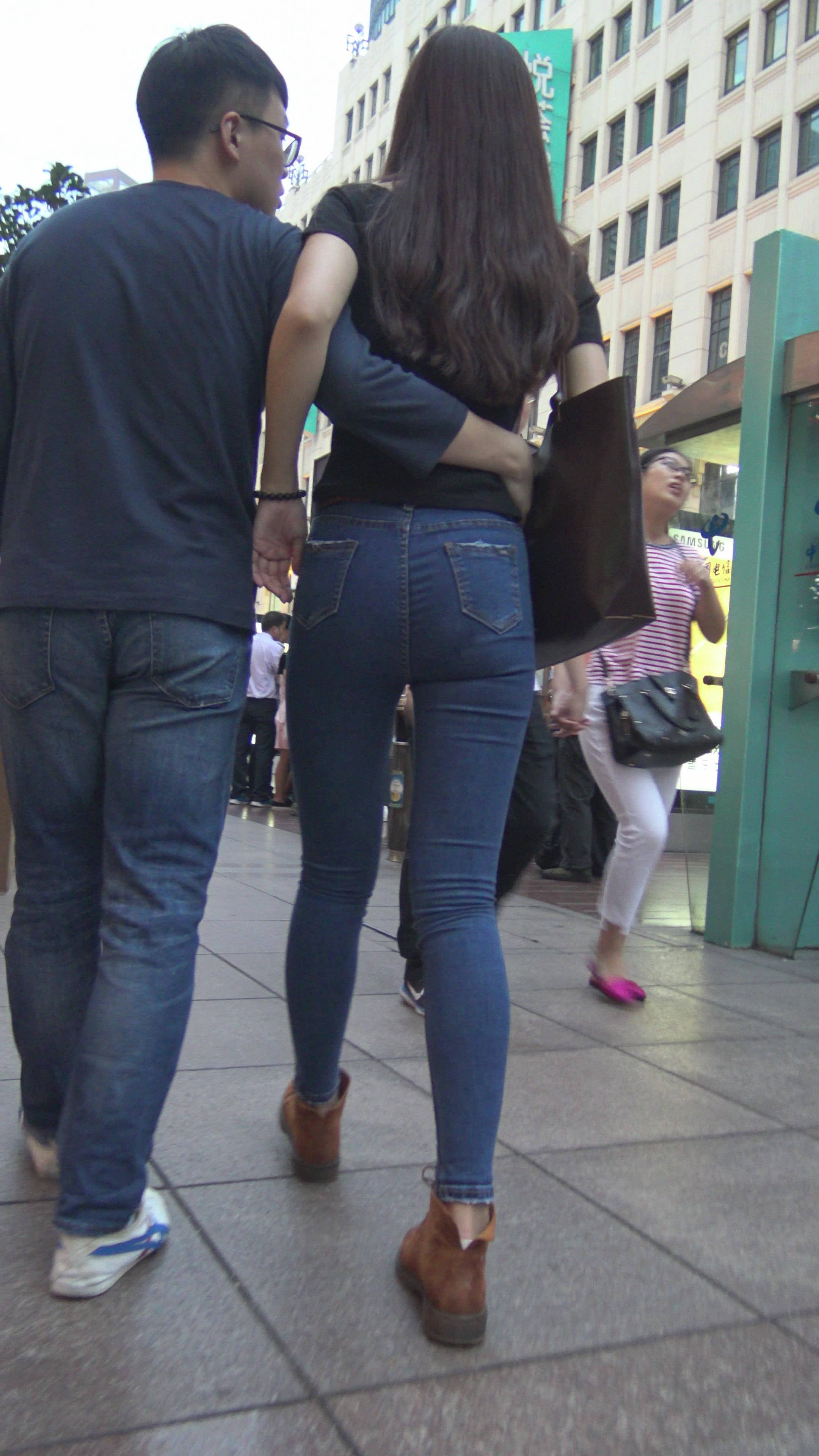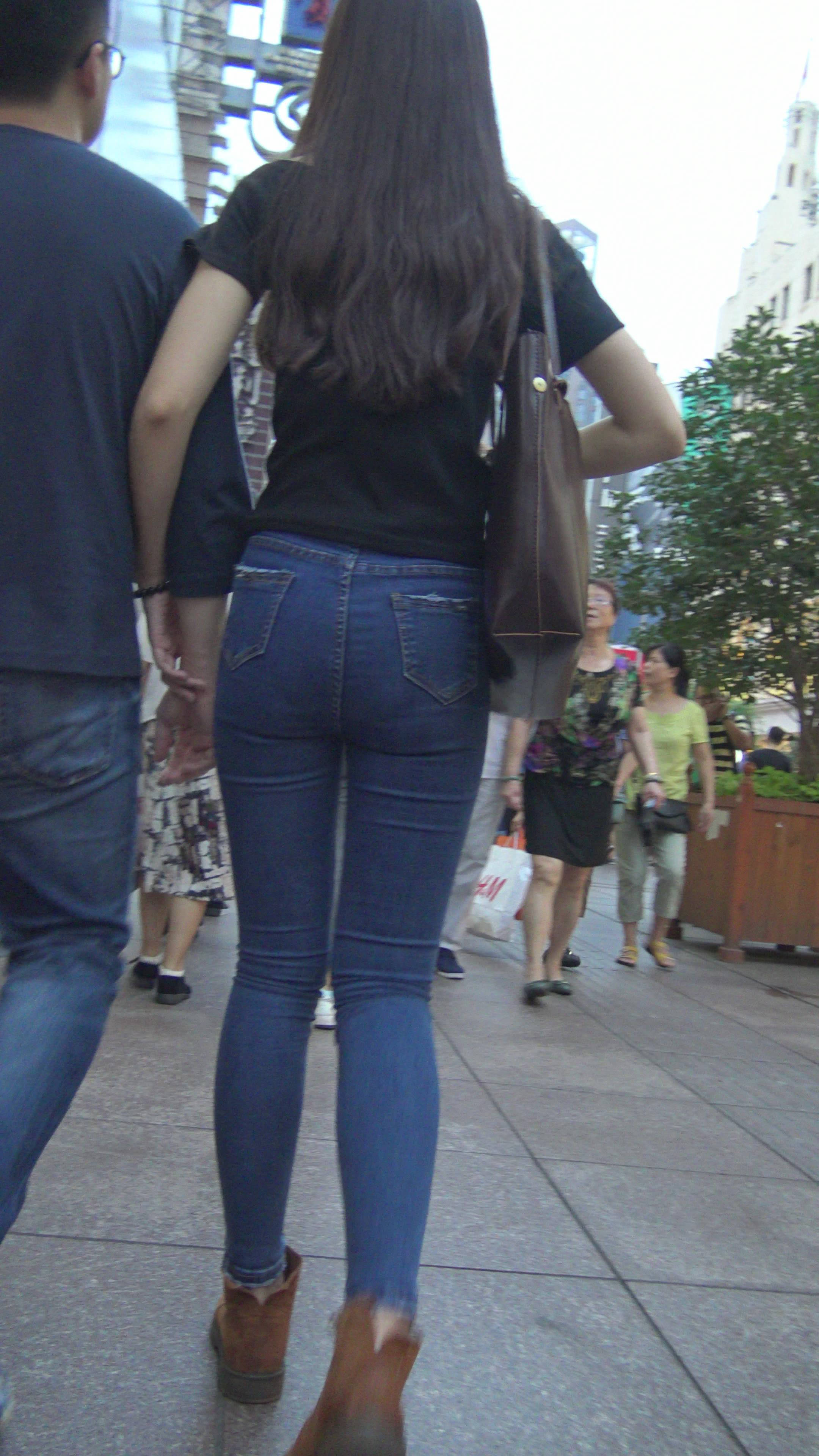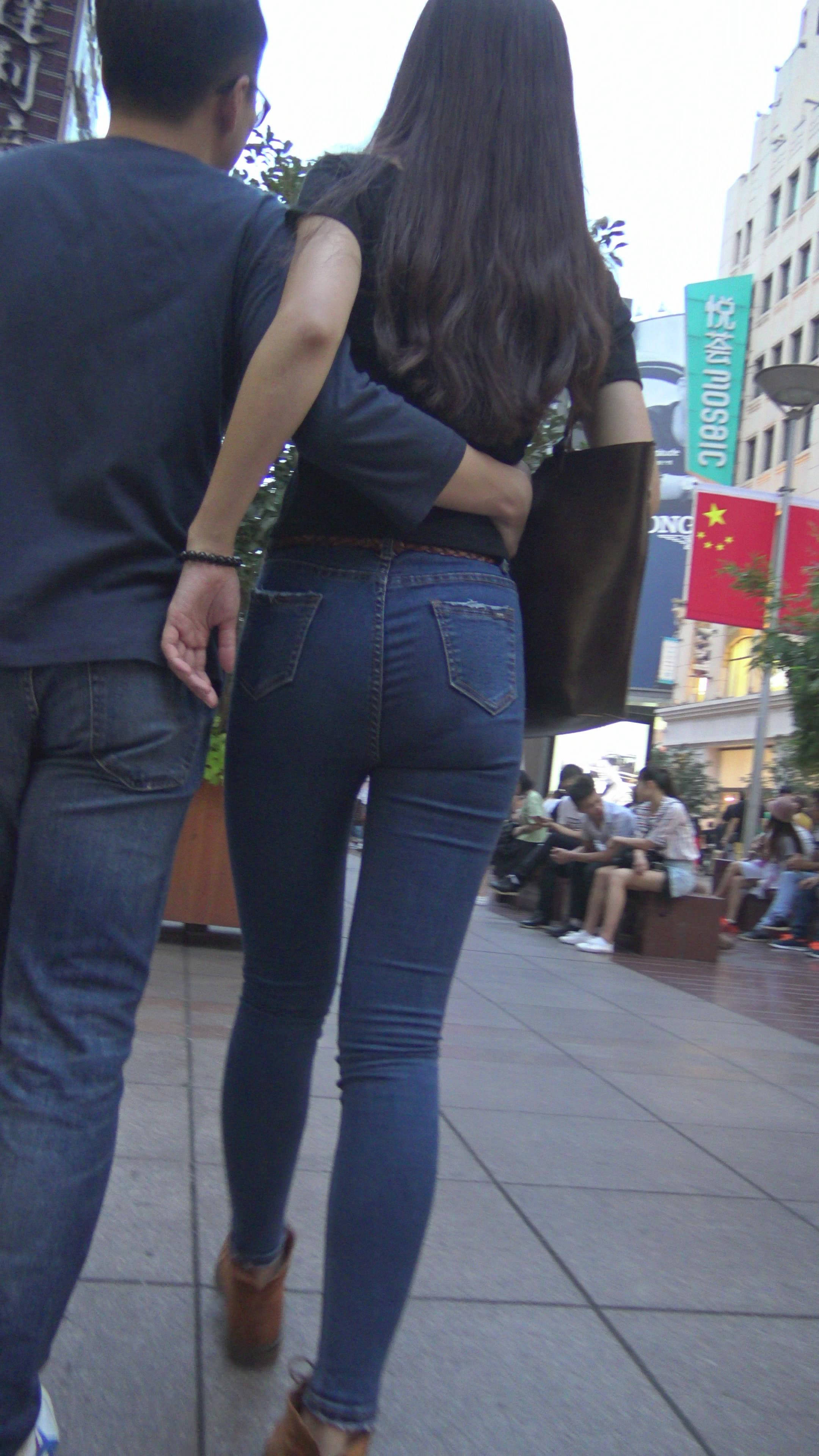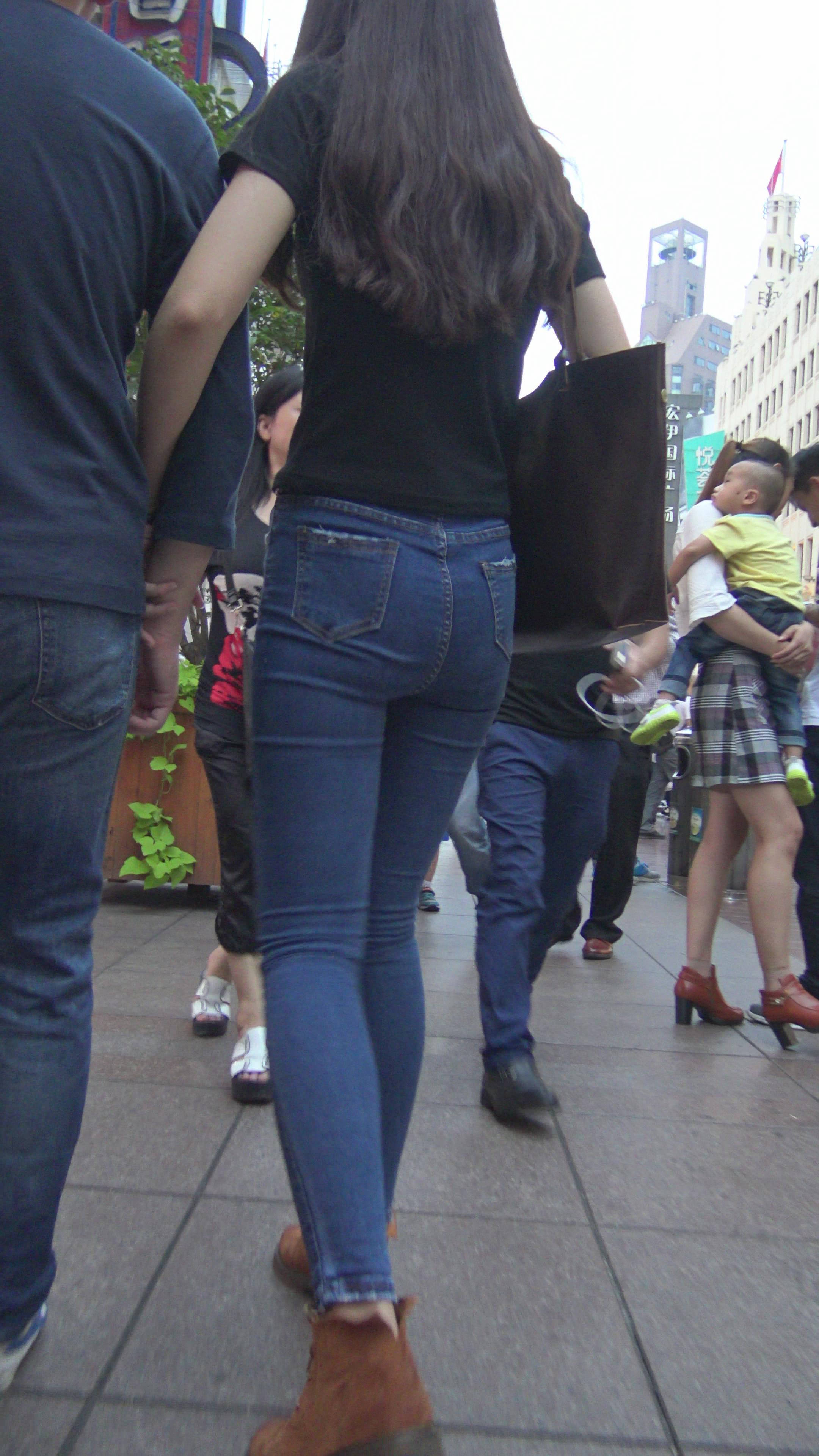 4K黑T恤紧身牛仔裤小美女的极品美臀 编号7744