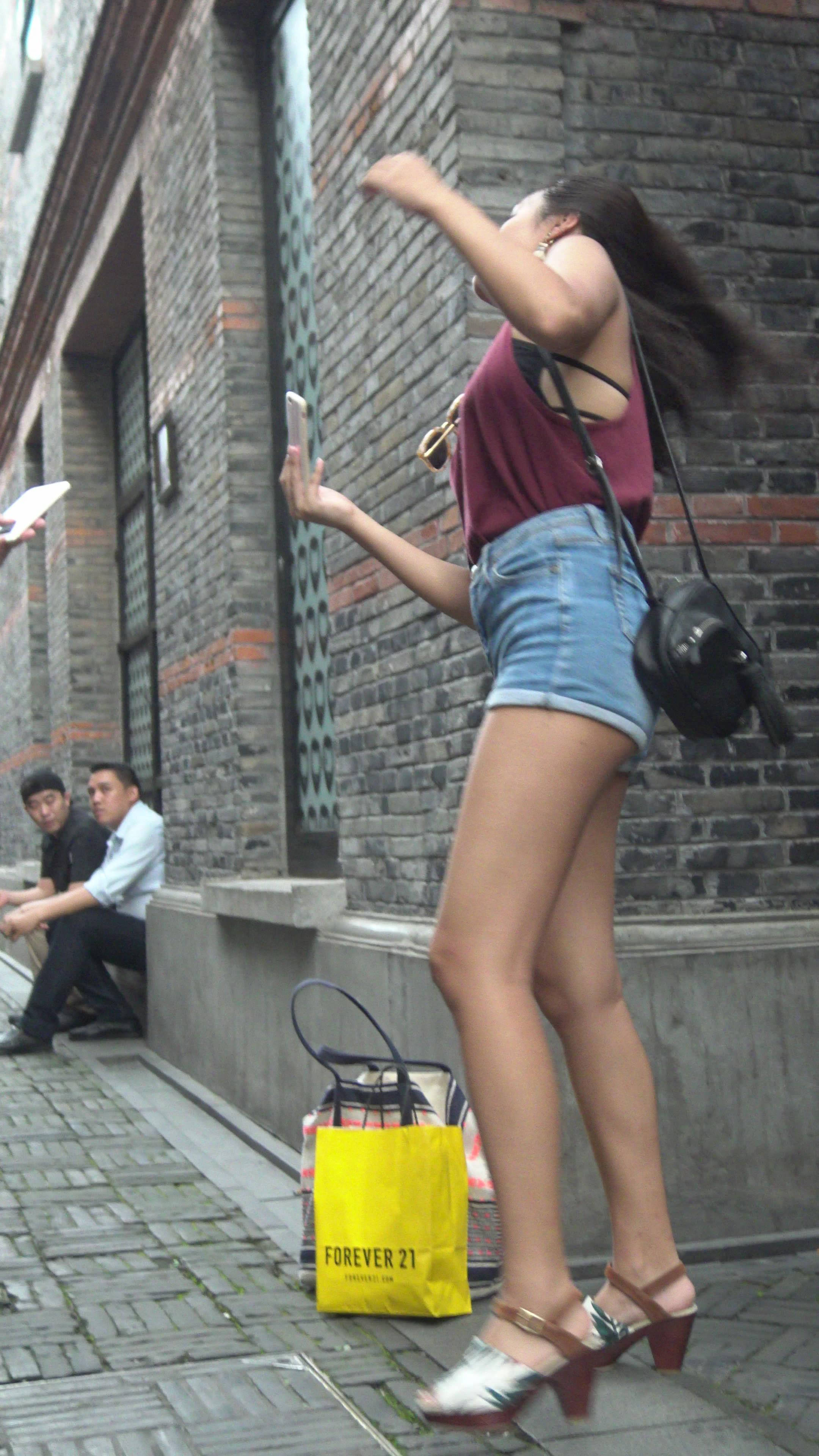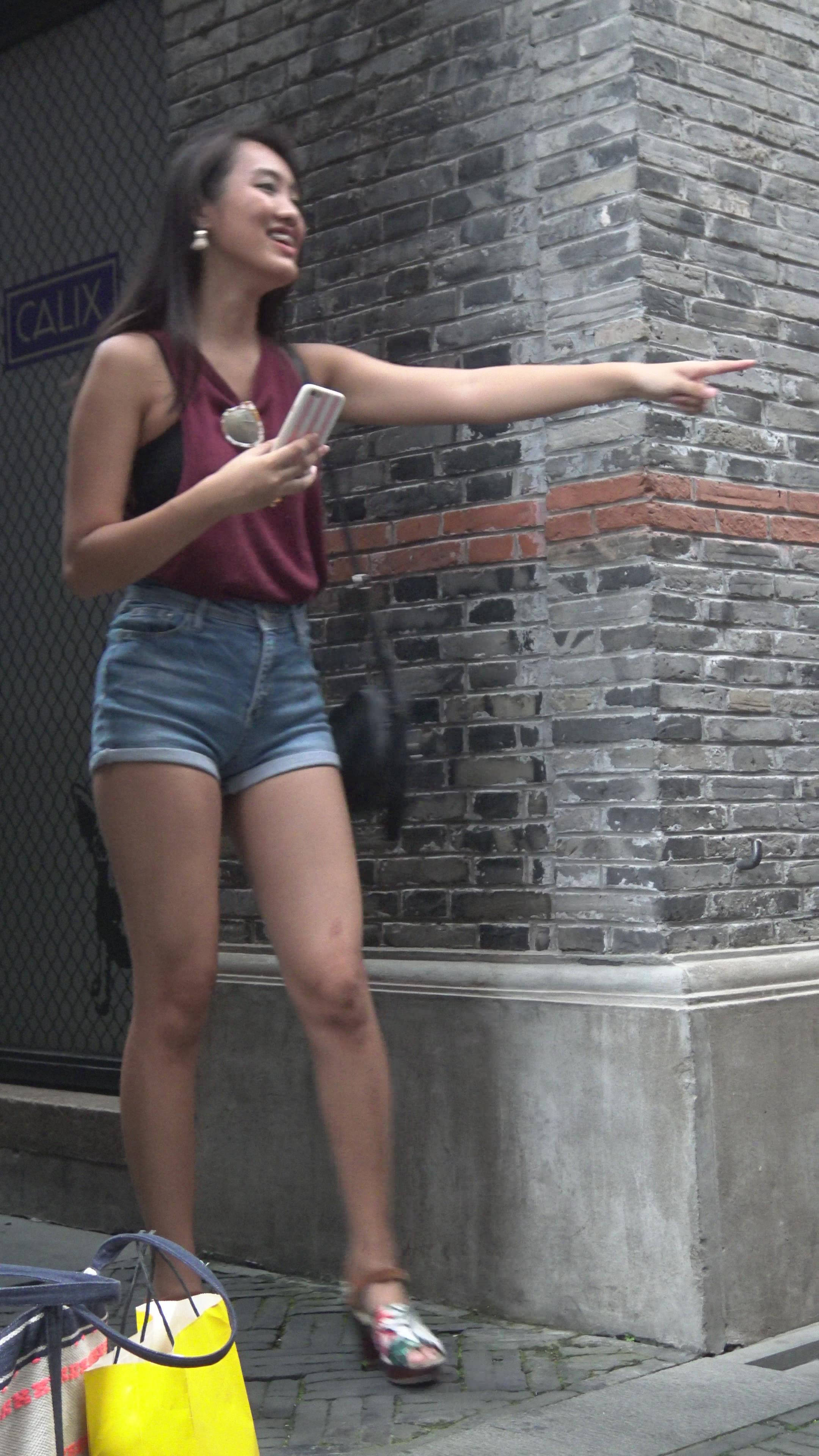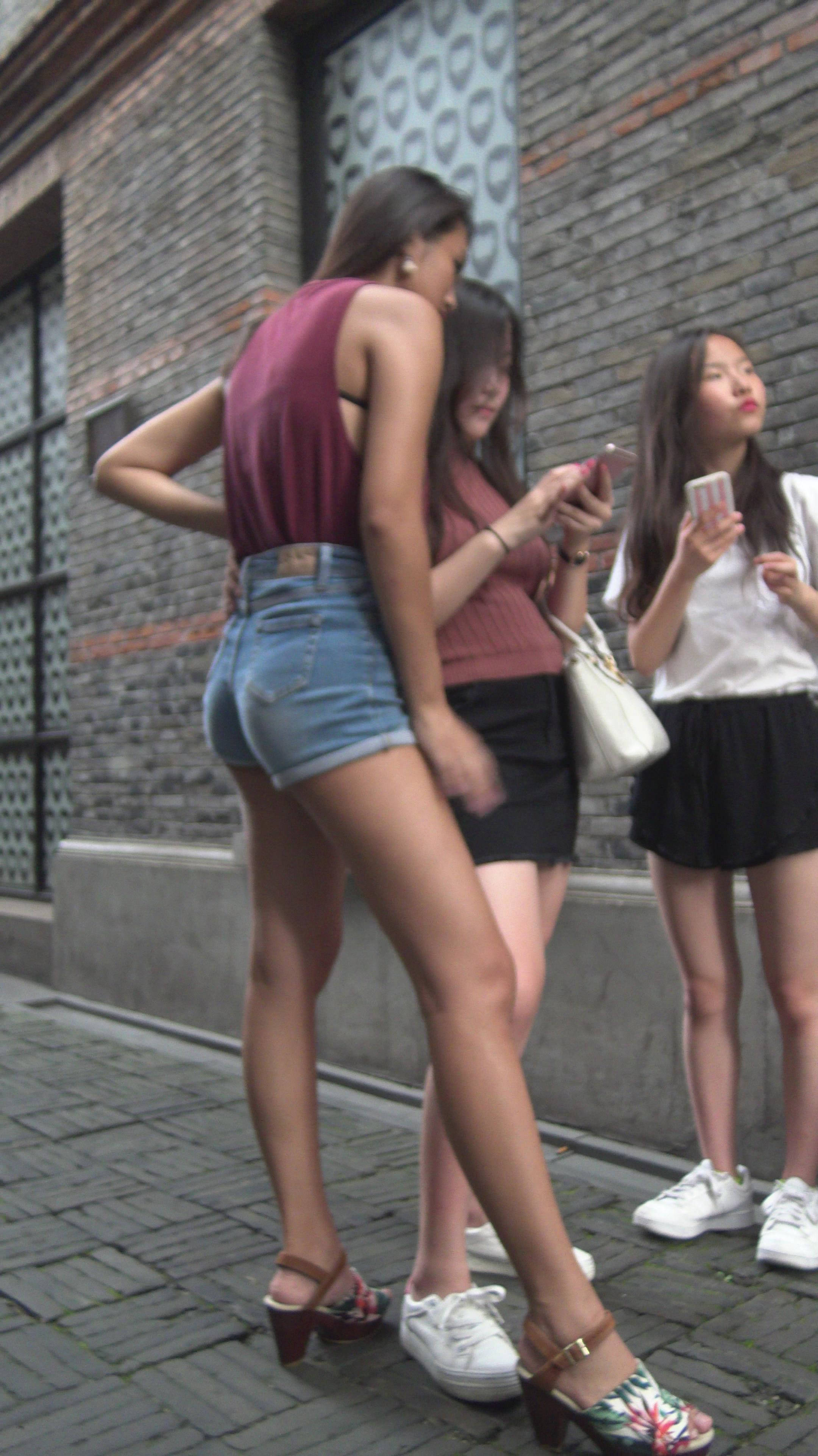 性感高挑身材牛仔热裤街拍美女2 编号7748