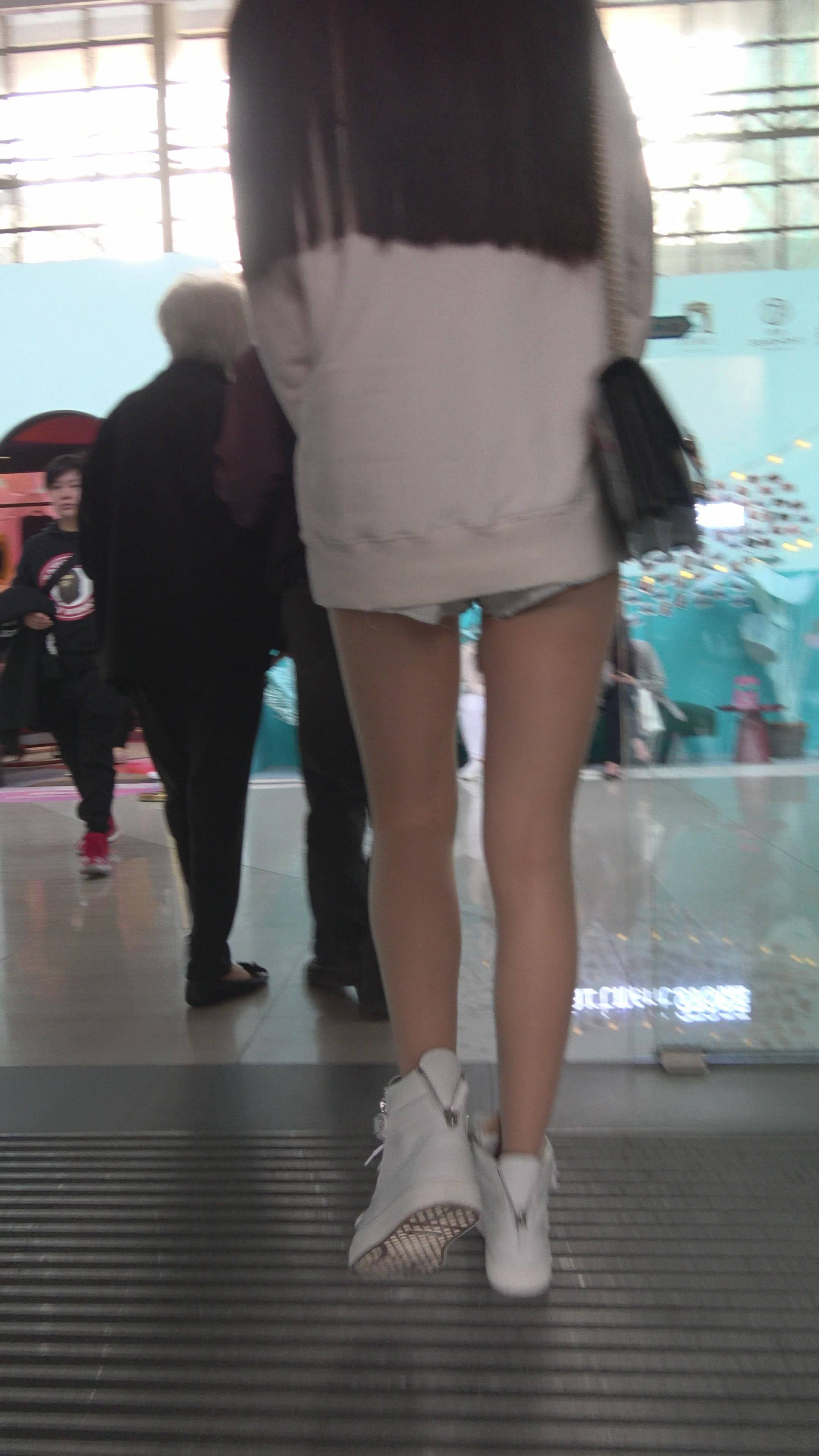 4K街拍热裤肉丝袜甜美女孩 编号7788