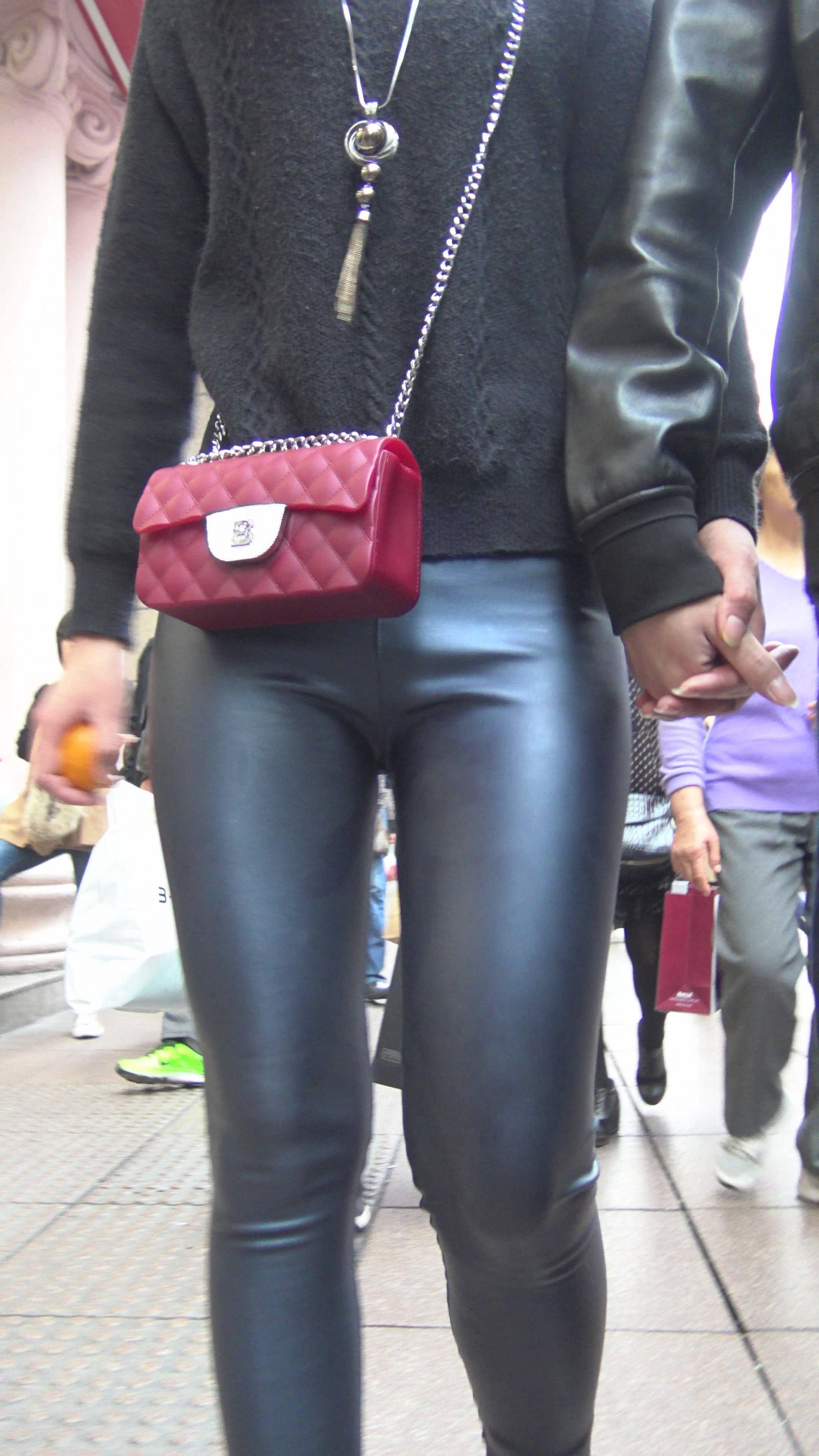 4K - 完美身材街拍皮裤性感美女 2 编号7826