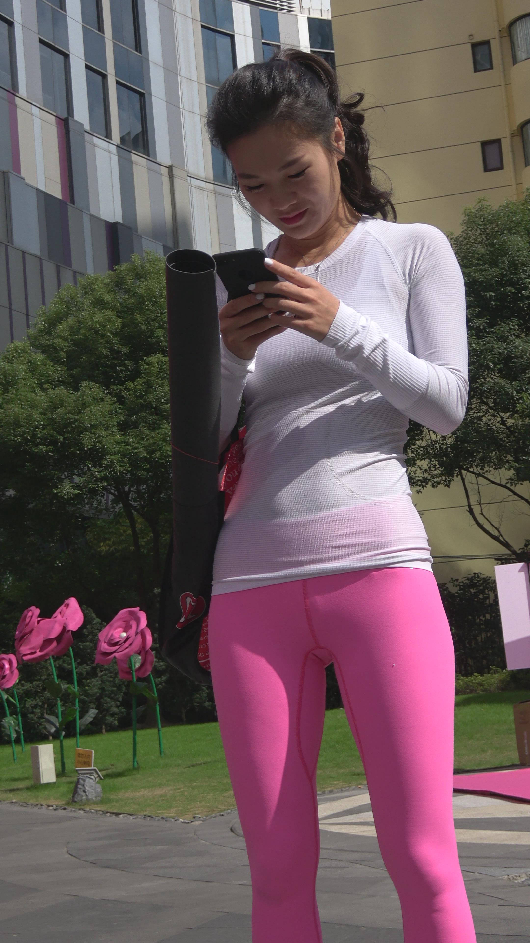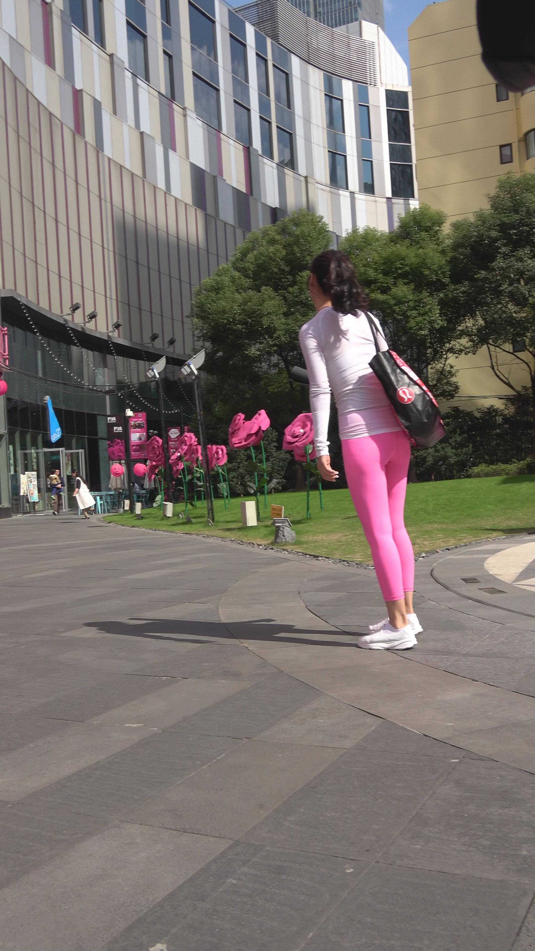 4K - 街拍紧身粉色瑜伽裤性感美女第二季 编号7838