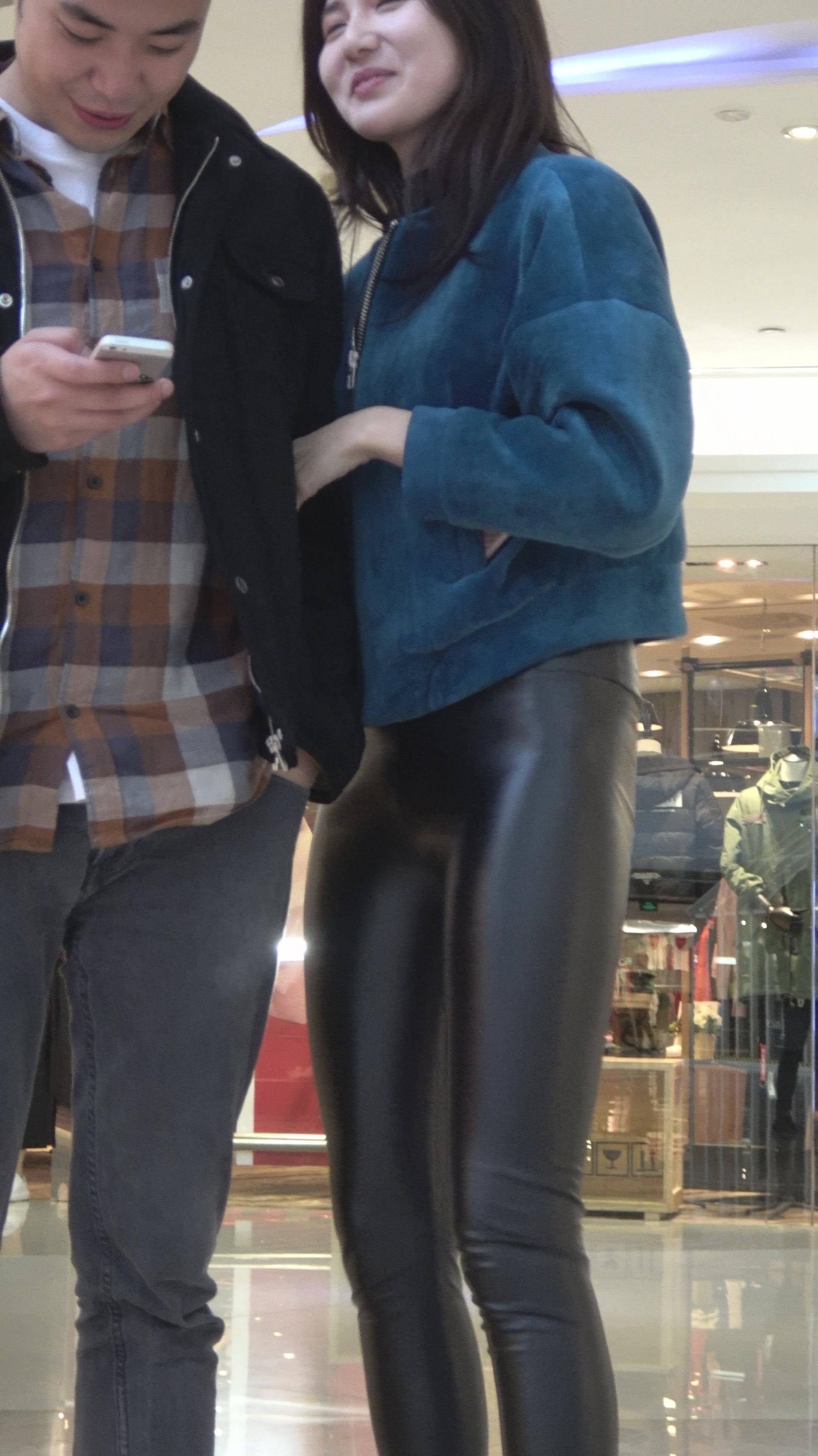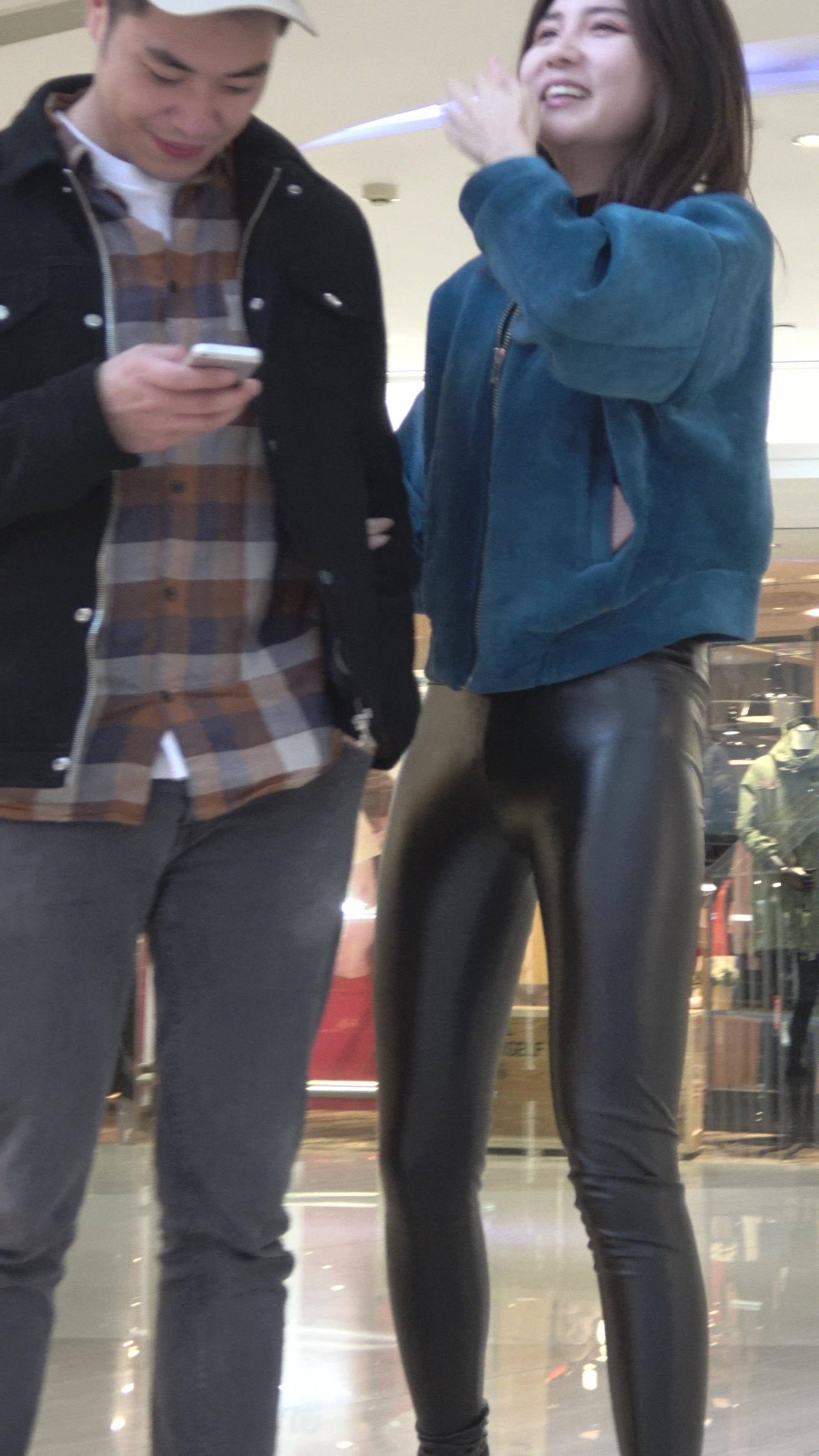 4K - 街拍紧身黑色皮裤性感美女第二季 编号7839