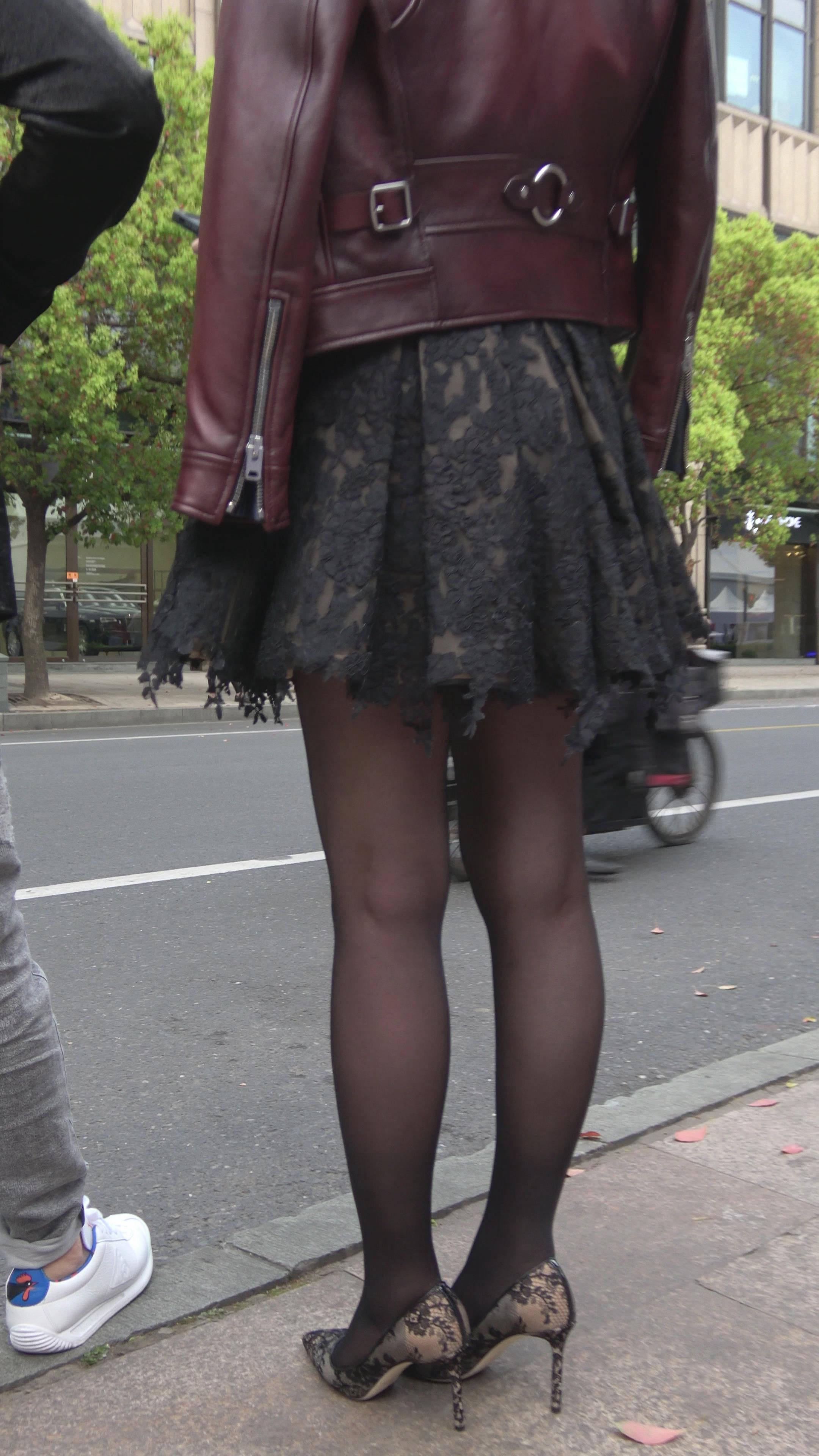 4K - 街拍丝袜高跟鞋性感蕾丝裙大美女 编号7847