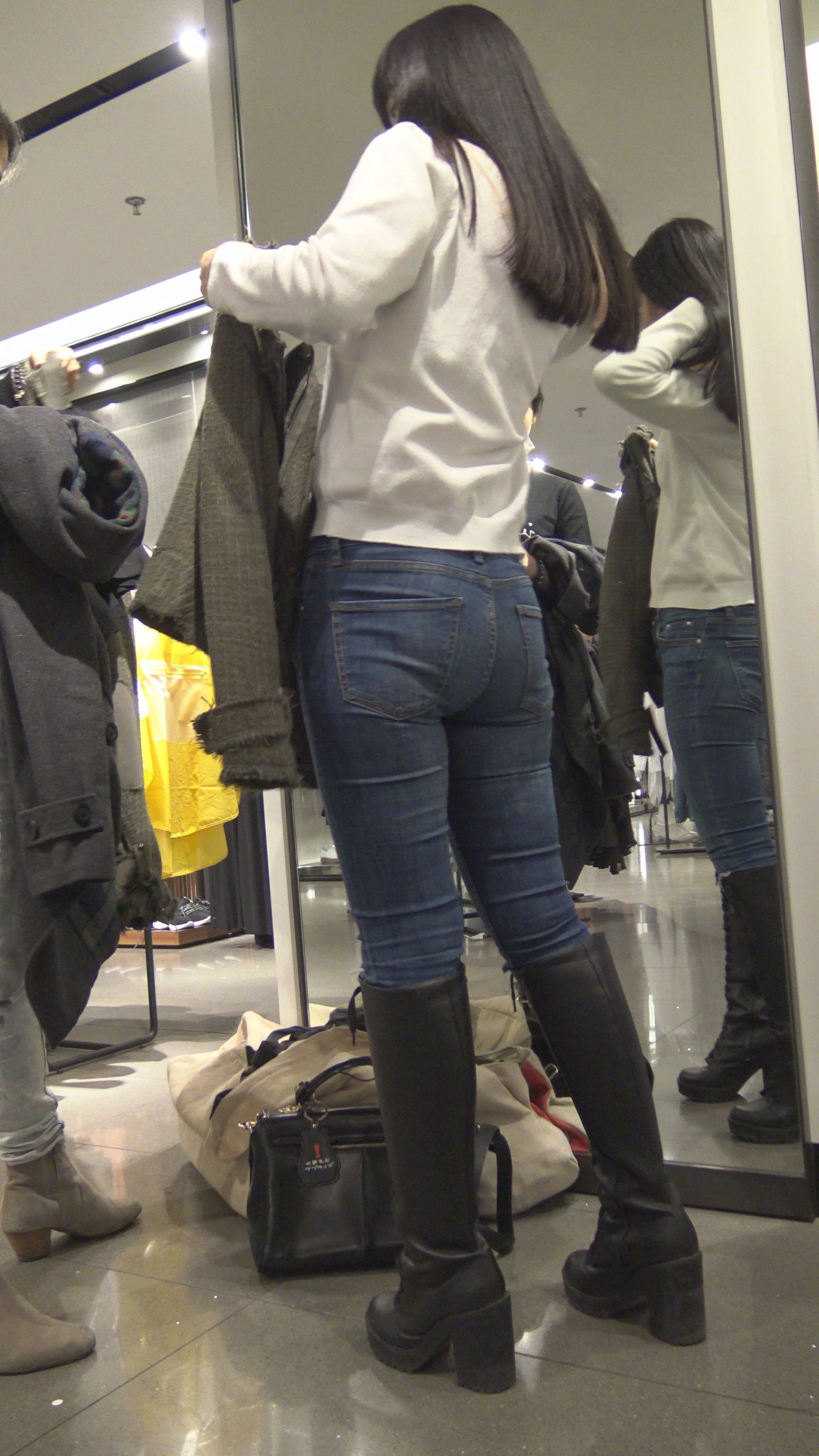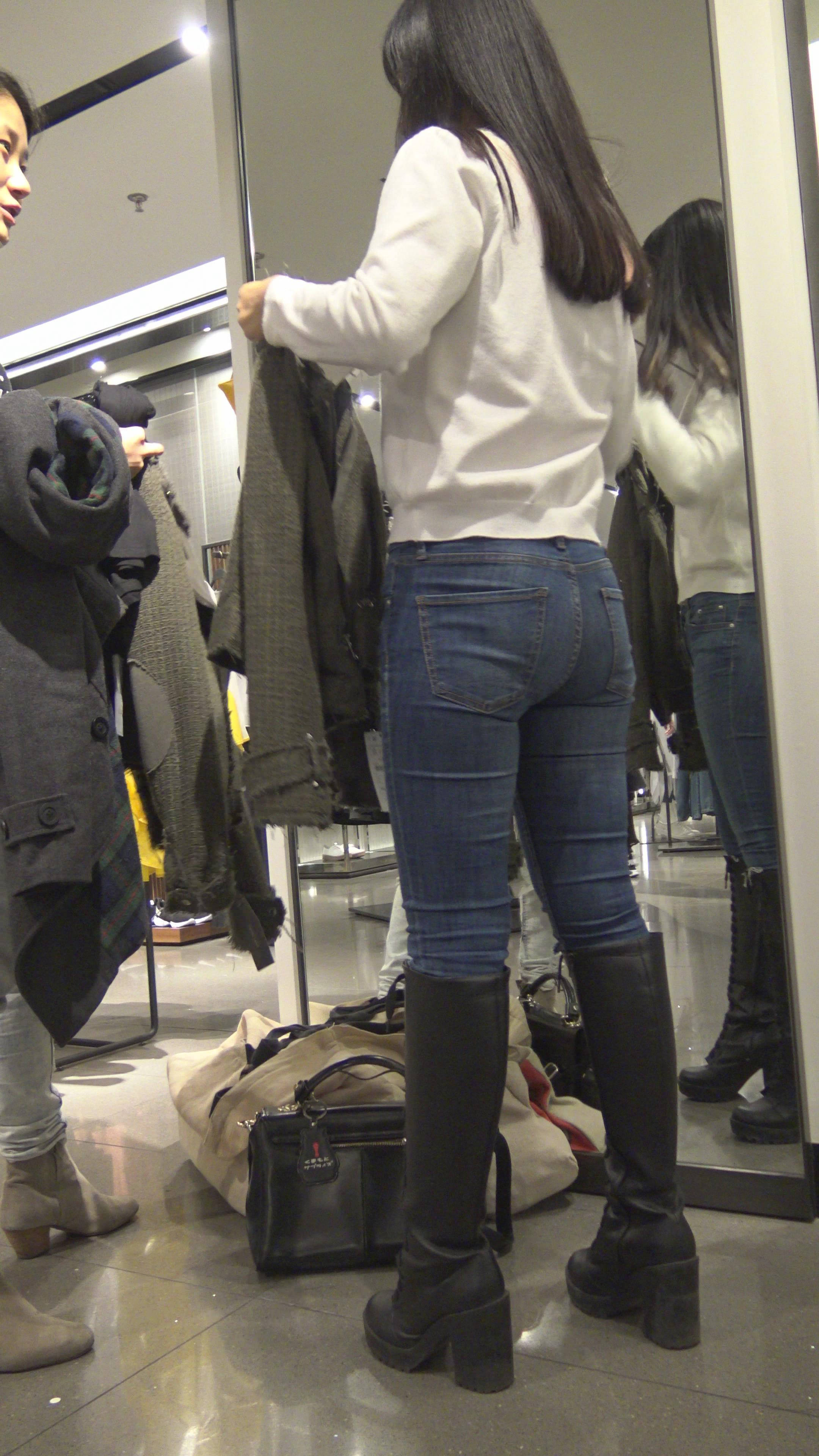 4K - 买衣服的性感街拍紧身牛仔裤美女 编号7850