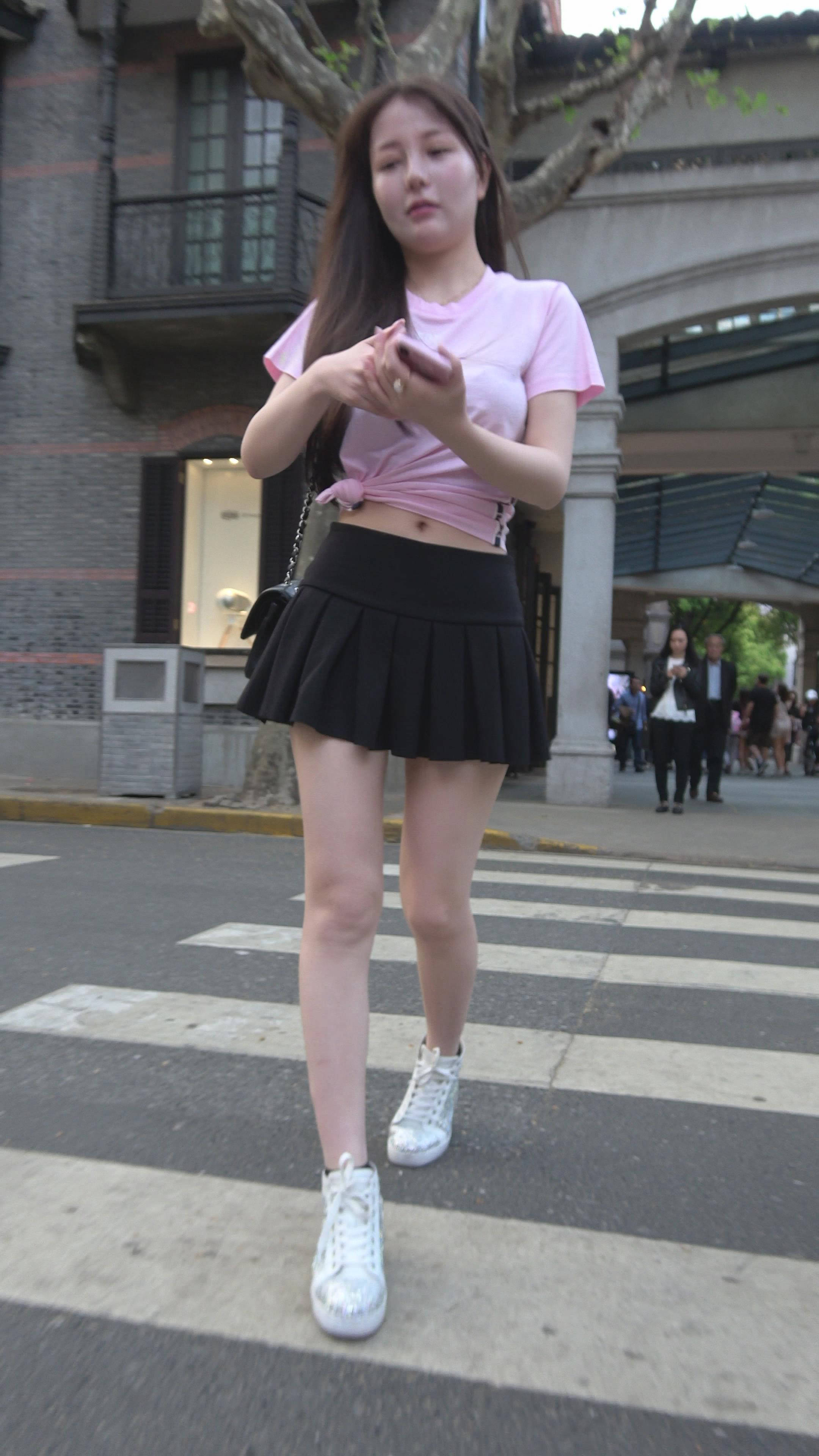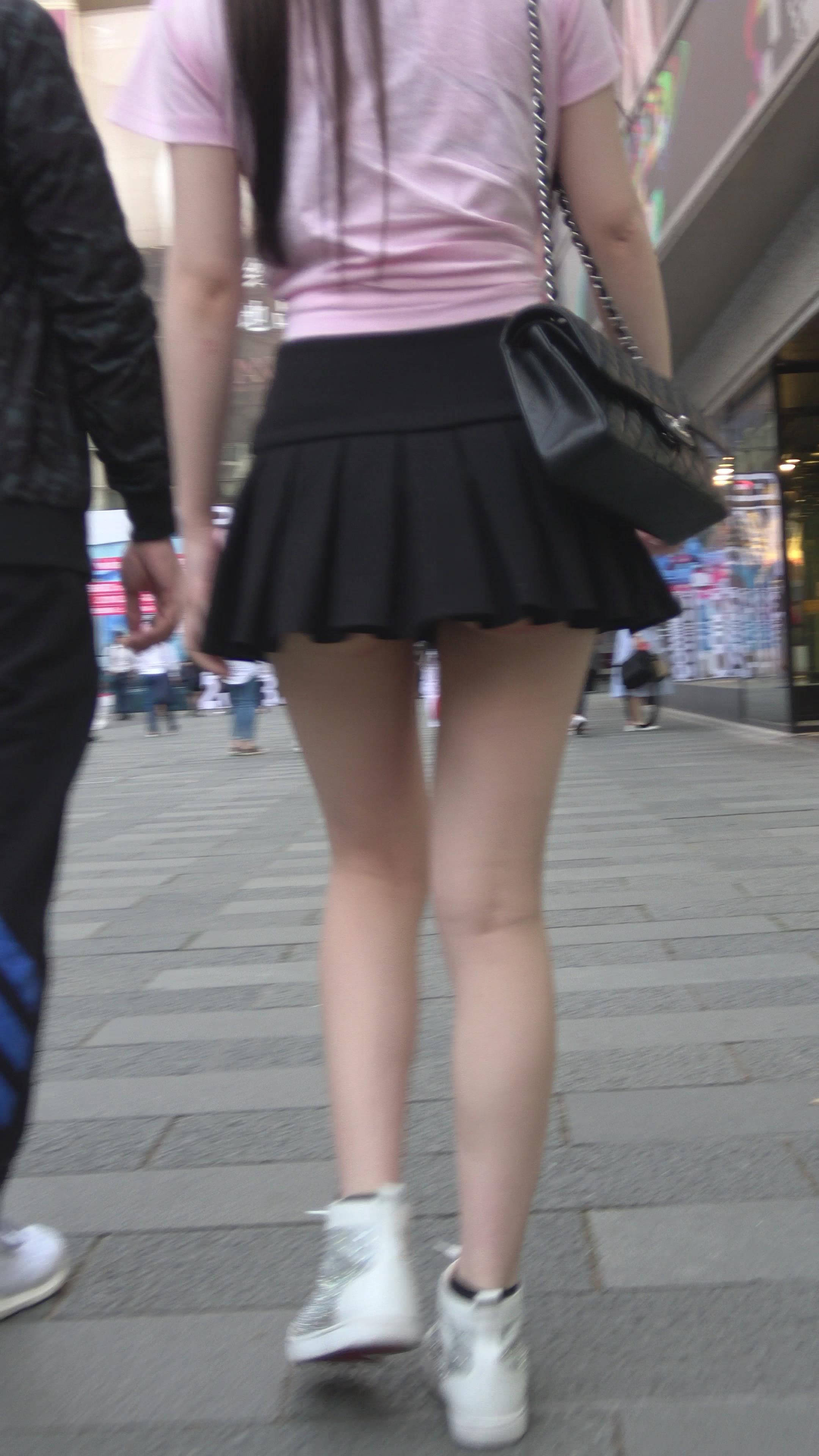 4K - 粉色T恤街拍短裙白皙嫩腿小姐姐 编号7856