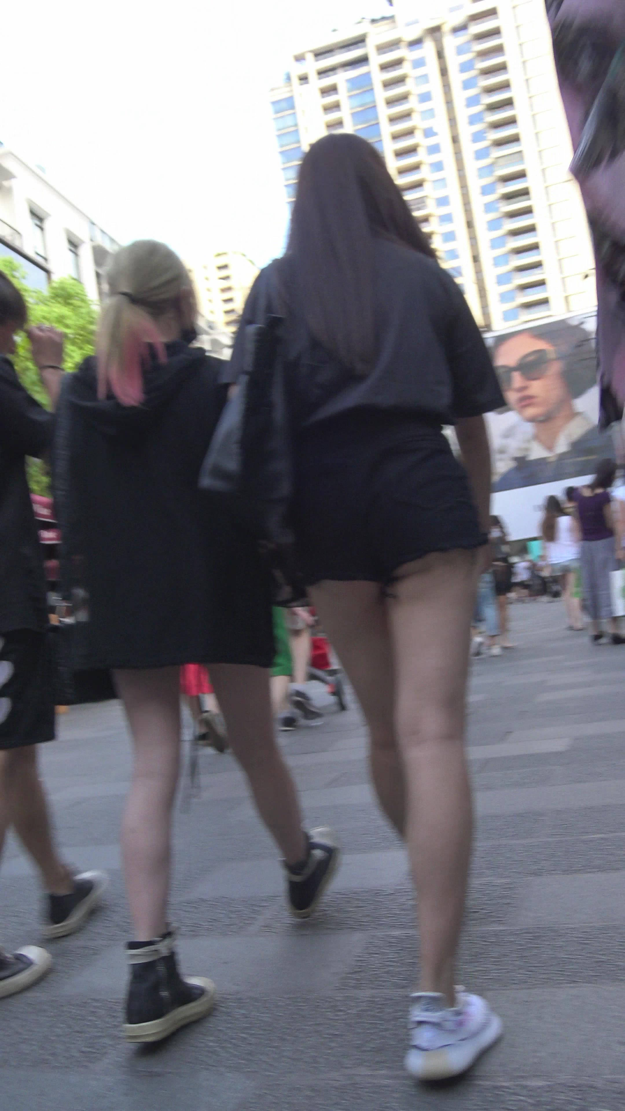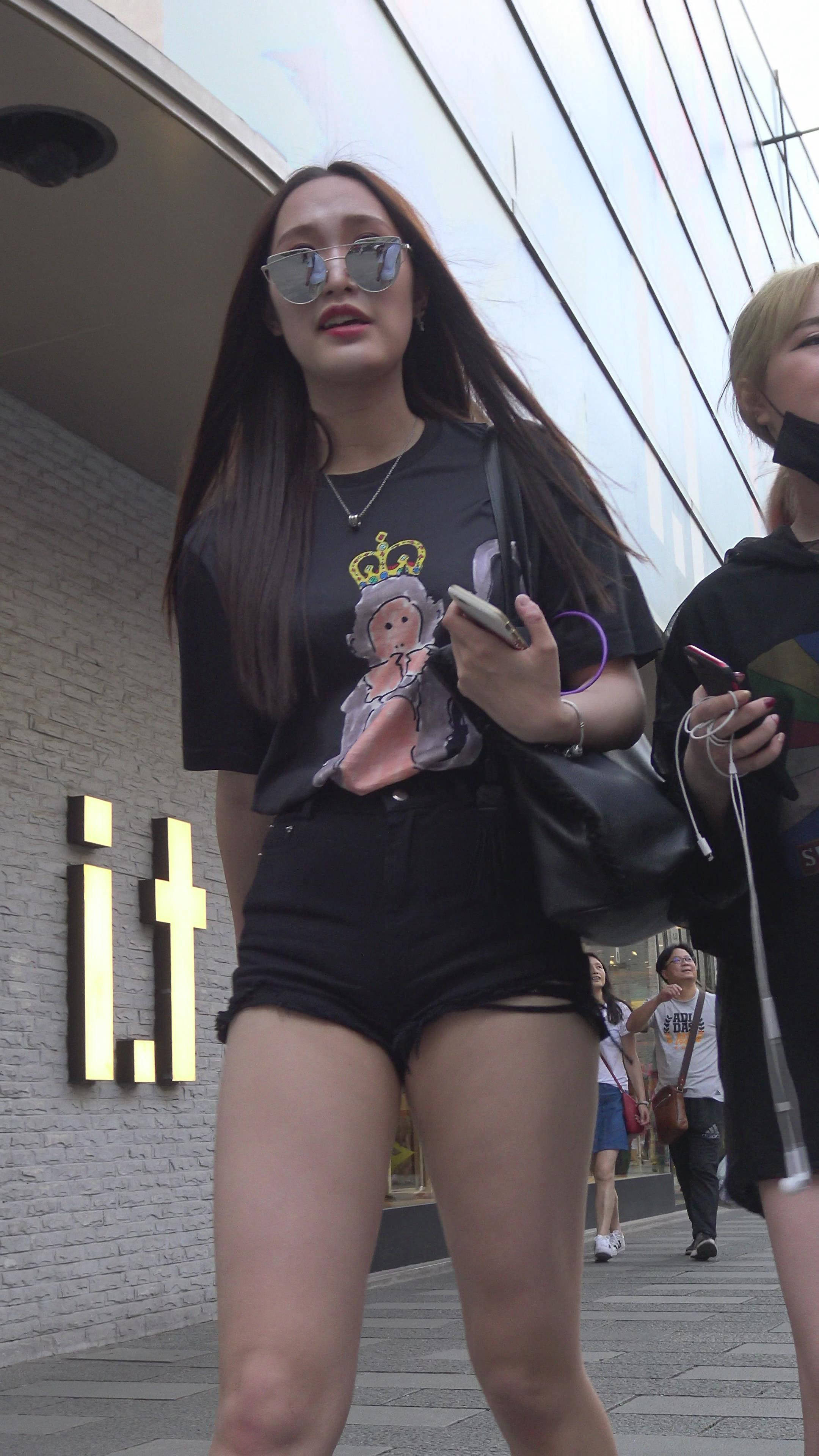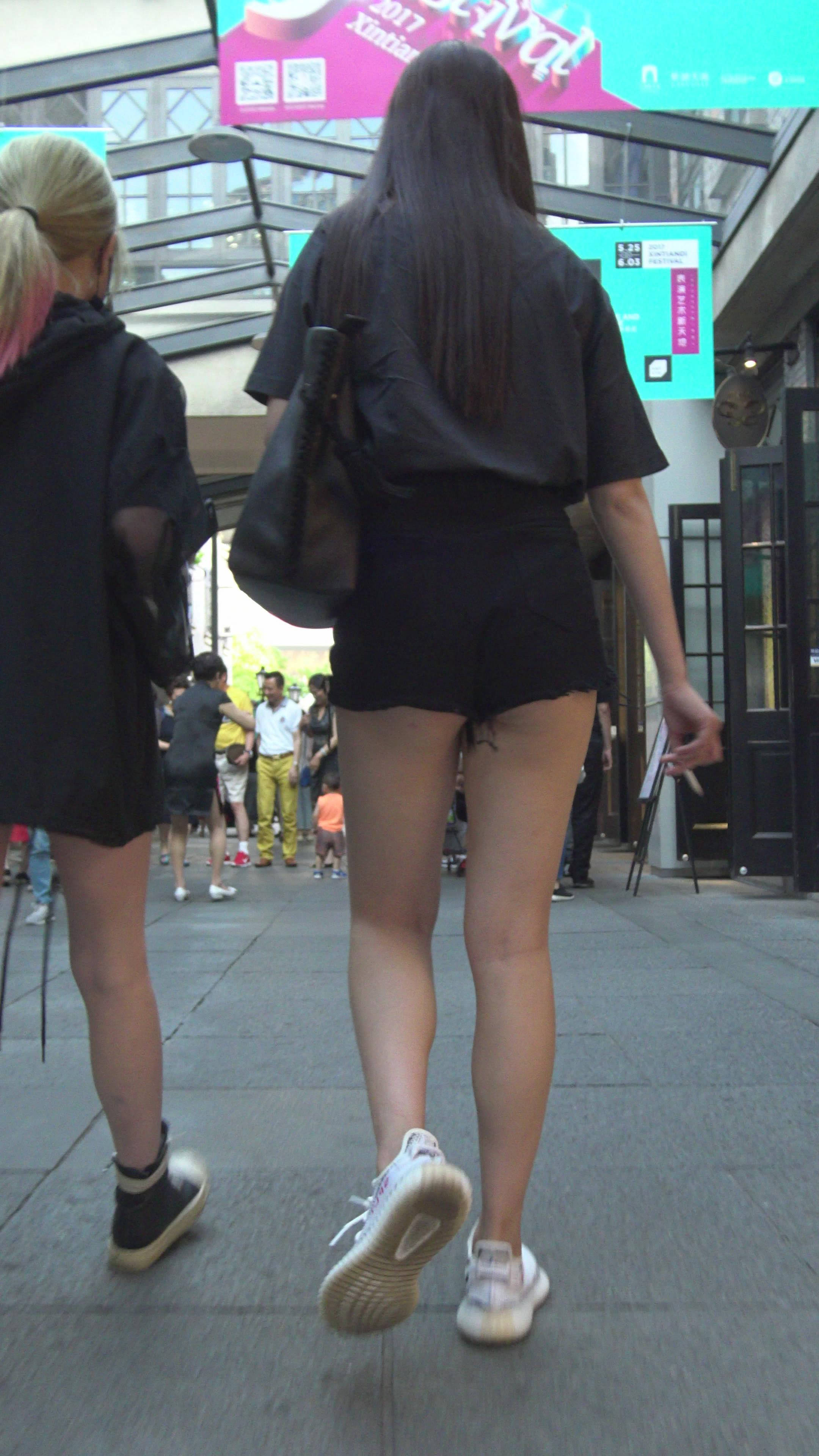 4K - 性感街拍美女的热裤包不住月牙臀 编号7859
