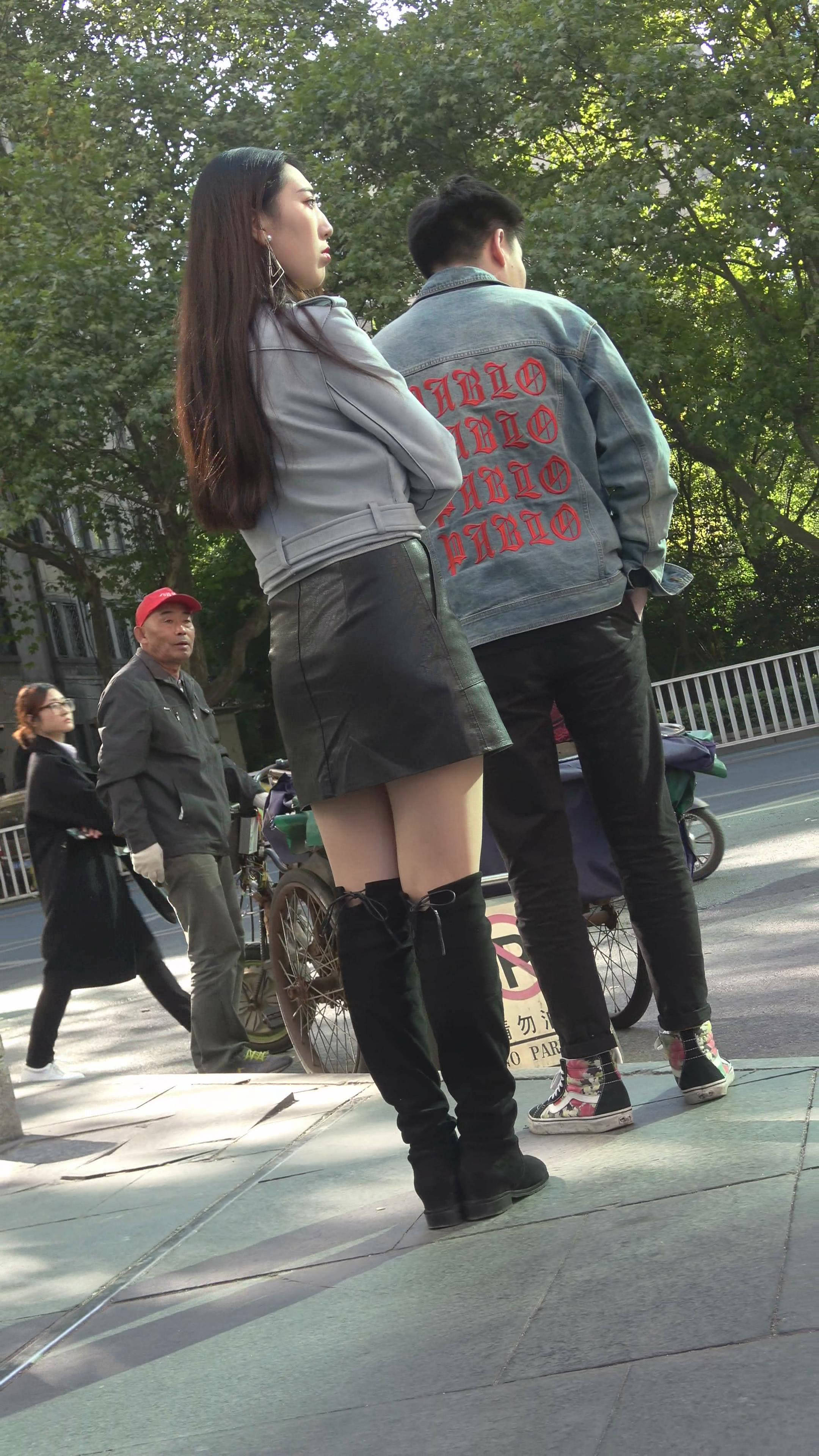 4K 长筒靴街拍性感短裙美腿御姐 编号7879