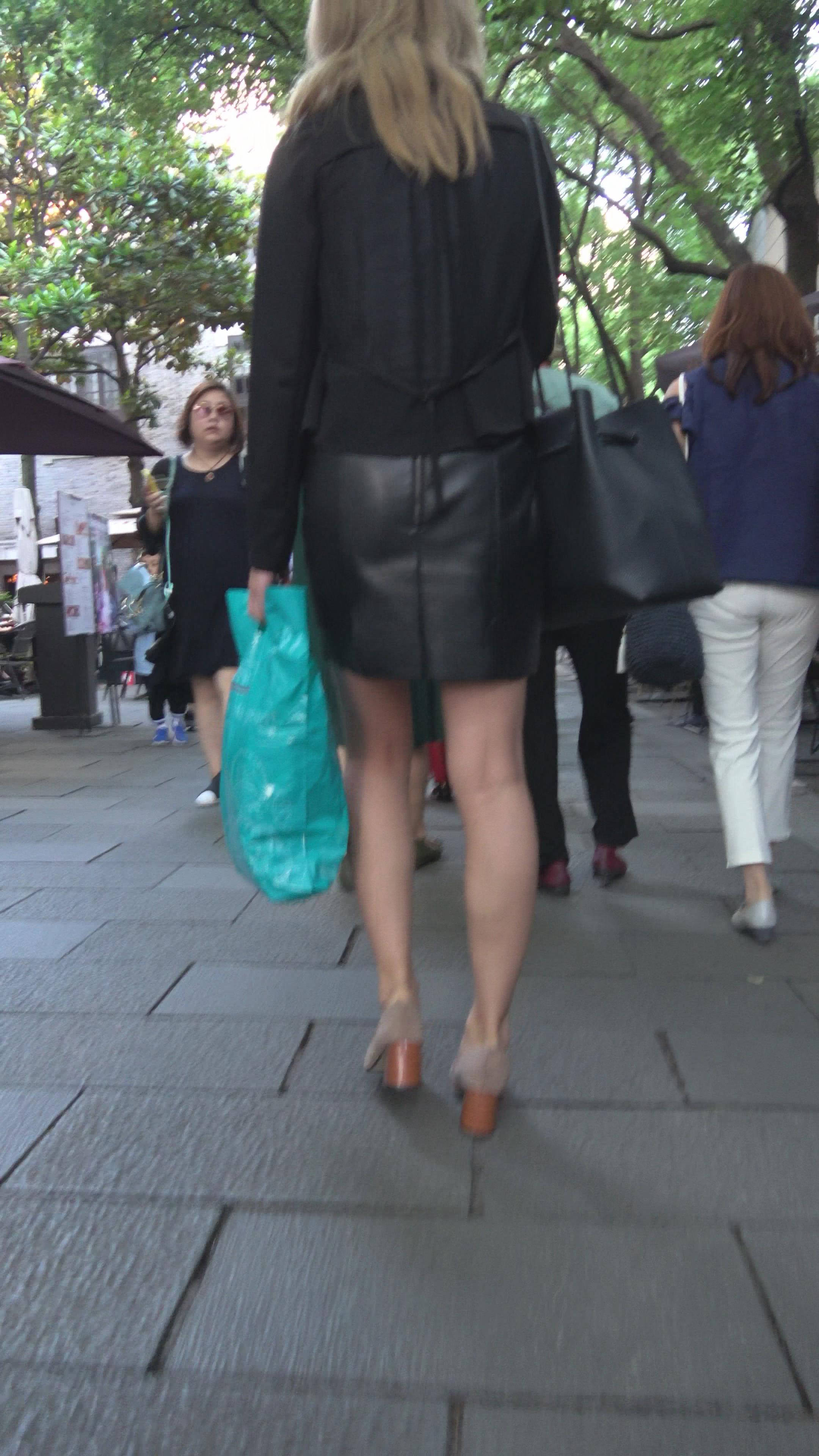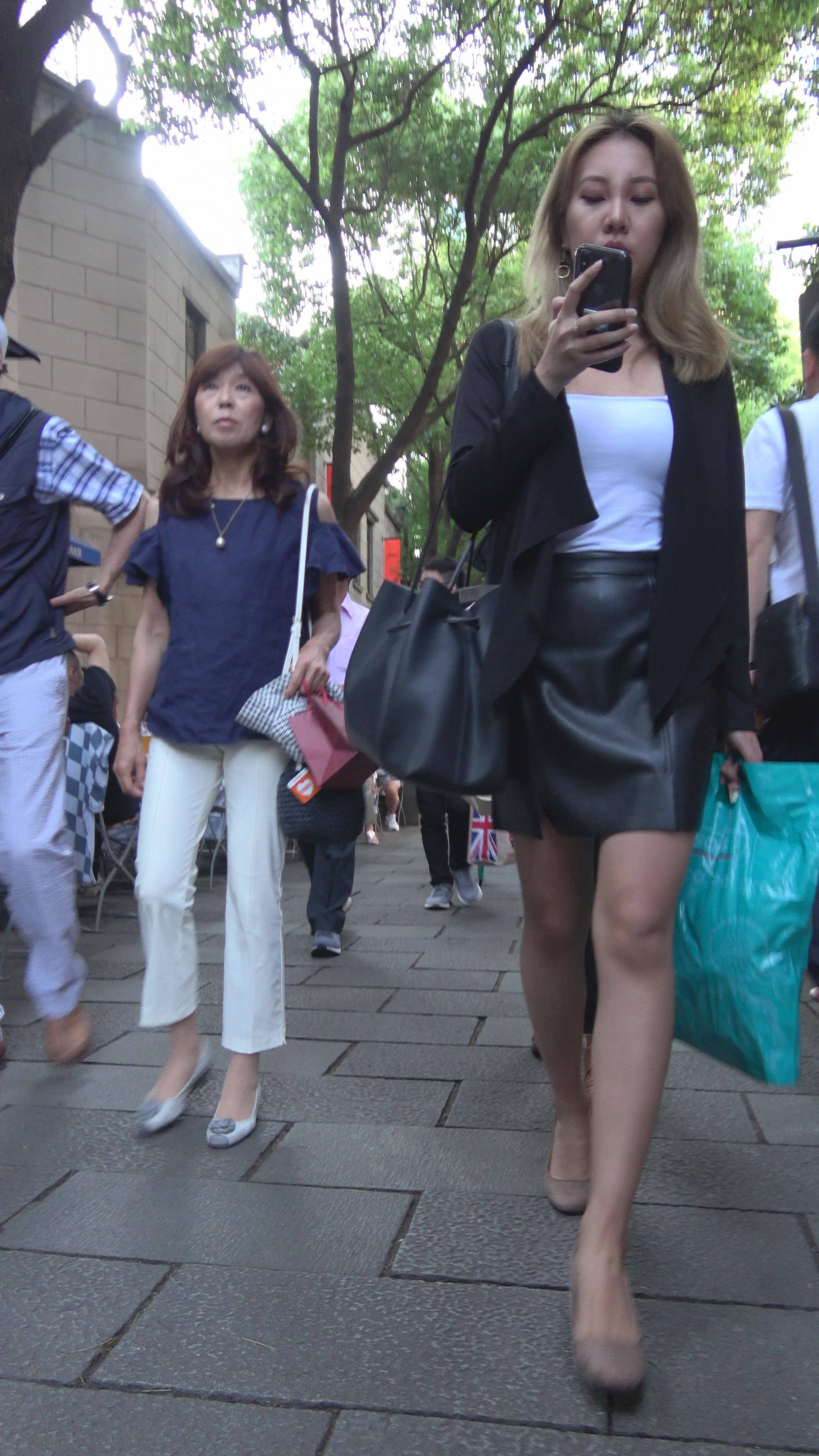 4K 极品性感街拍皮裙美腿美女 编号7888