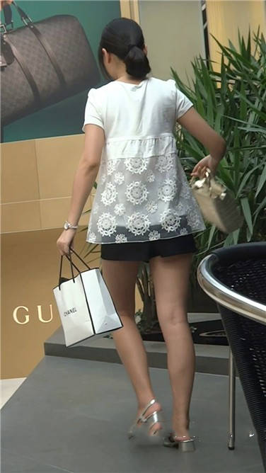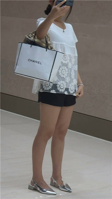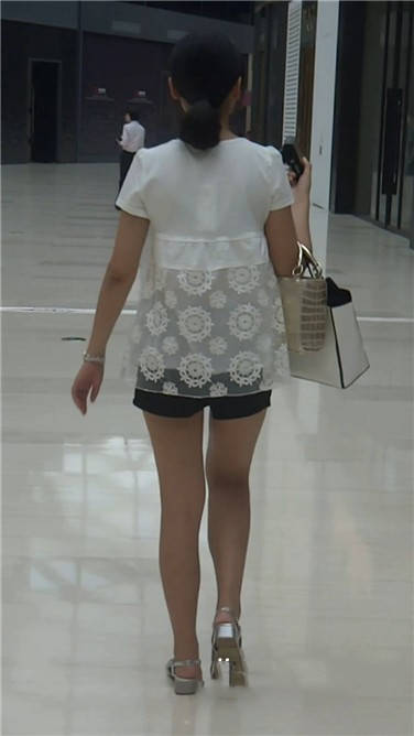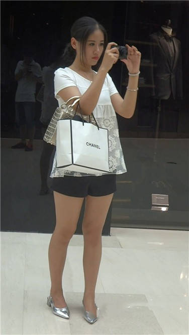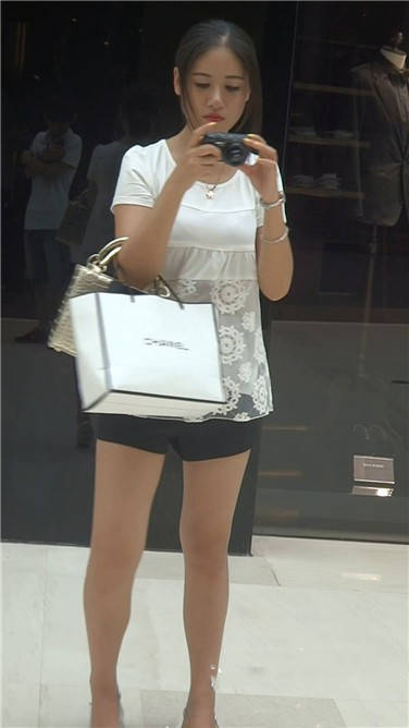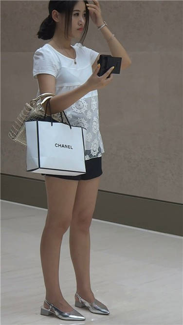 逛街也不忘自拍的美腿银白色高跟鞋美女 编号3723