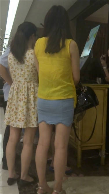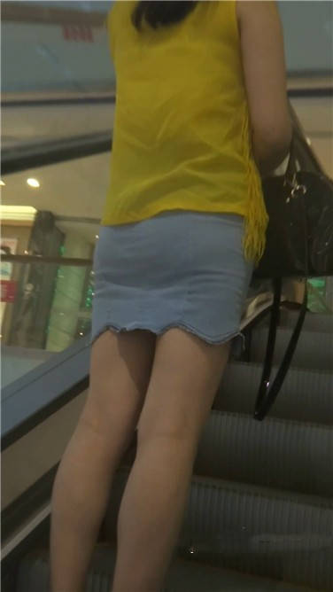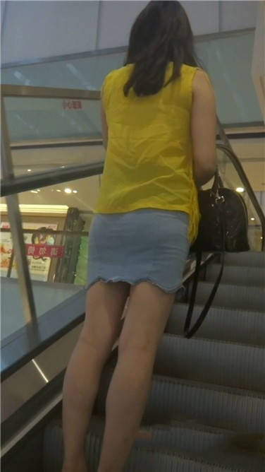 一路跟拍牛仔包臀裙黄衣美眉 编号3737