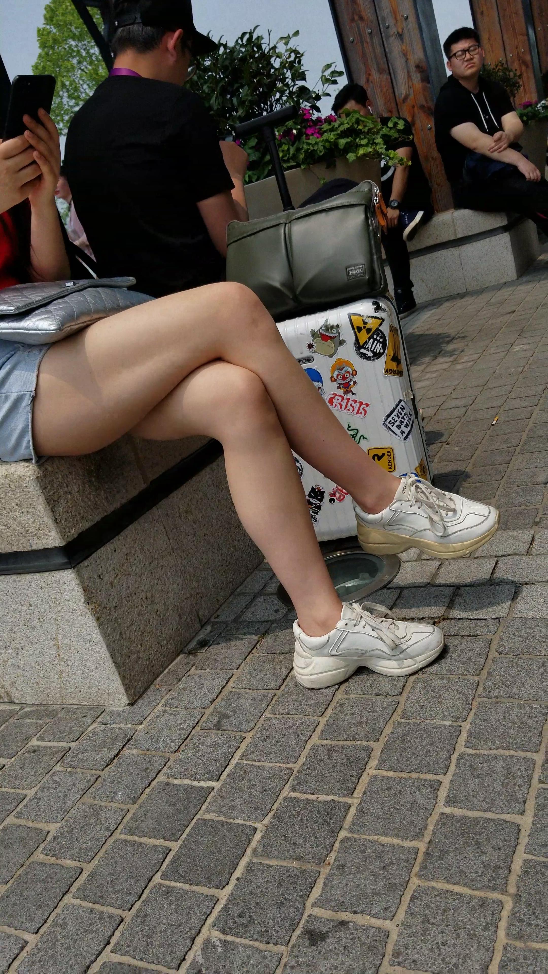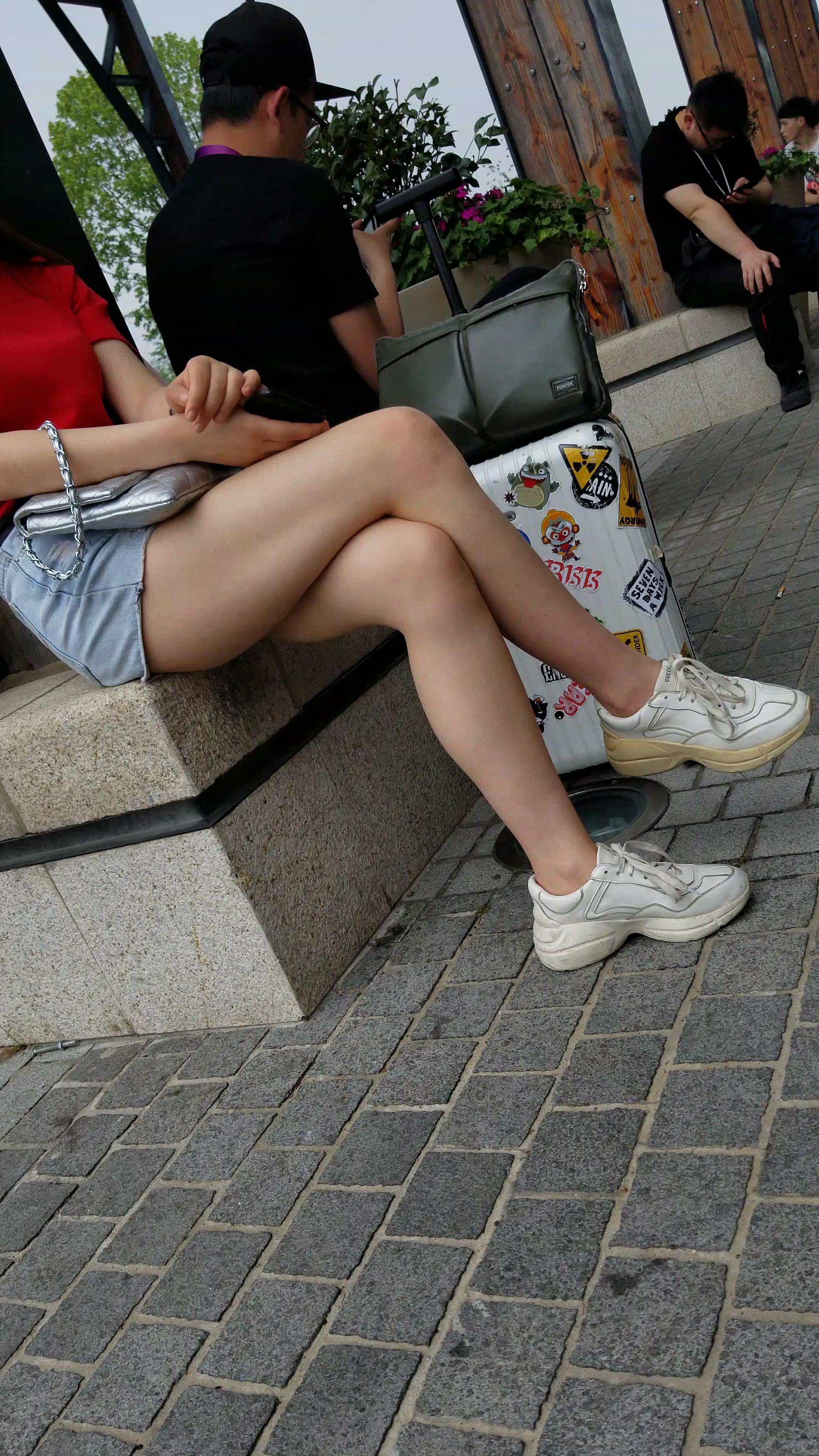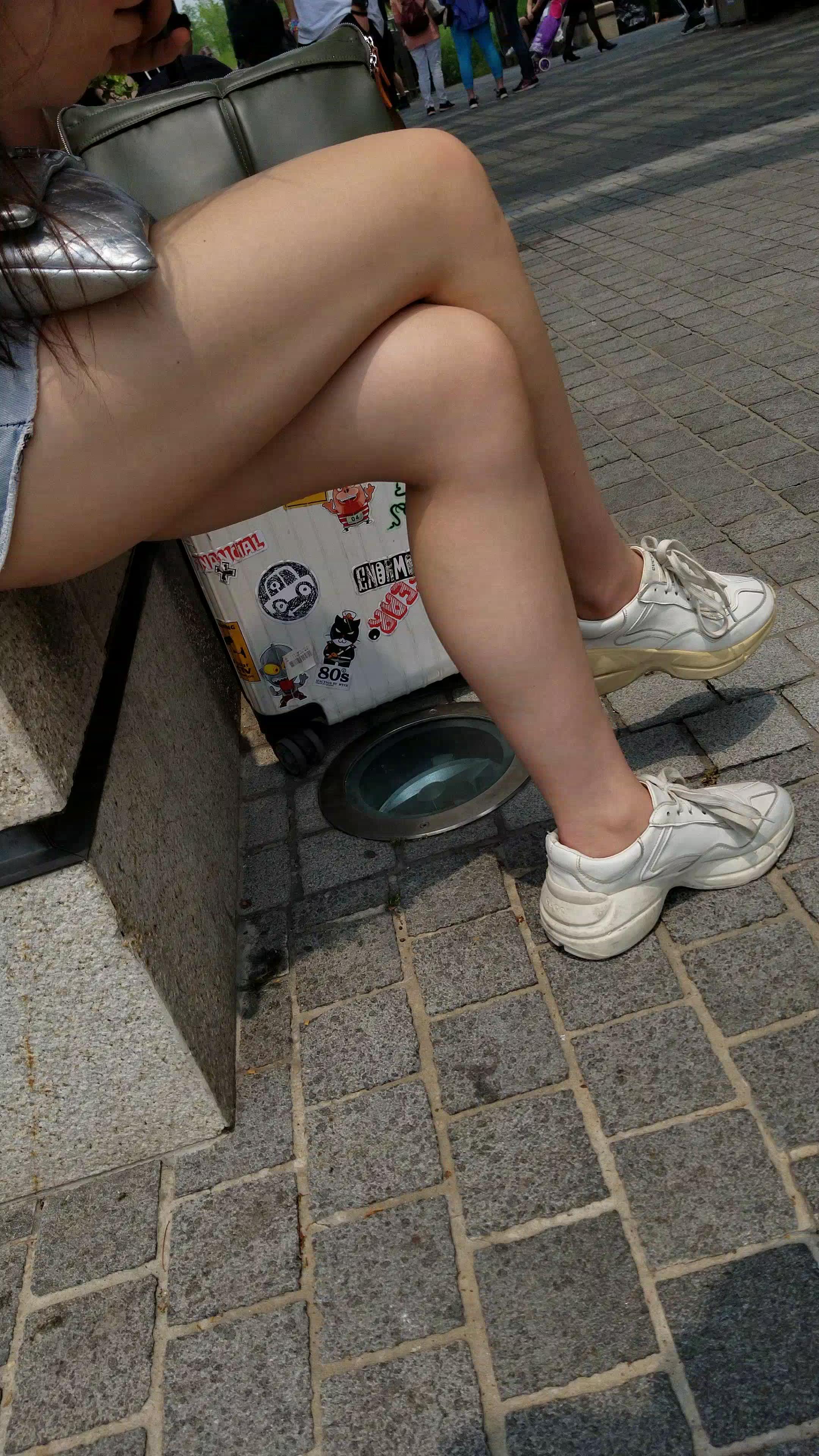 红T恤牛仔热裤白皙美腿小姐姐美若天仙 编号5191
