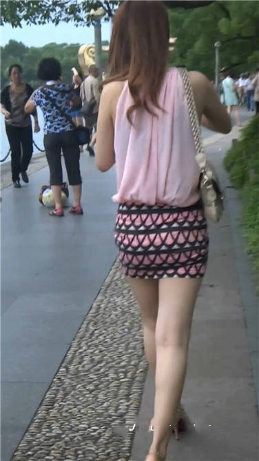 街拍极品包臀裙粉色高跟鞋美女,太诱惑了! 编号3811