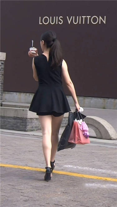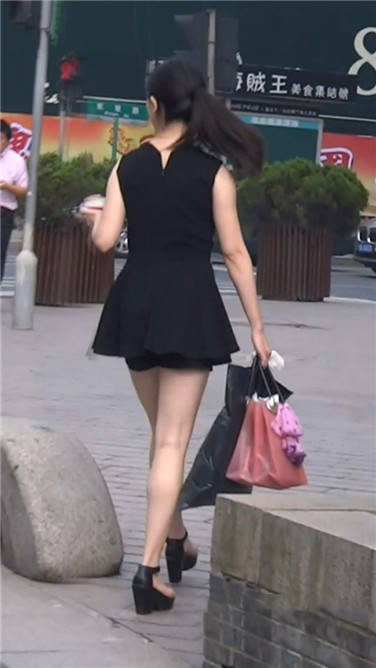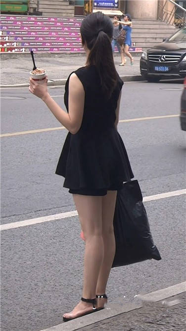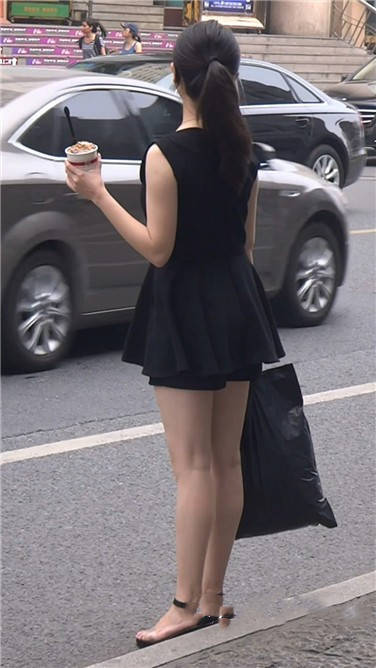 街拍黑色连衣裙小姐姐路边等车 编号3822