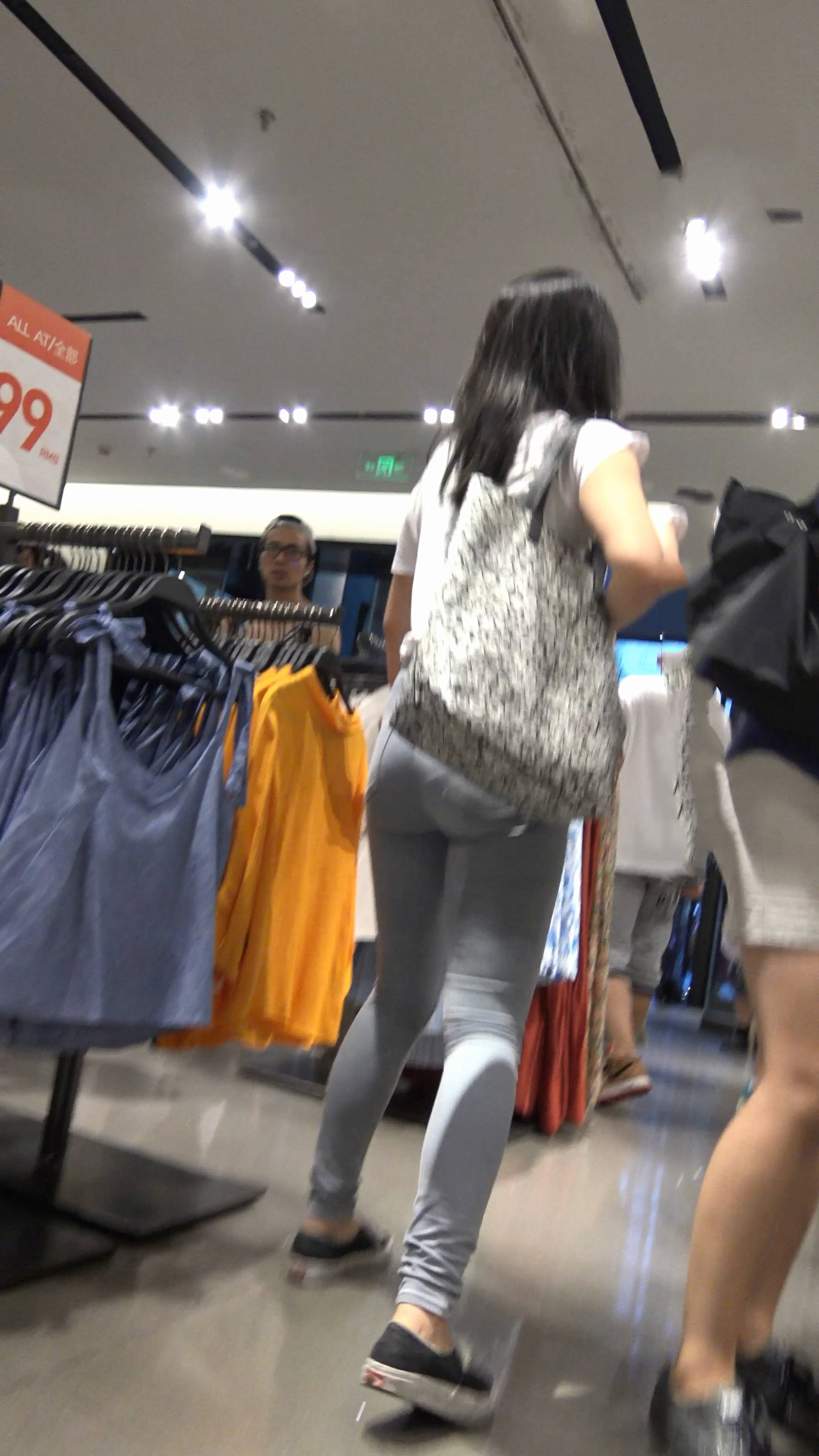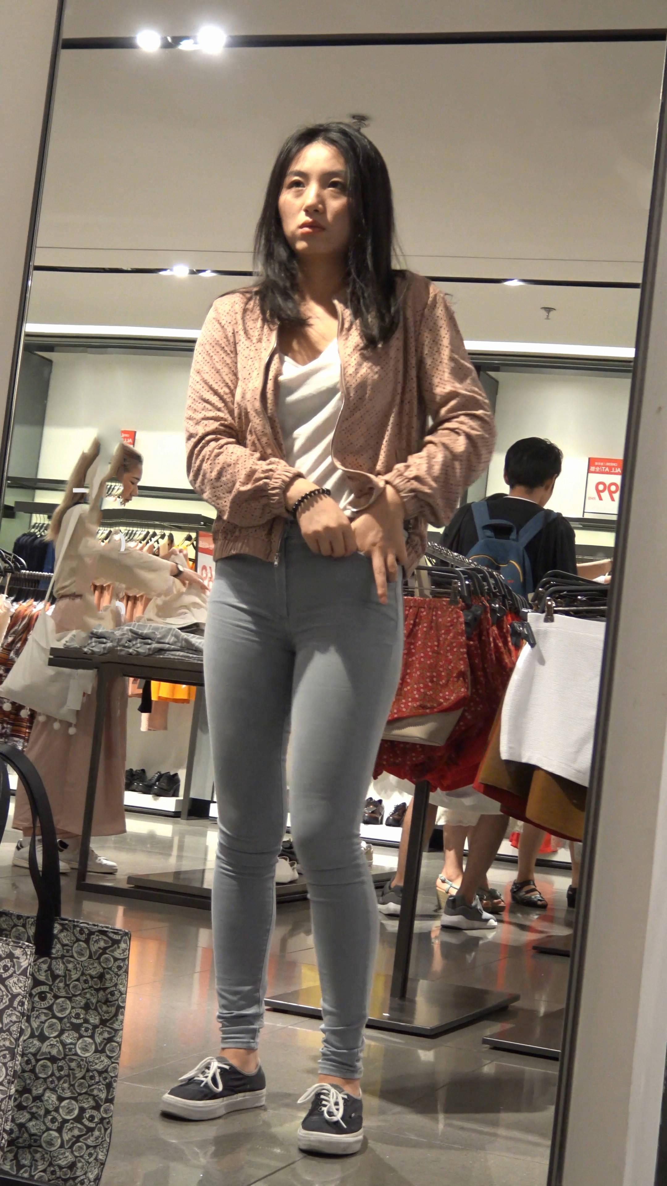 4k-紧身蓝牛清纯美女对选哪件衣服犹豫不决 编号7940