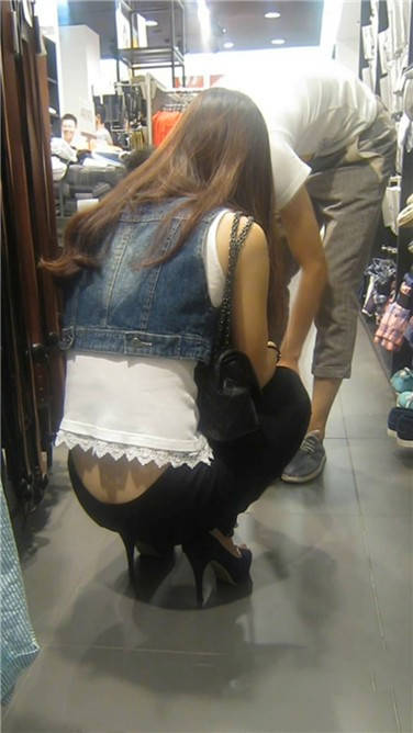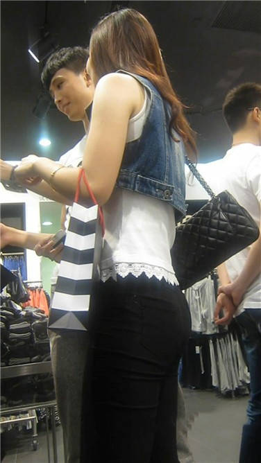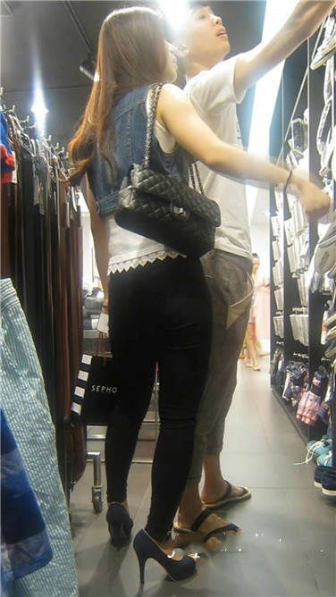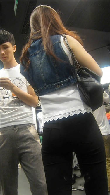 街拍高挑紧身蓝牛性感高跟鞋美眉 编号3865