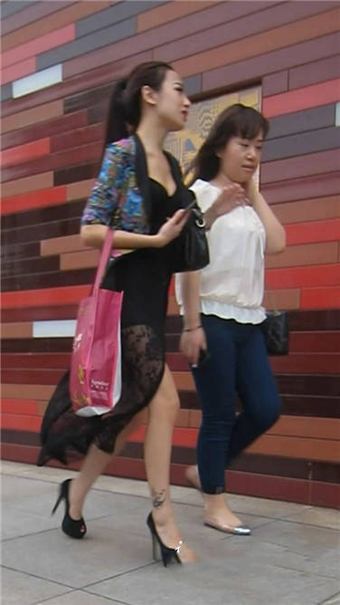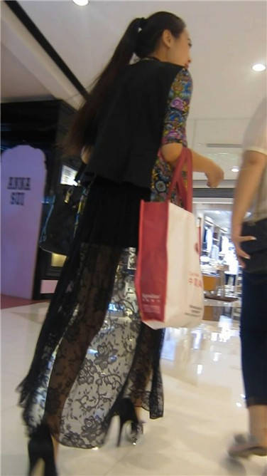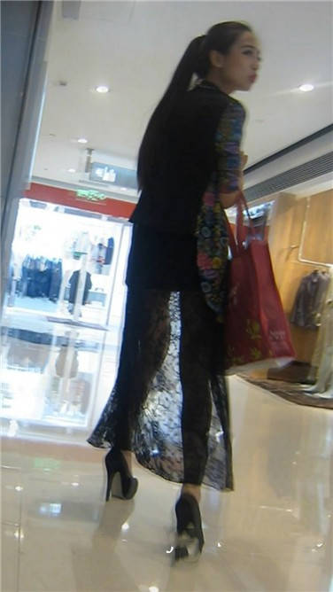 街拍黑色长裙高跟性感美女姐姐 编号3867