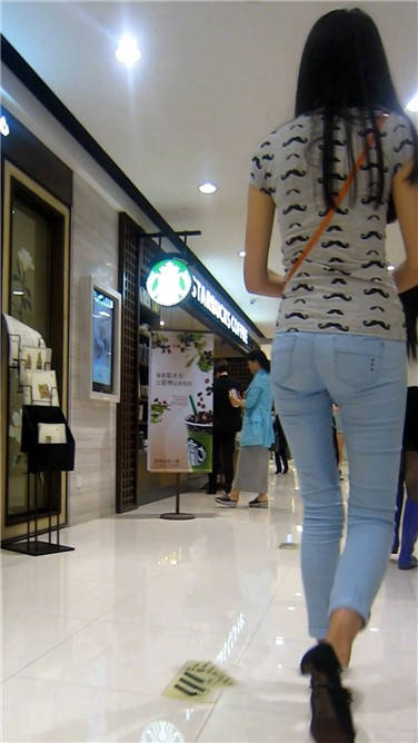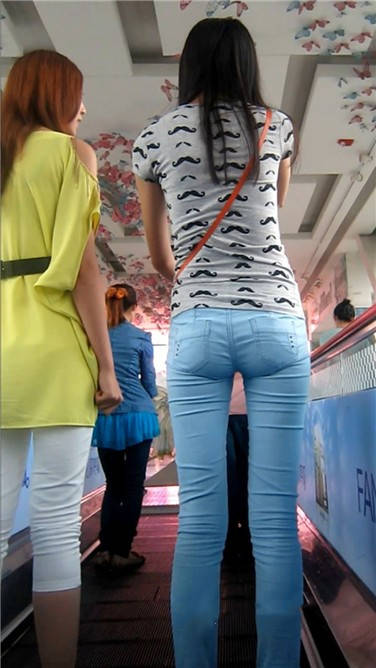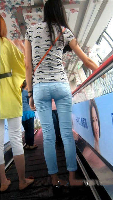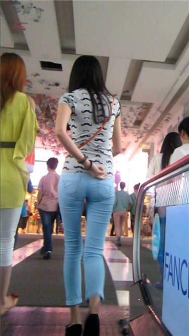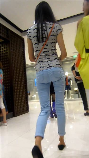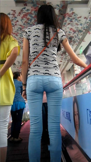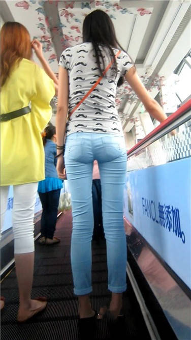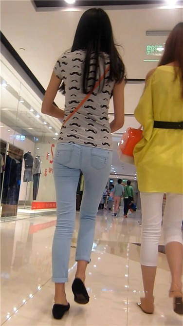 街拍苗条身材紧身蓝牛小清新美女 编号3880