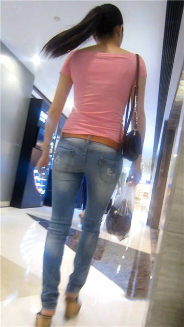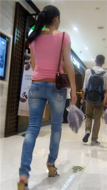 街拍极品紧身蓝牛圆臀性感少妇 编号3892