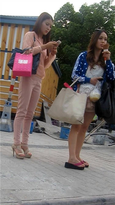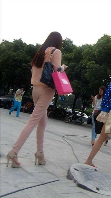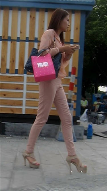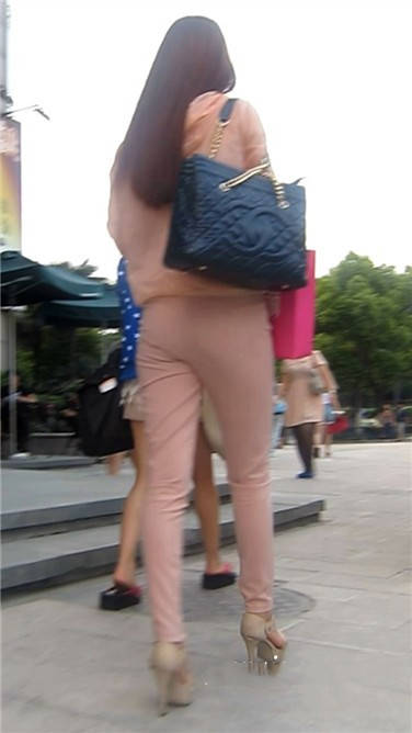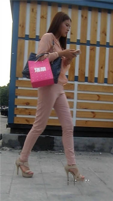 街拍粉衣高跟鞋清秀美女小姐姐 编号3897