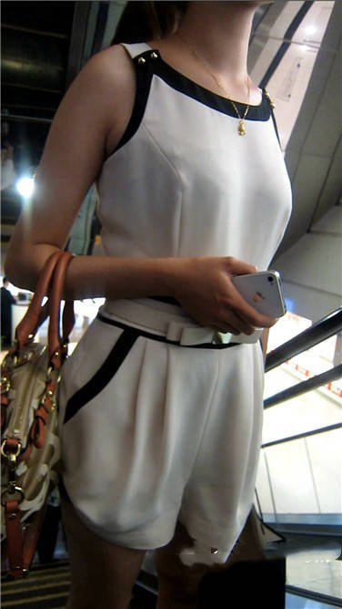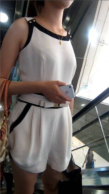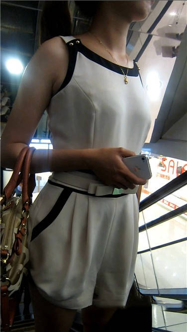 街拍洁白连衣裙丰满少妇美女逛商场 编号3903
