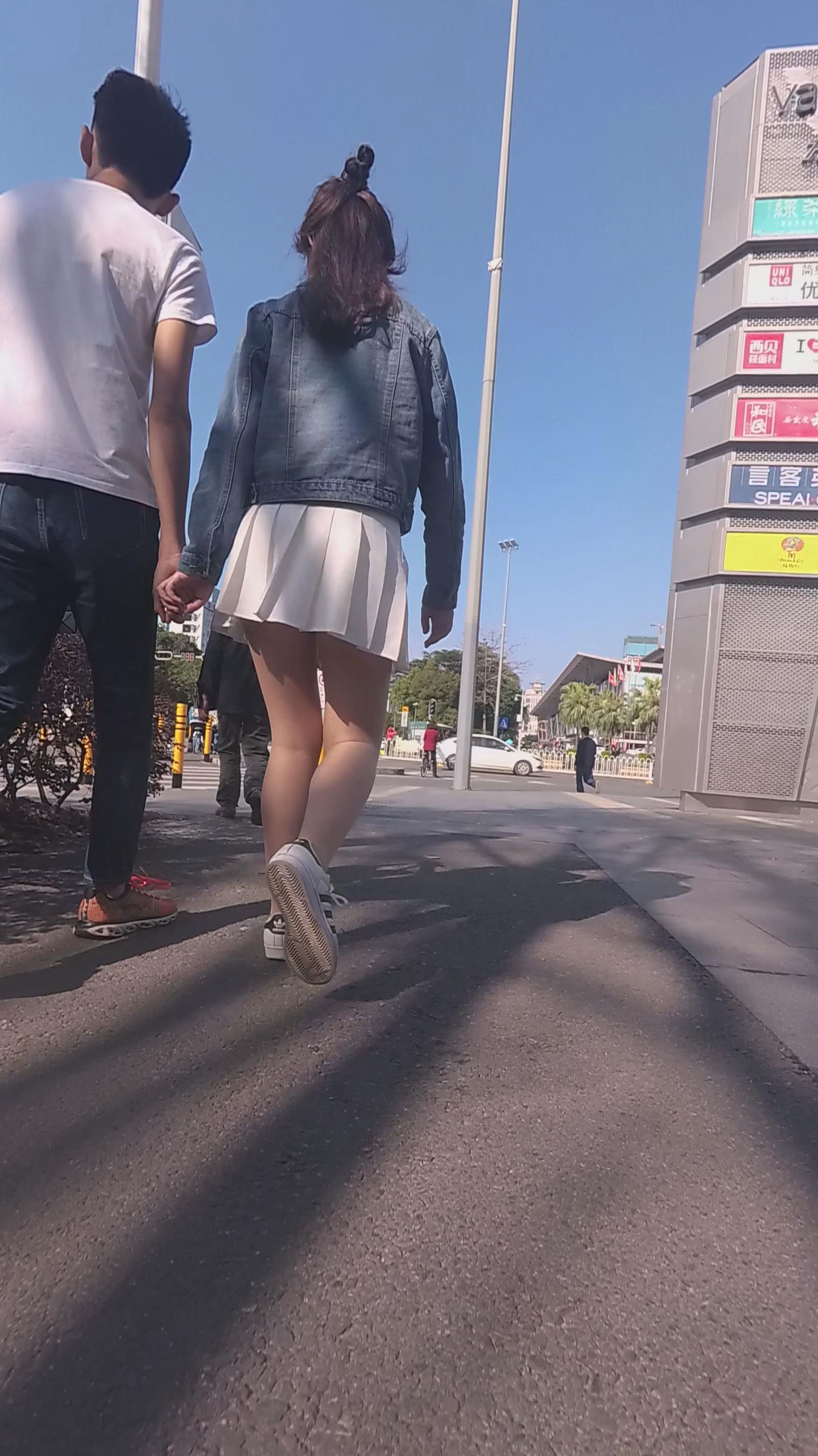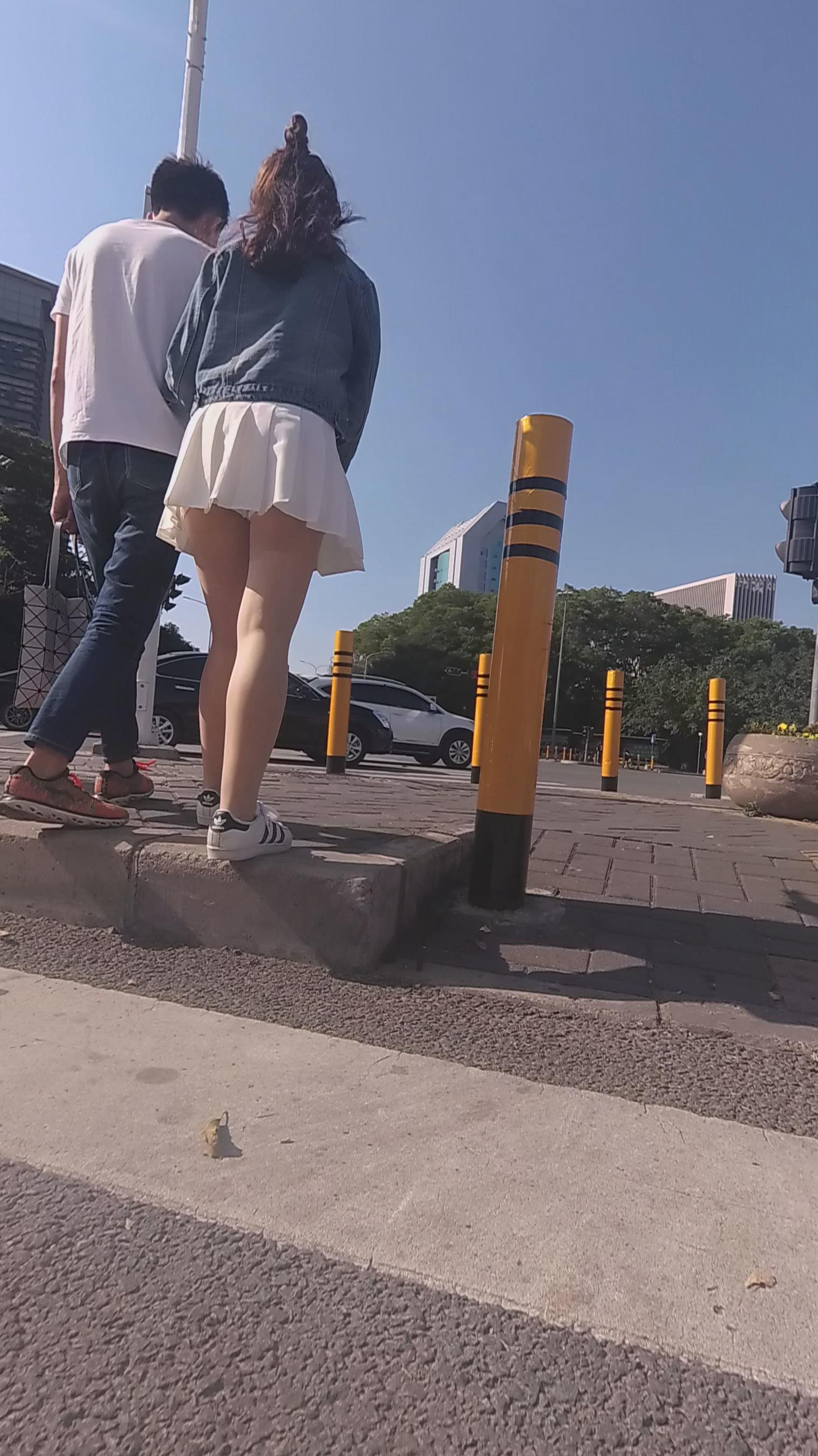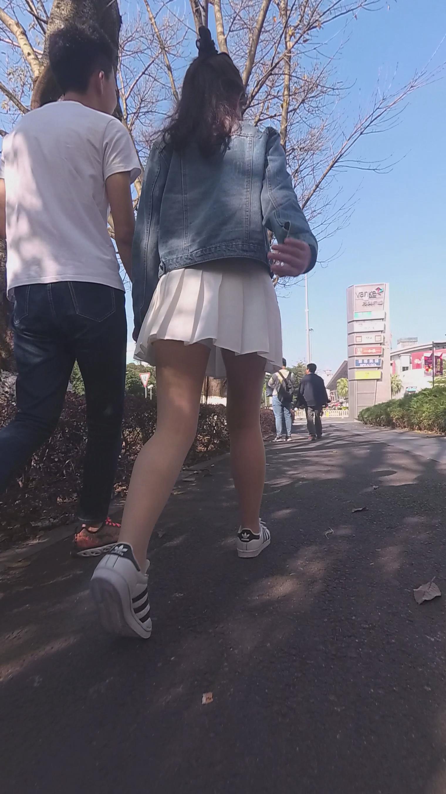 白色小短裙街拍丝袜美少女编号3907