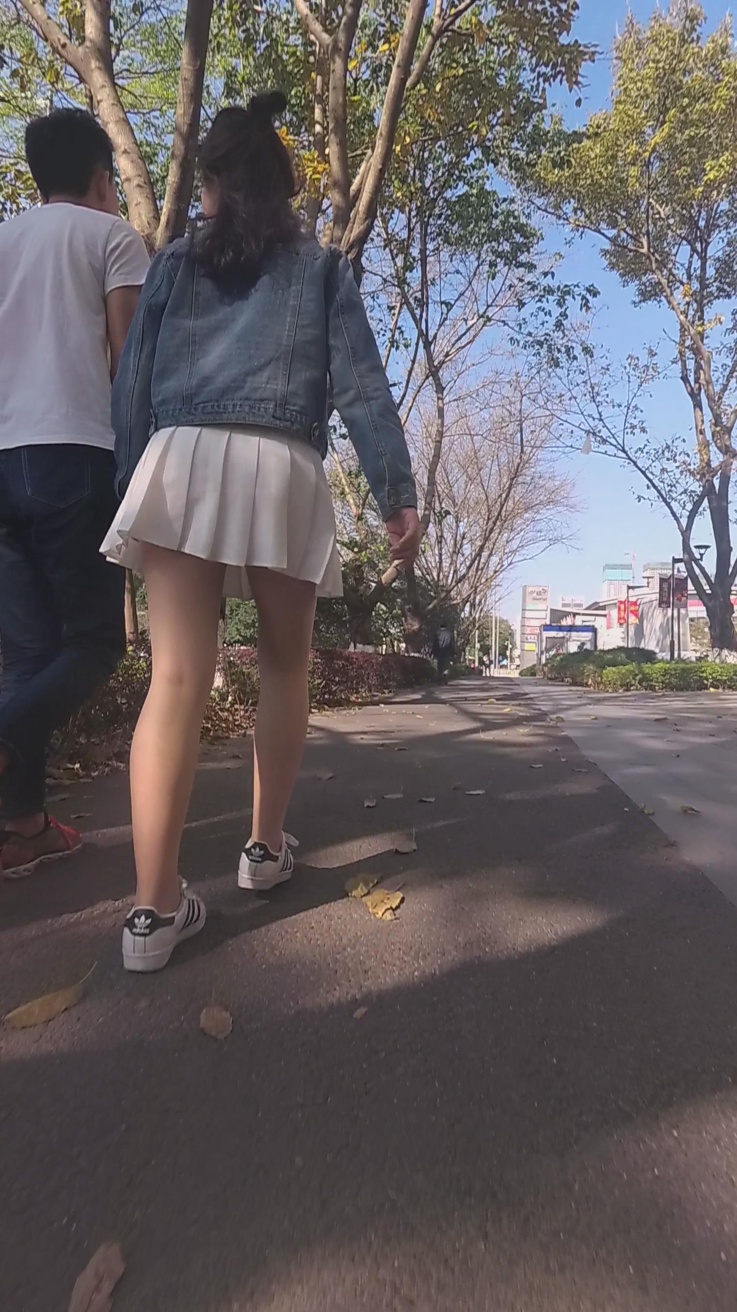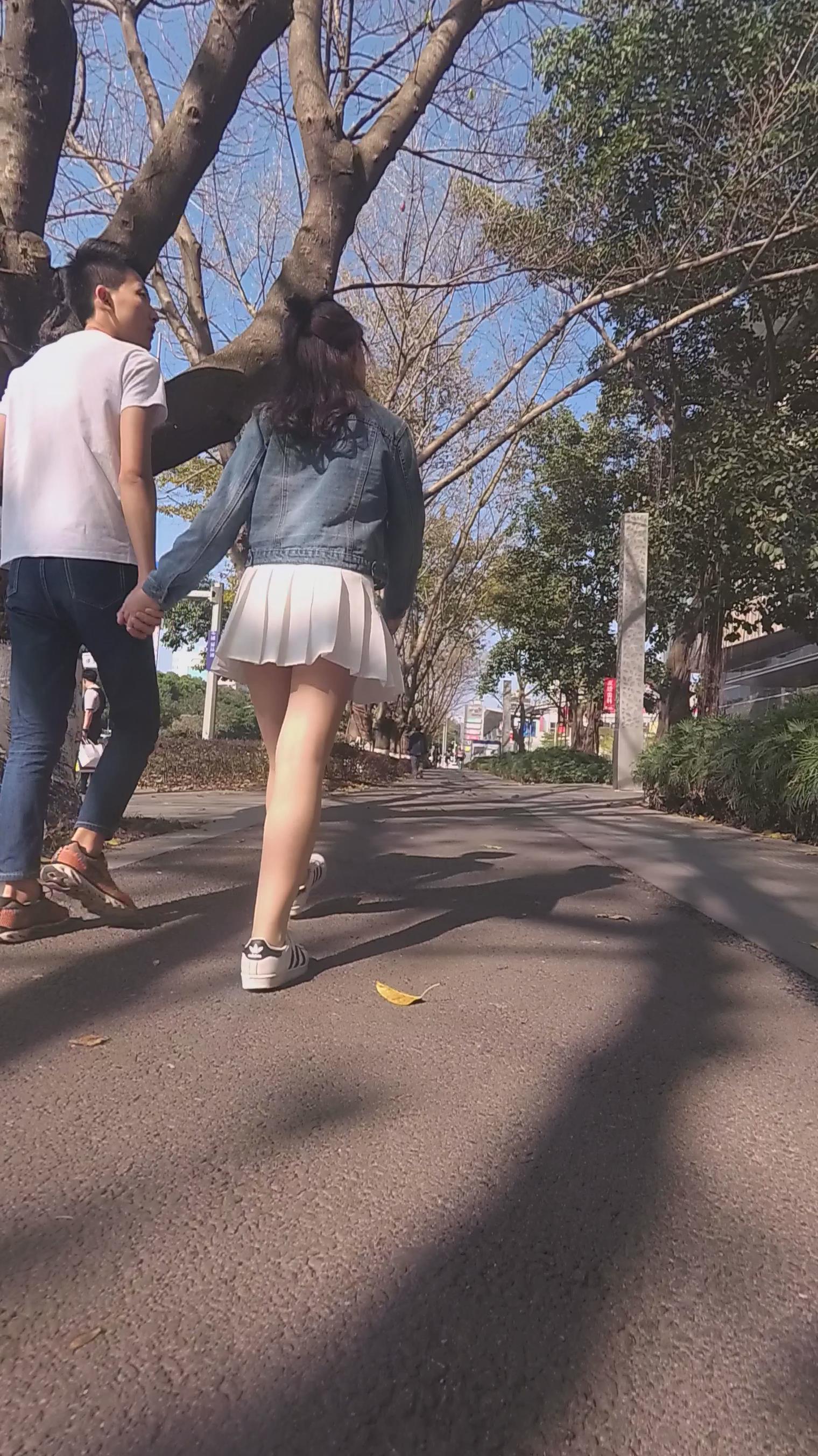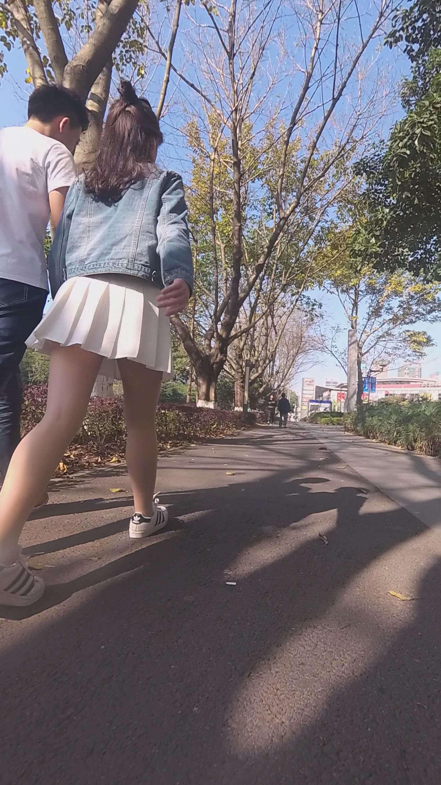 白色小短裙街拍丝袜美少女编号3907