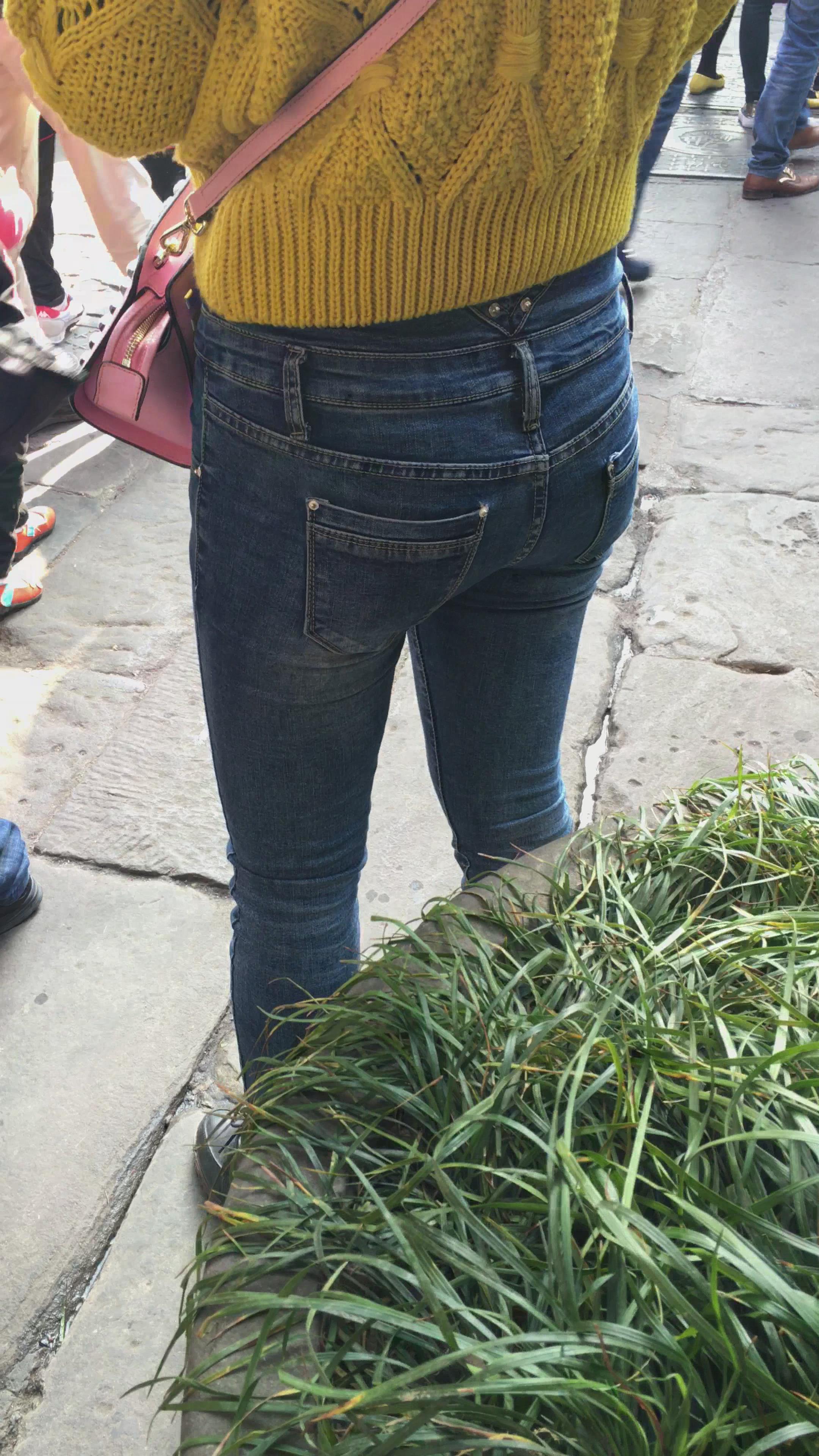黄色毛衣街拍牛仔紧身美眉编号3910