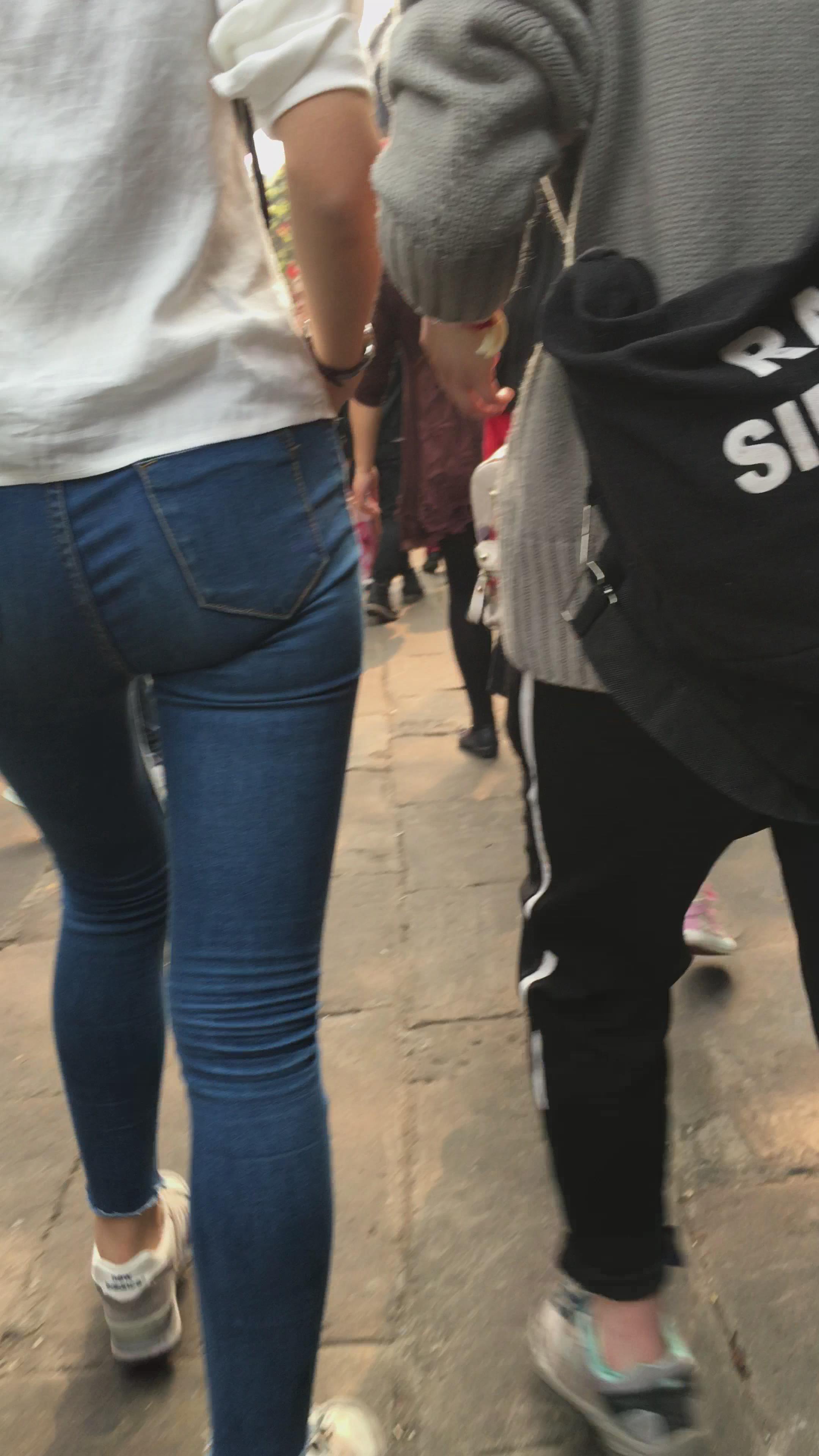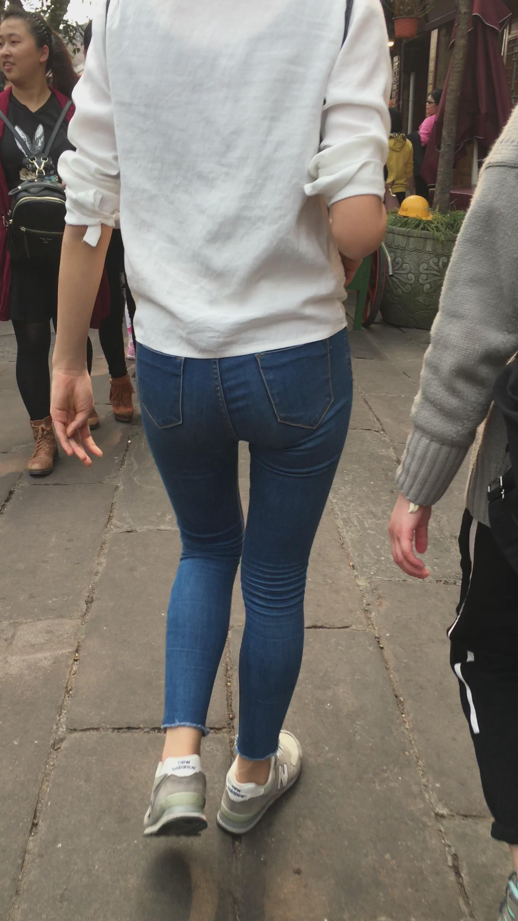 街拍蓝色紧牛美眉编号3911