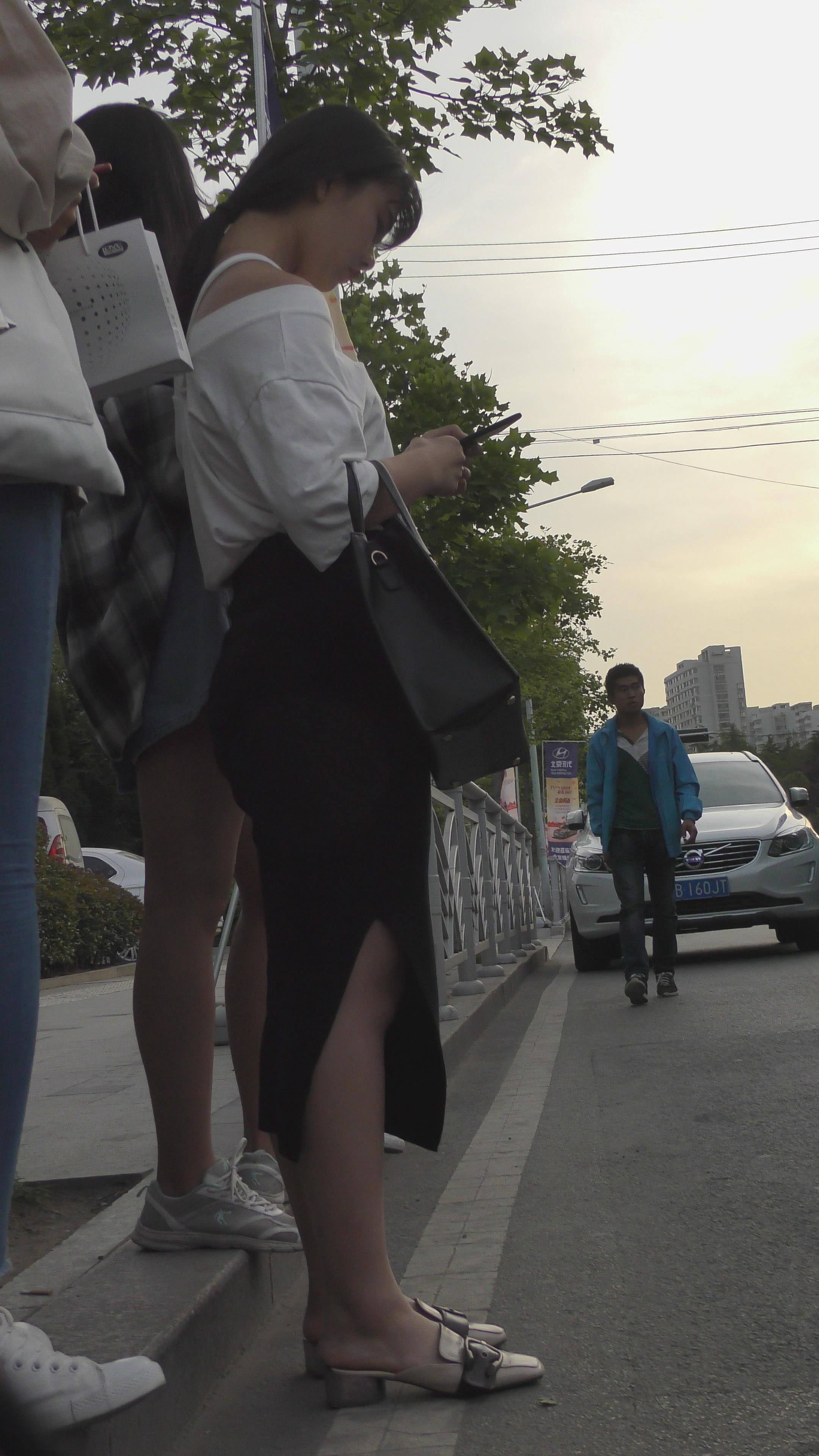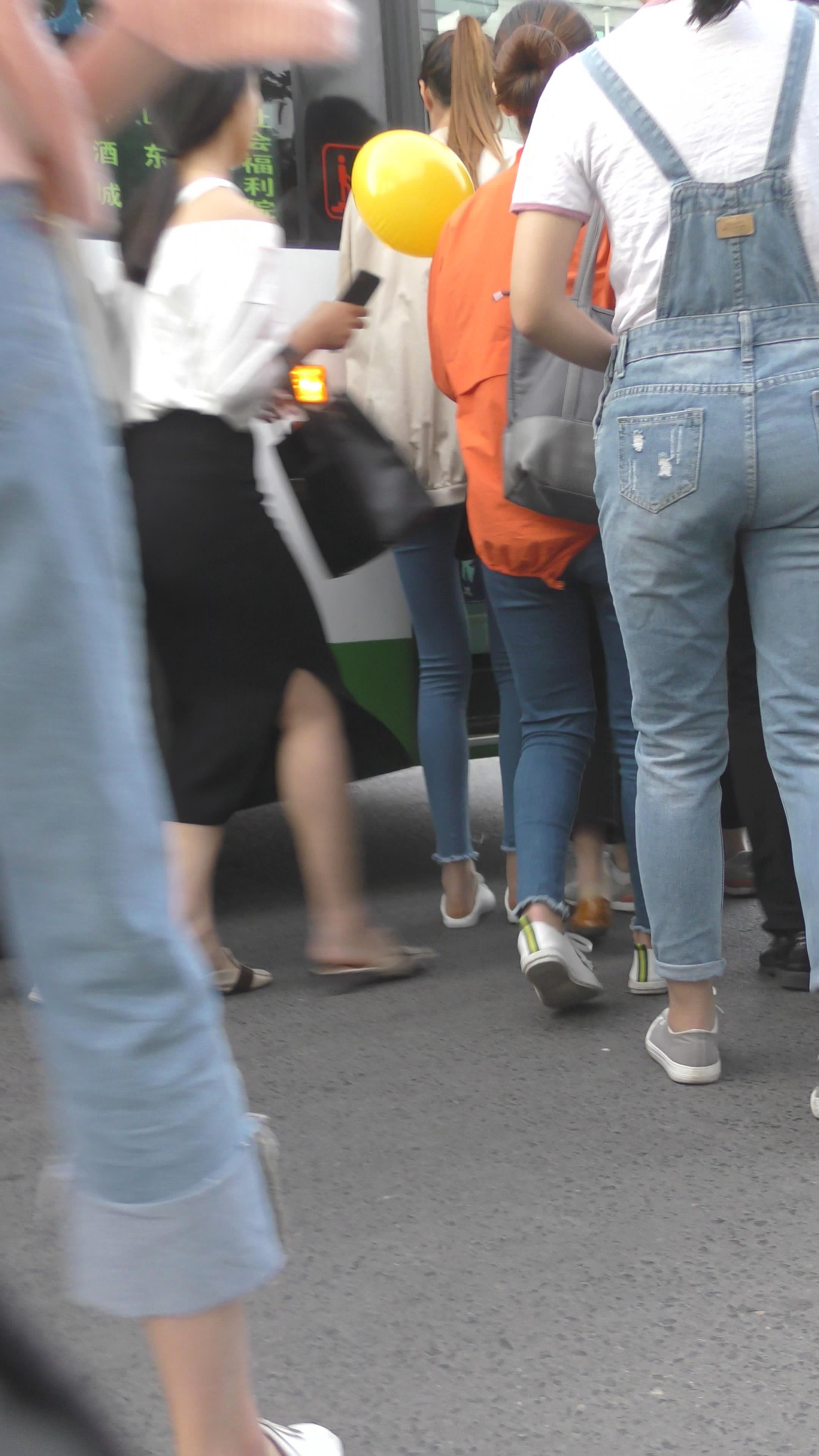 4K 等车的紧身蓝色牛仔裤妹纸编号3922