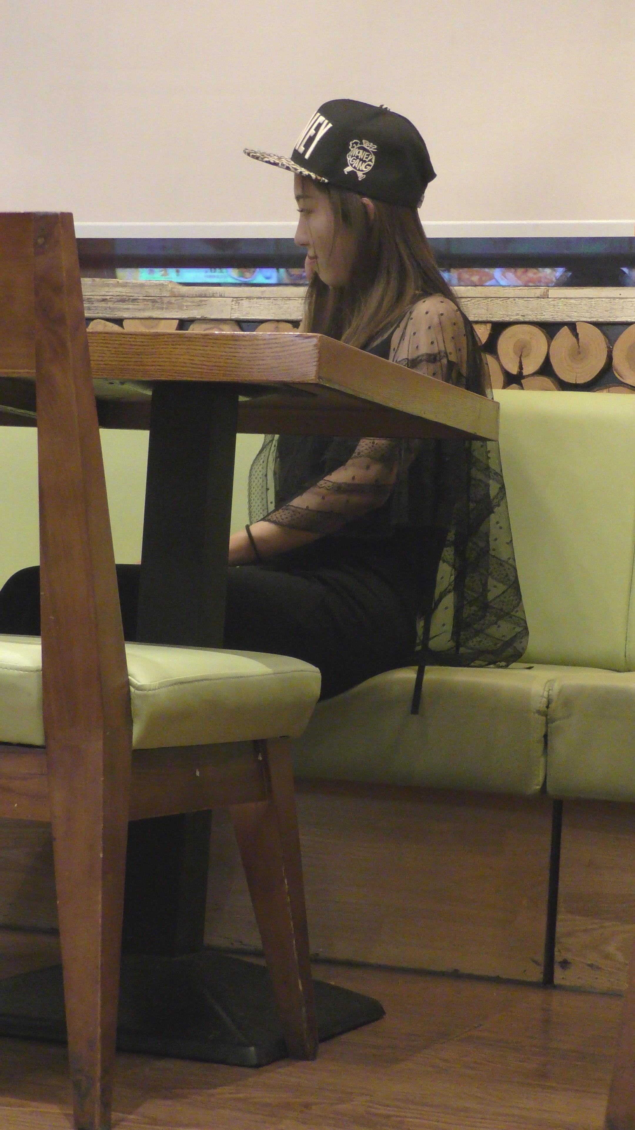 餐厅吃饭的鸭舌帽妹纸编号3926