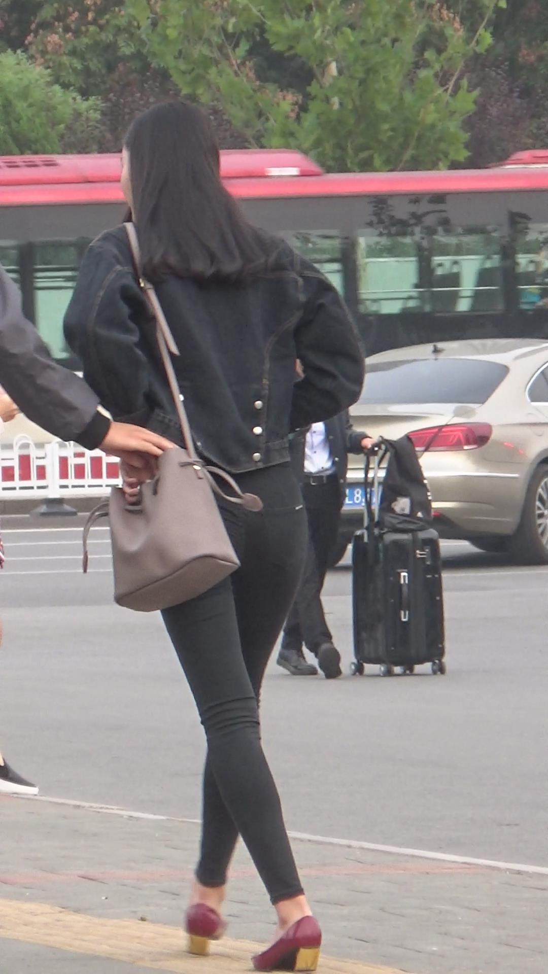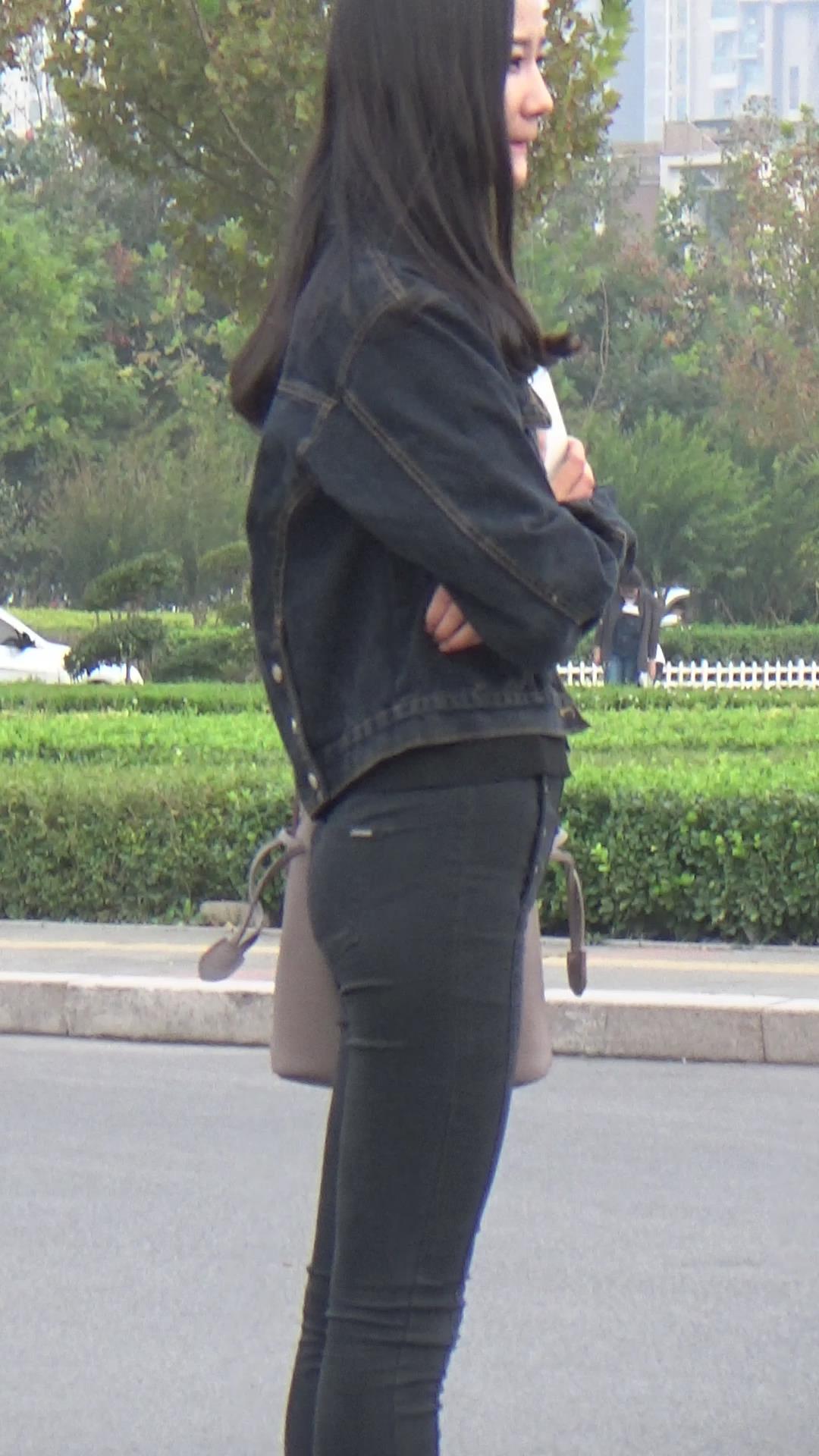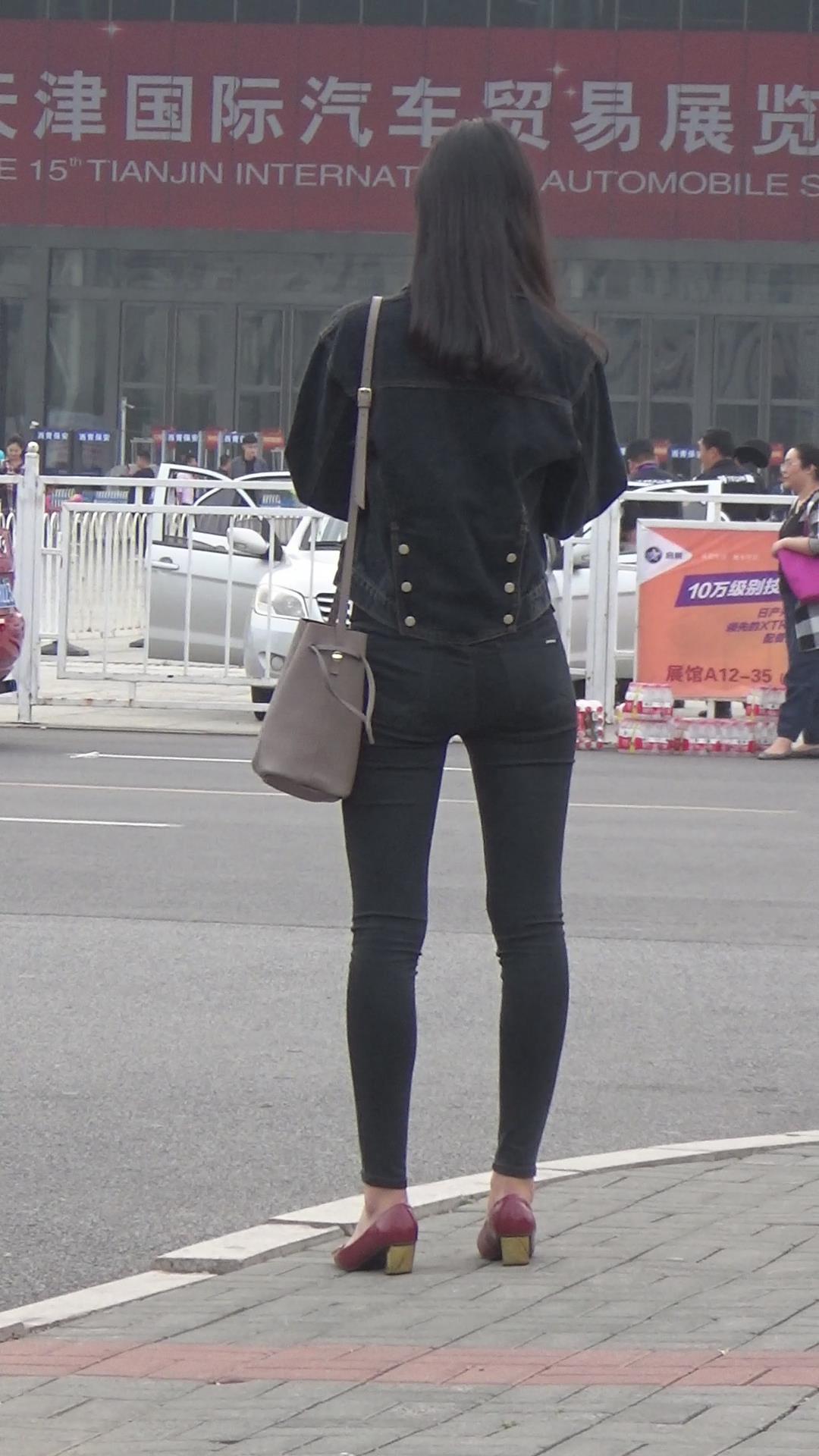 街拍苗条身材黑色紧身裤小姐姐编号3931