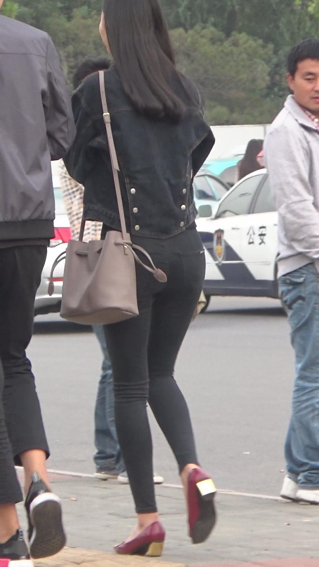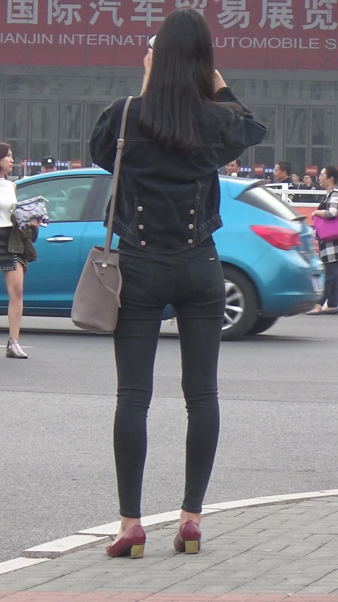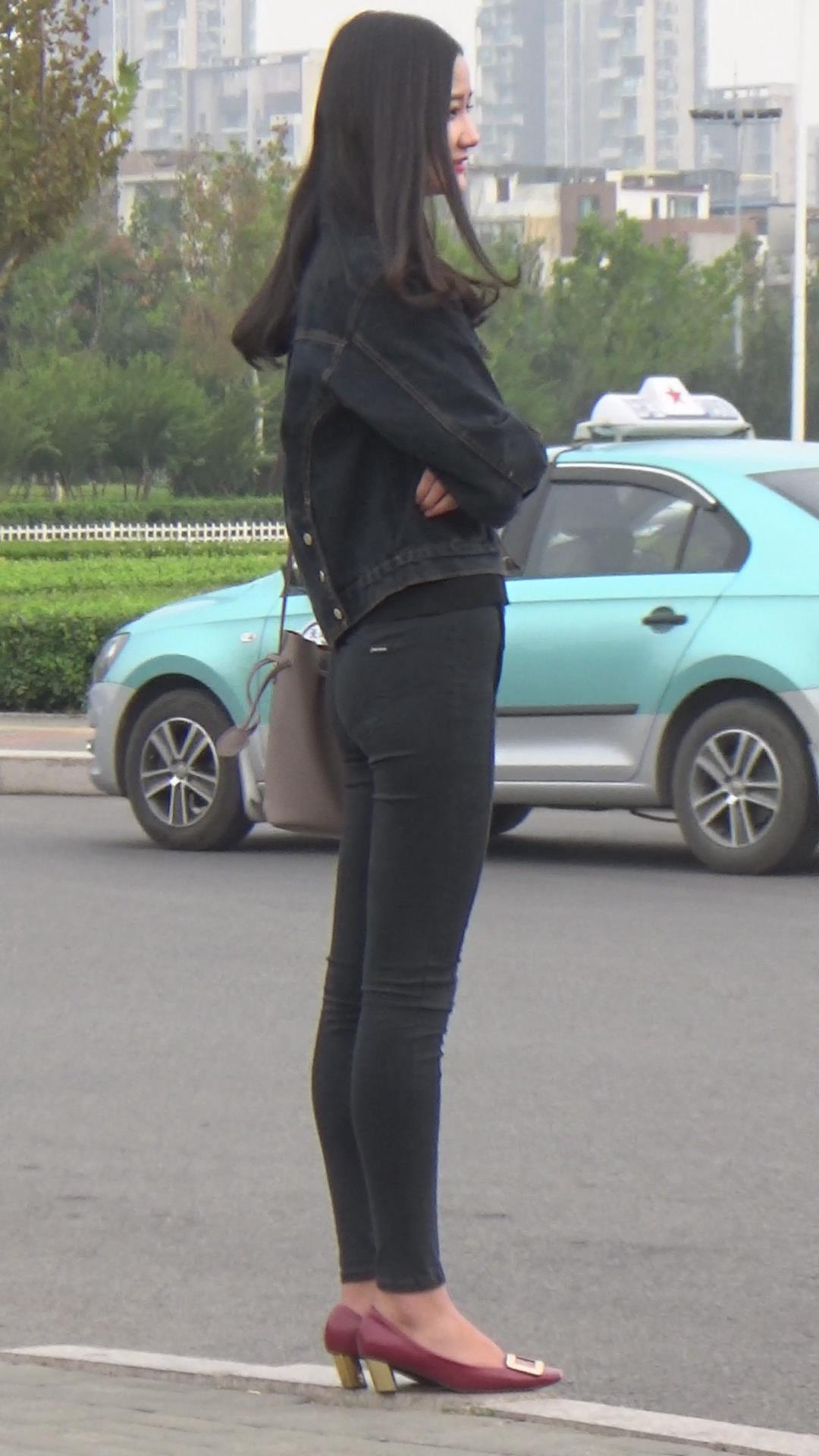 街拍苗条身材黑色紧身裤小姐姐编号3931