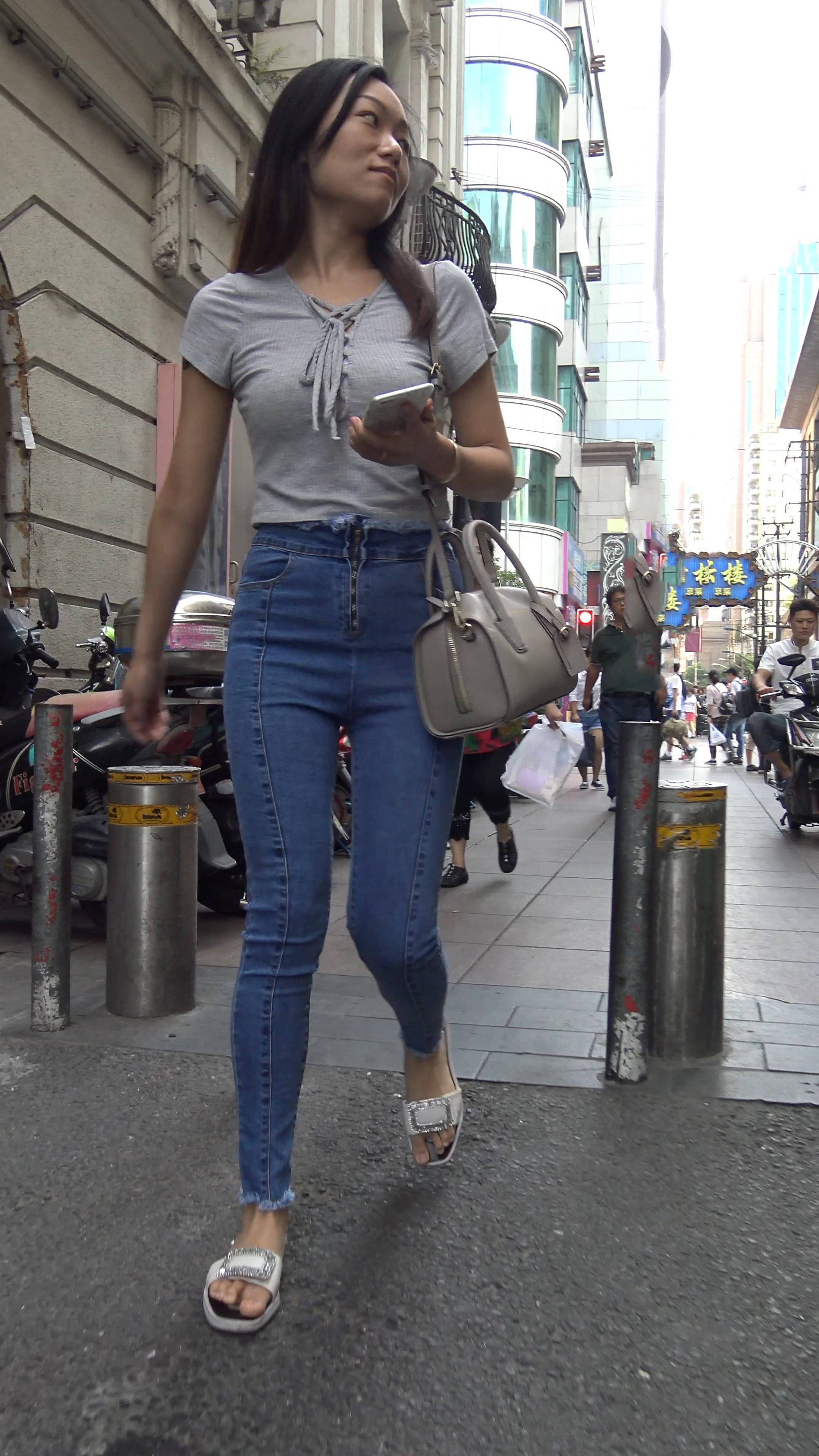 4k-街拍紧身蓝色牛仔裤丰满美女 编号7943