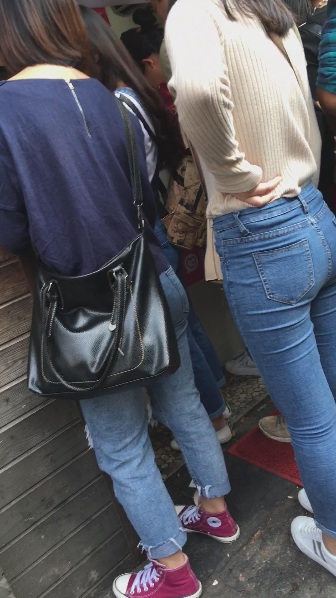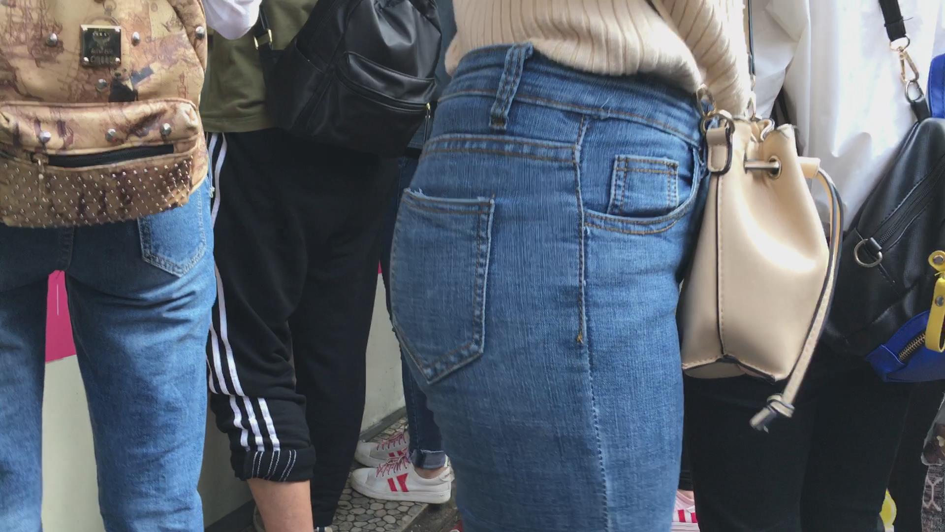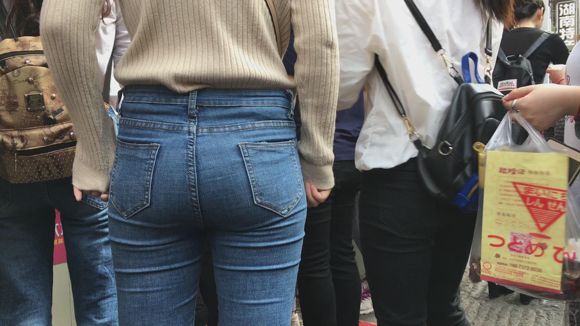 街拍超级丰满的肉臀蓝色紧身牛仔裤美眉 编号6077