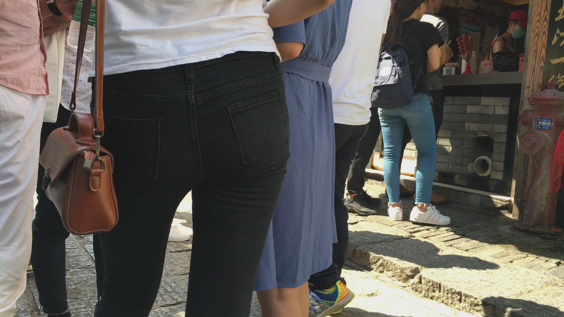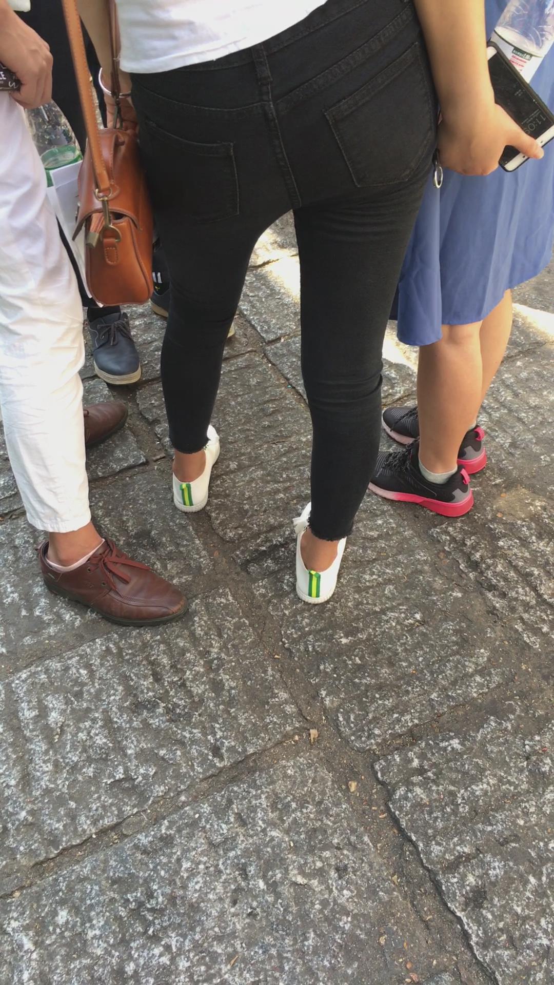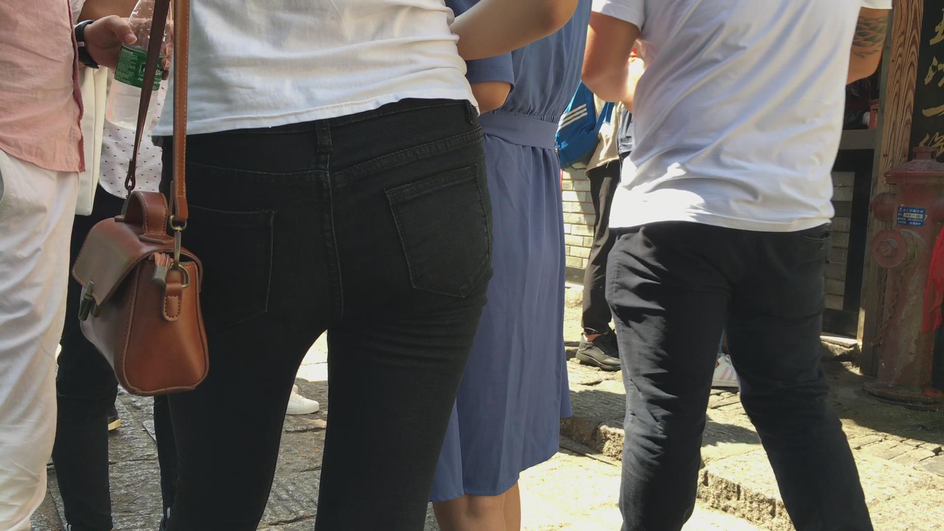 黑色紧身裤苹果臀美眉 编号6080